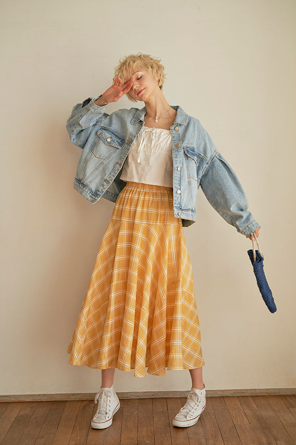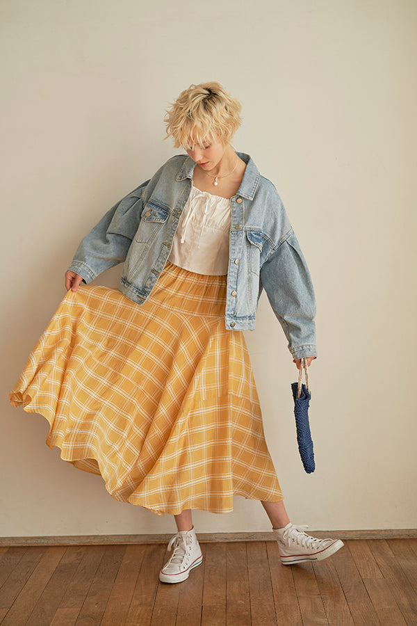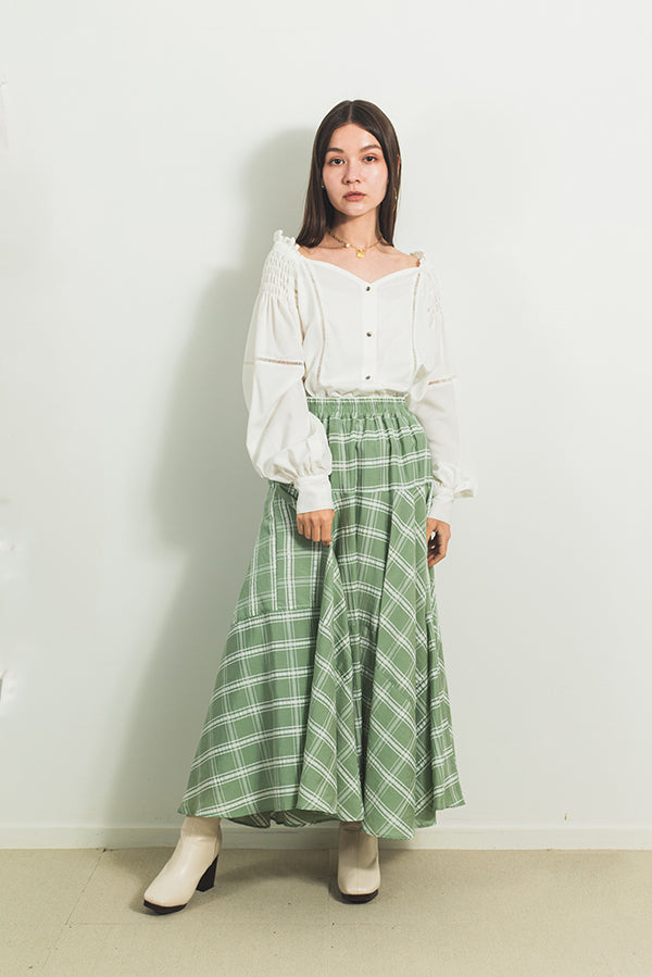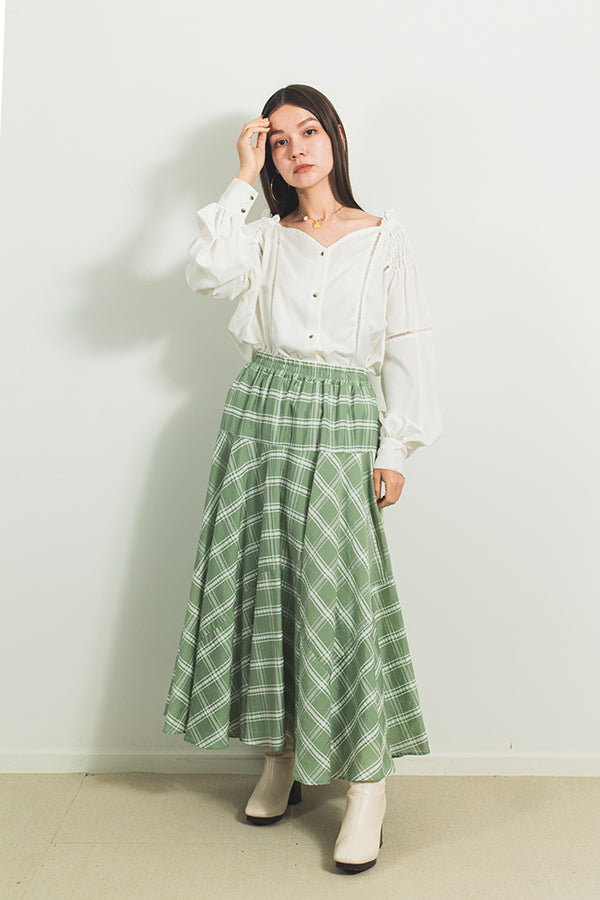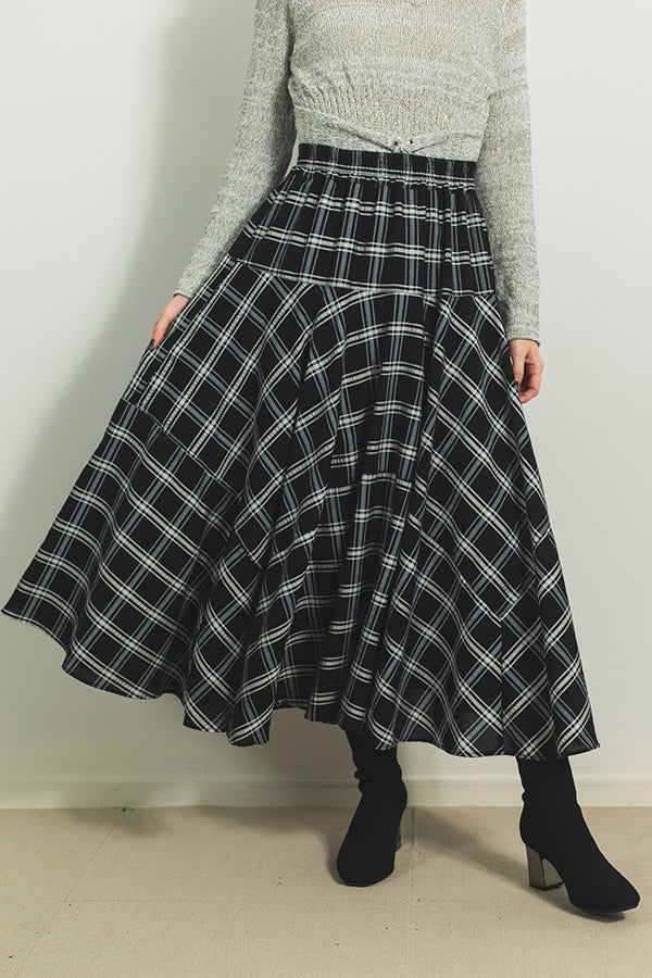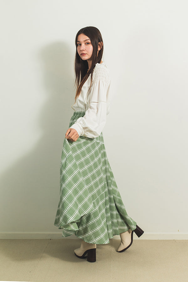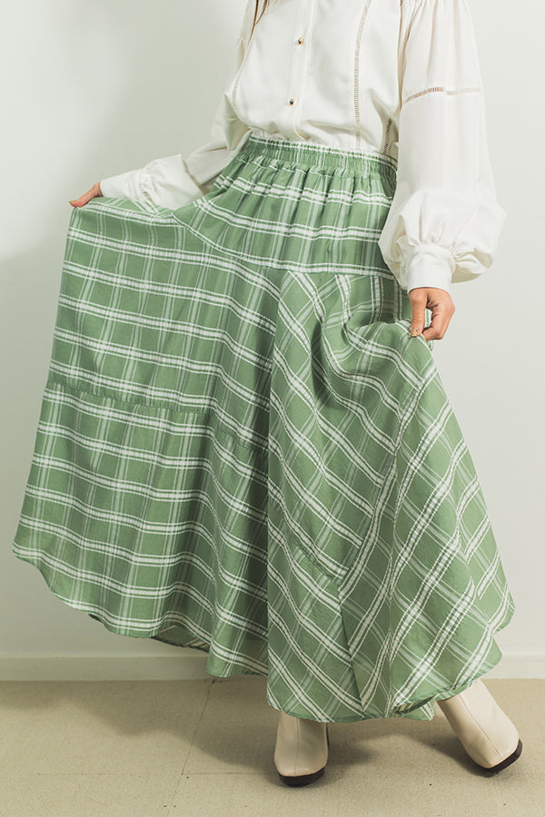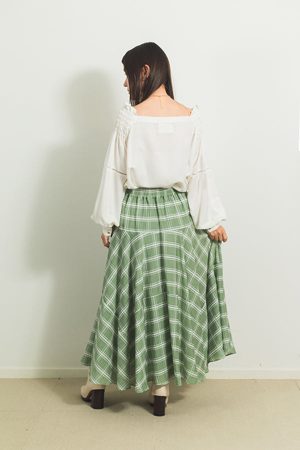 一見合わせるの難しそうに見えて意外と何でも会うミントグリーン、定番のブラックの分量たっぷりのフレアで重くならない☺