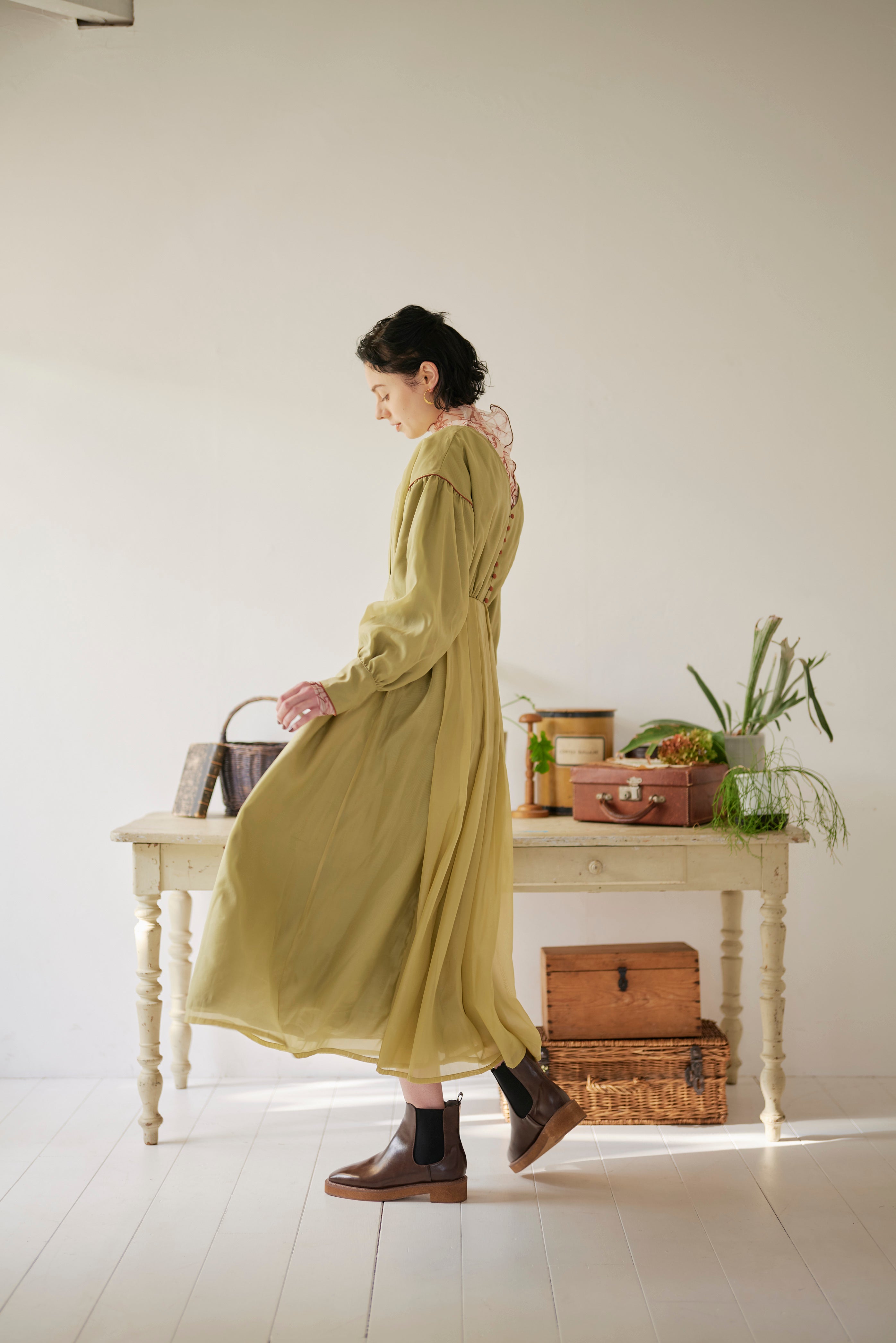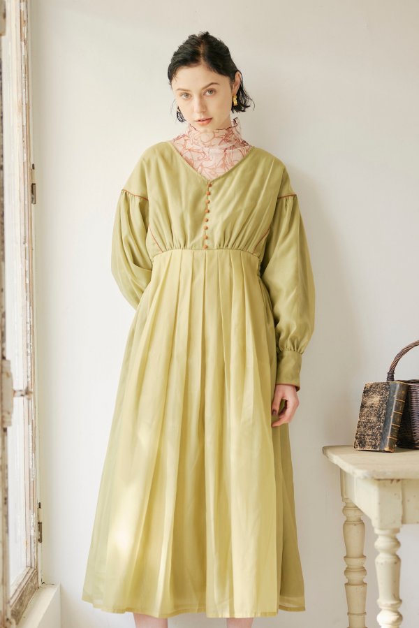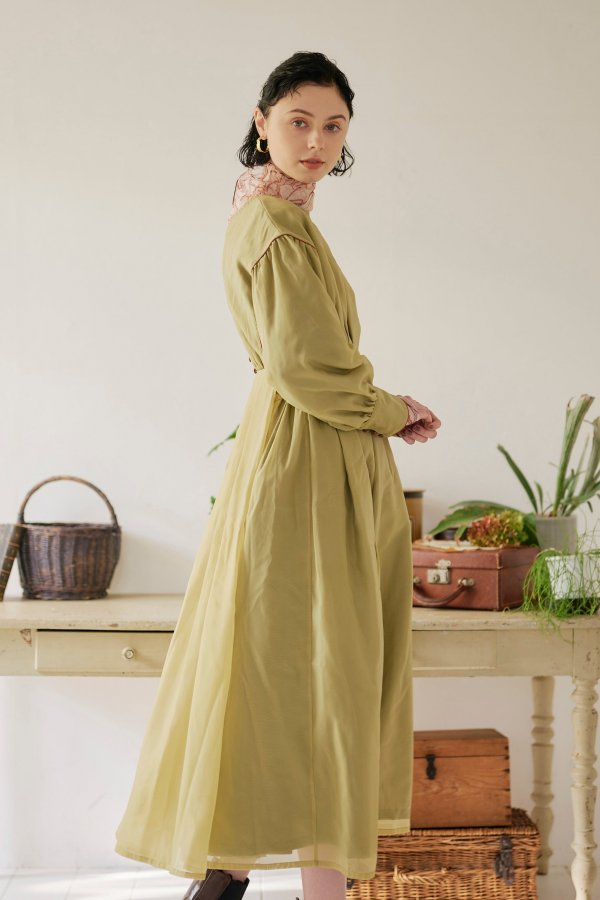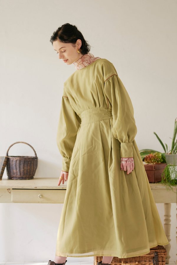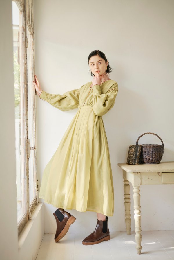 異素材を重ねて仕立てたこだわりのワンピースは、