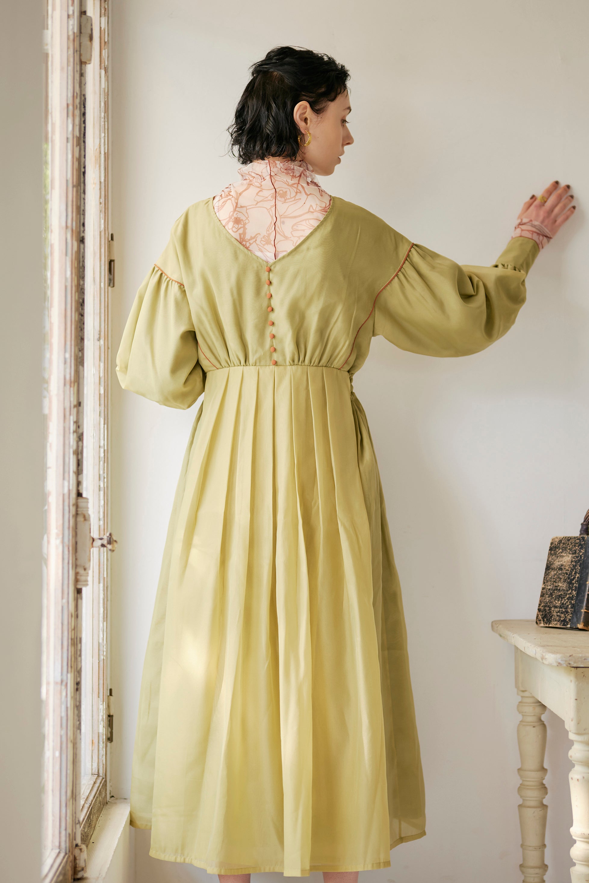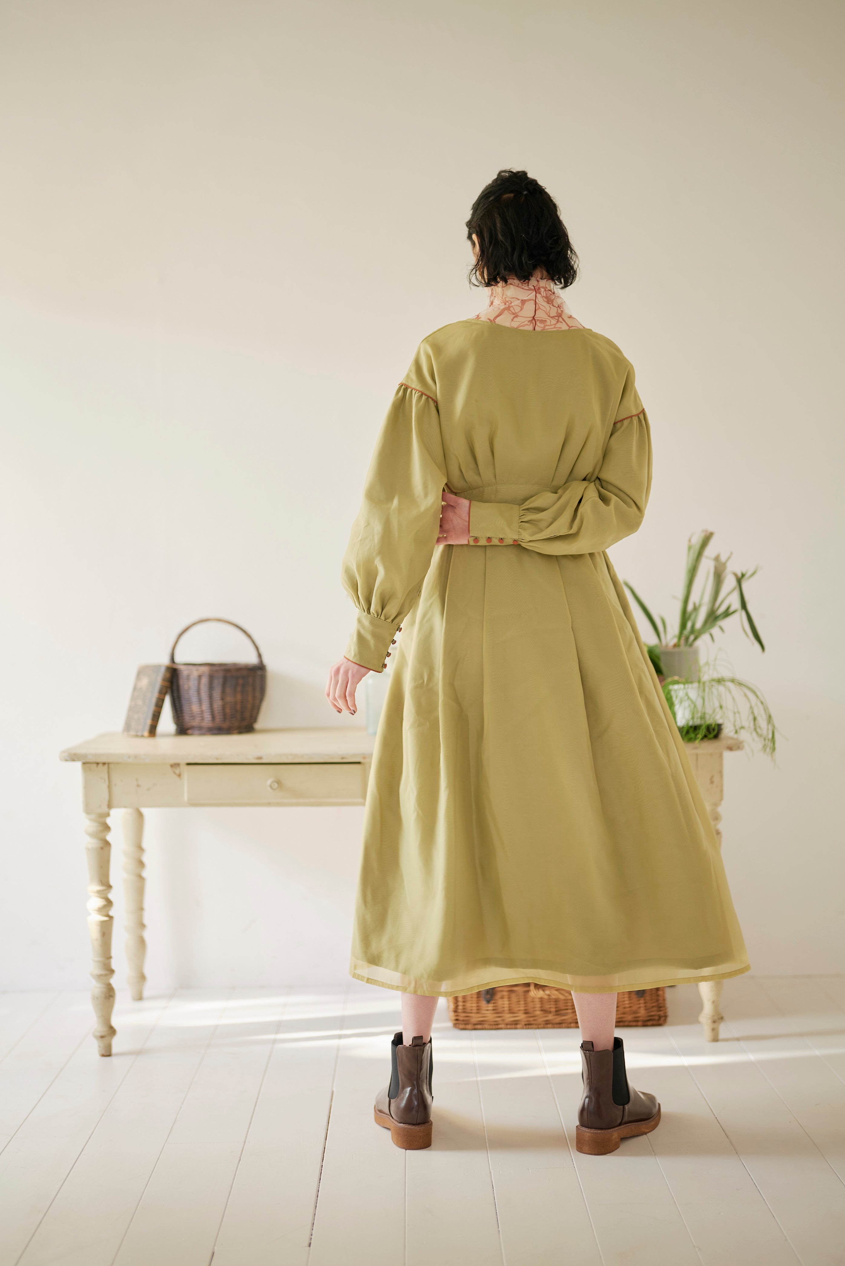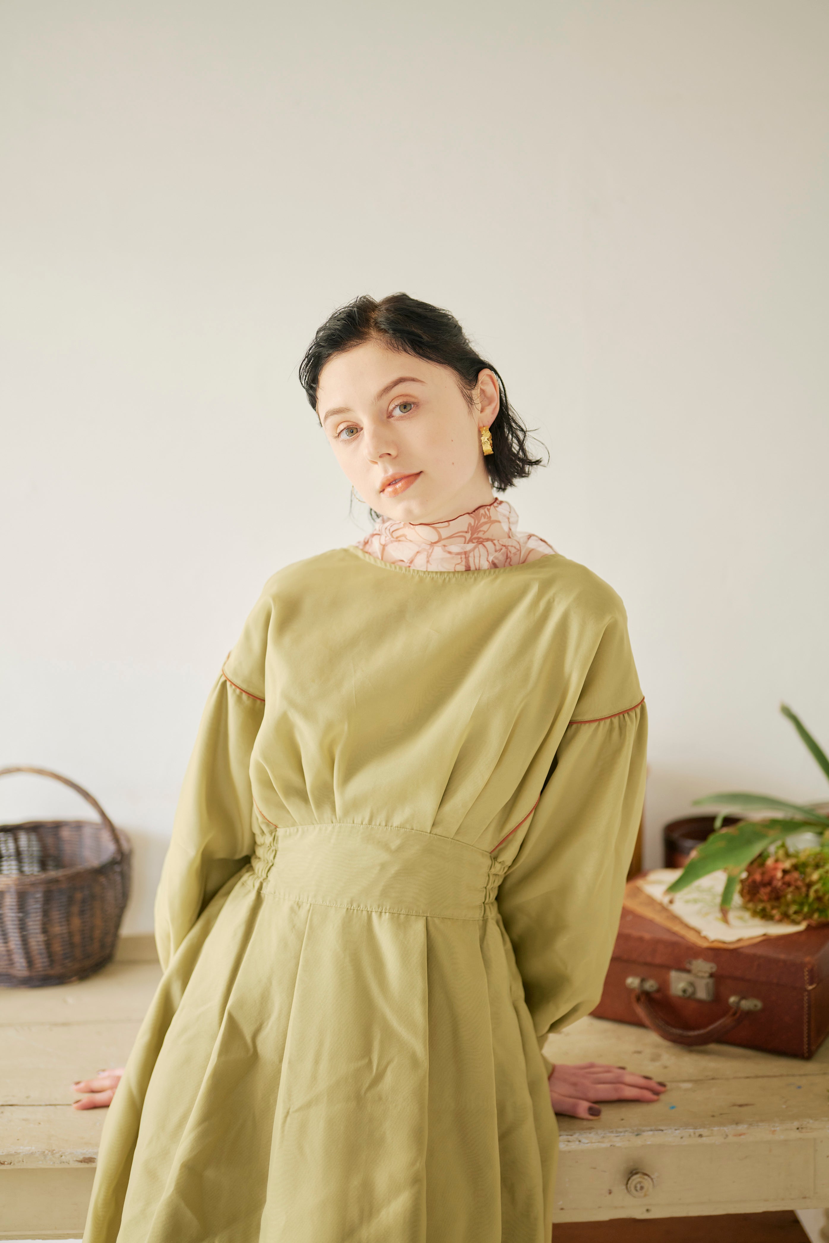 異素材を重ねて仕立てたこだわりのワンピースは、