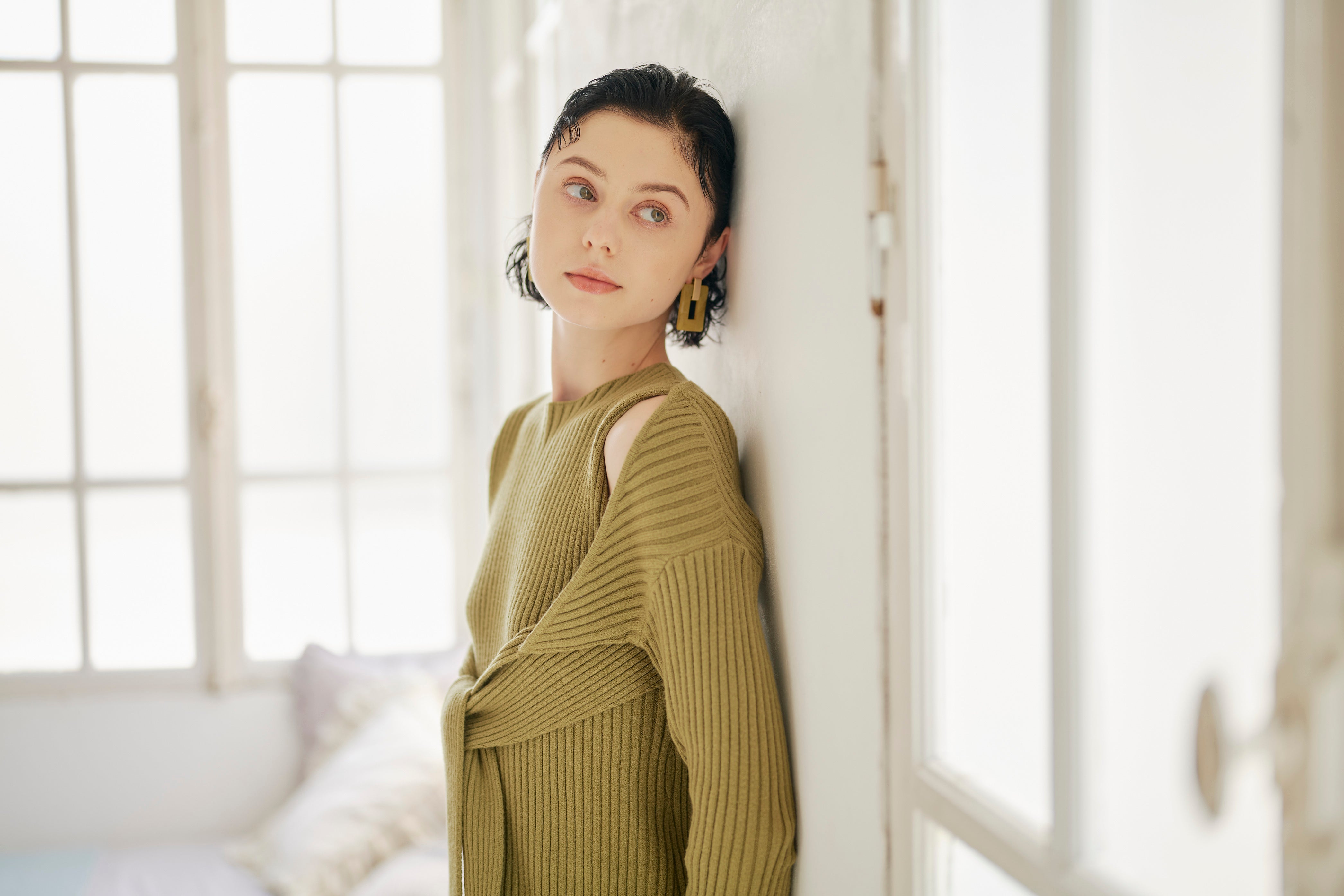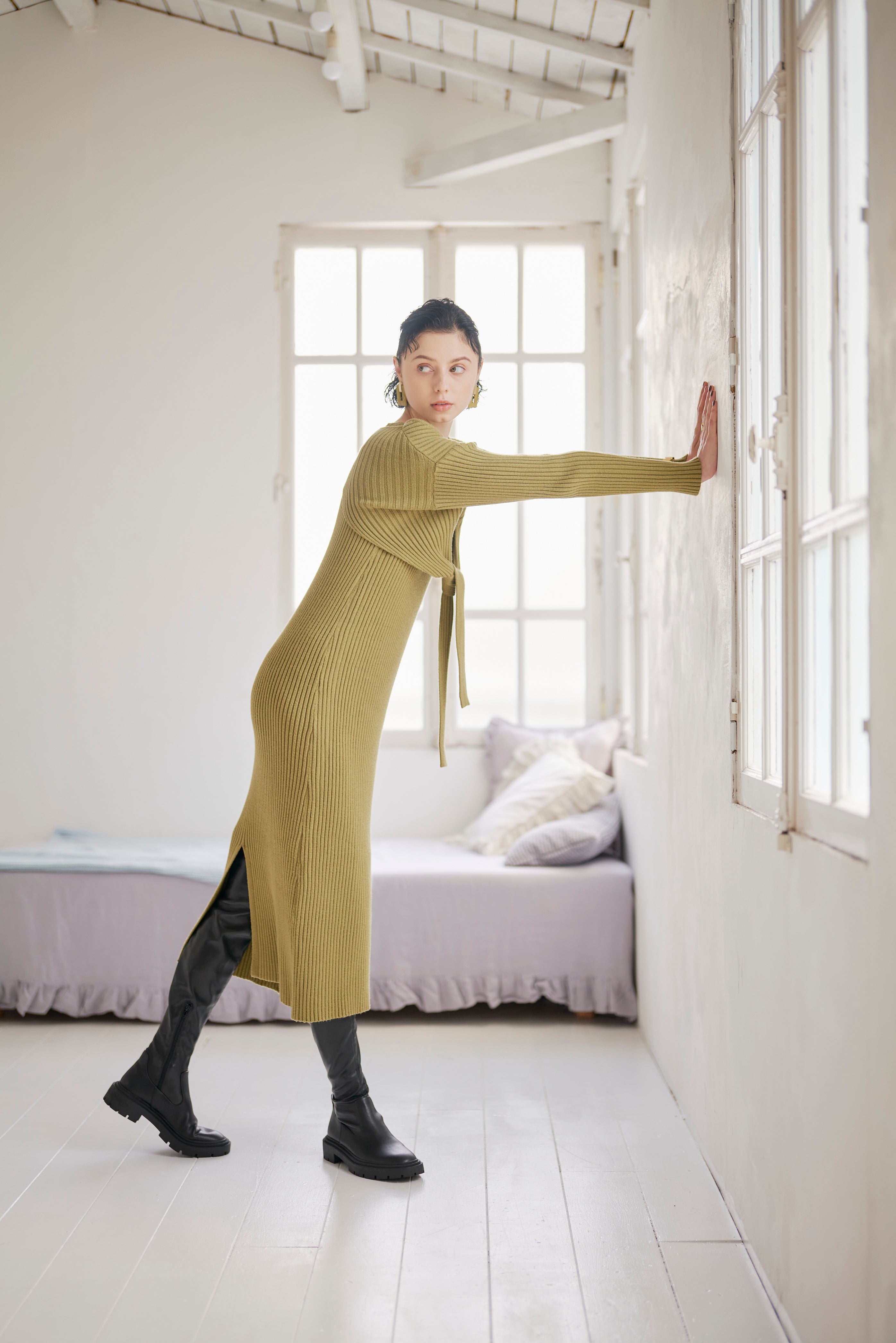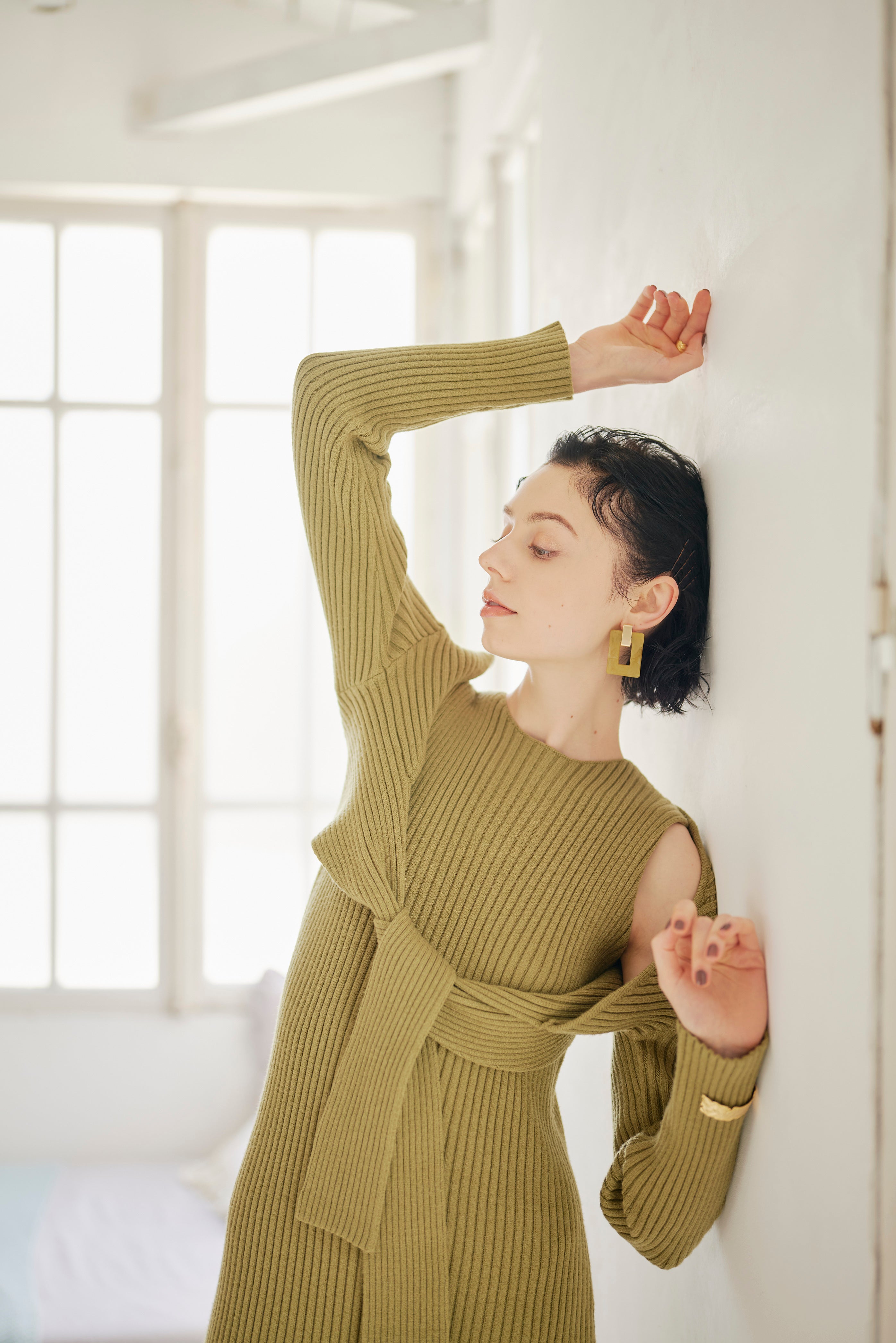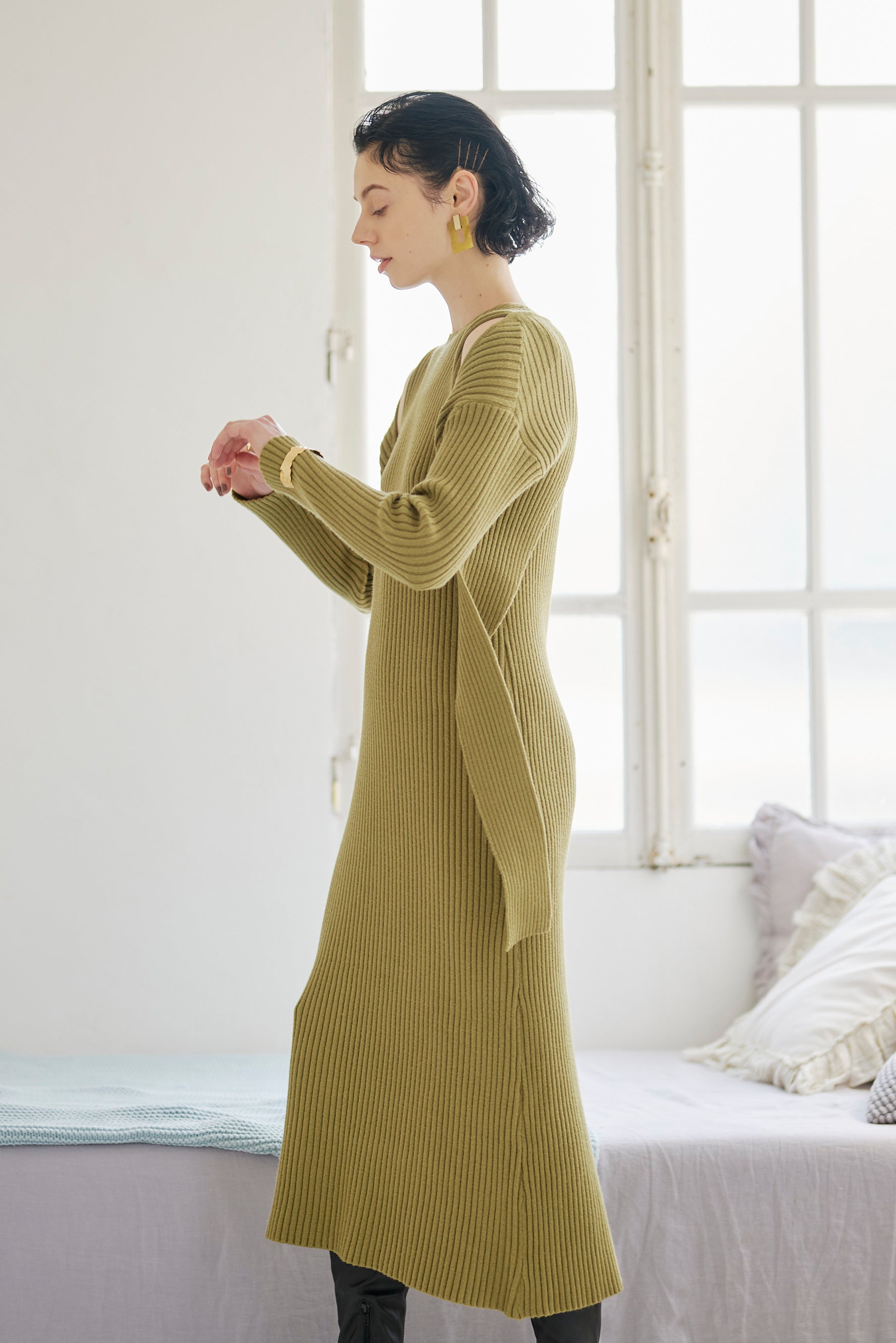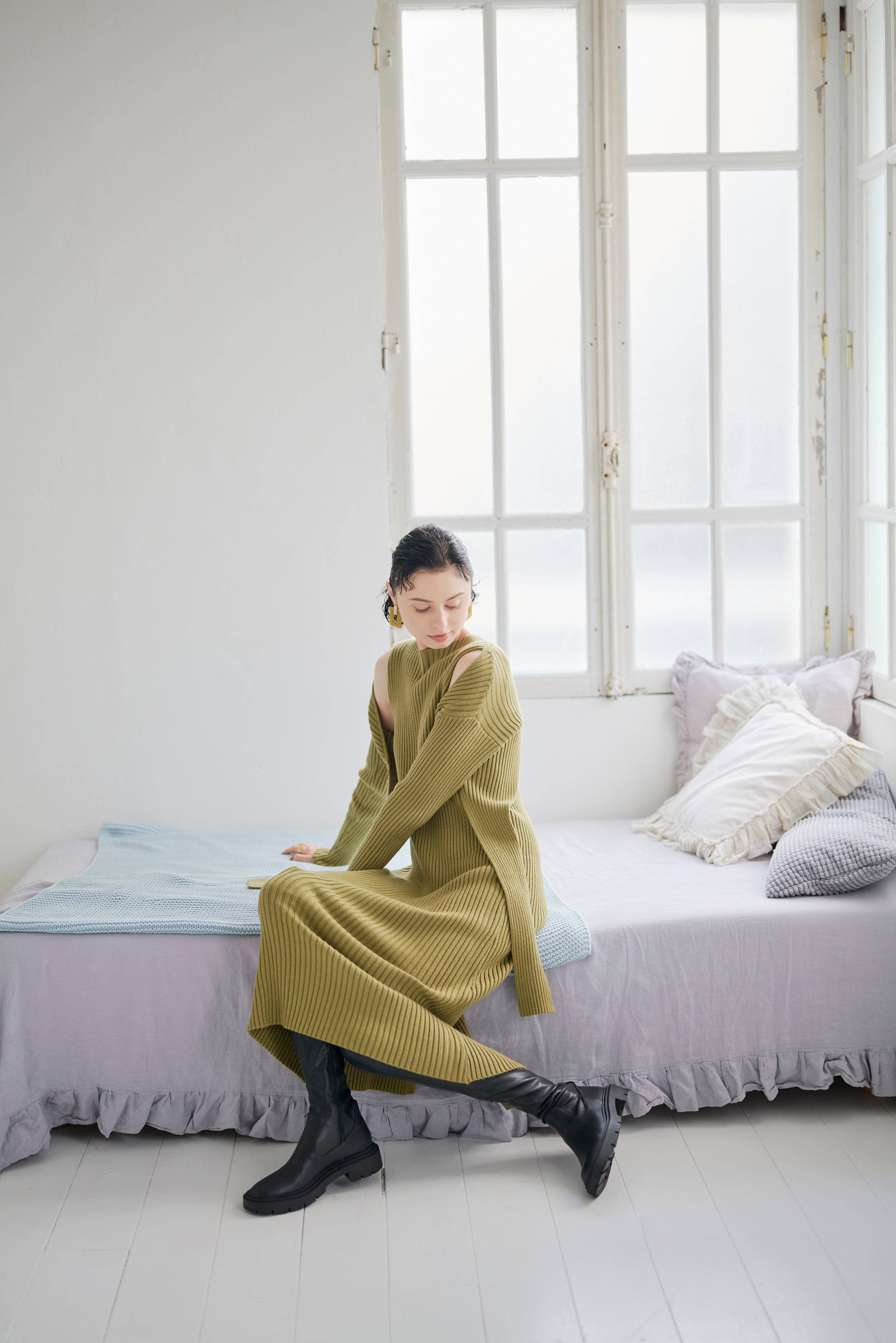 ノーブルな印象のプレーンニットワンピと