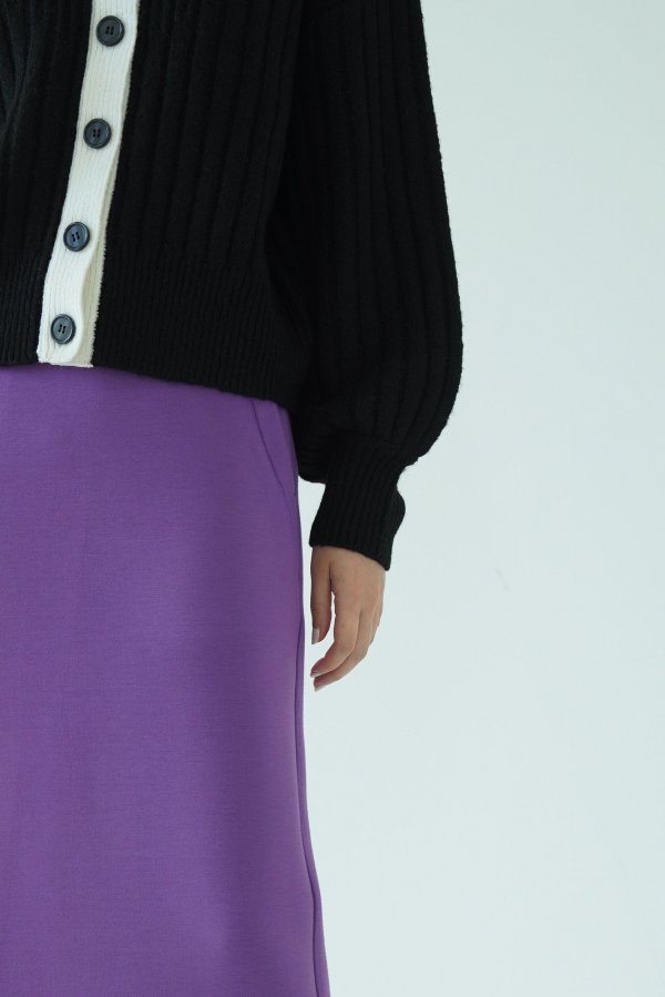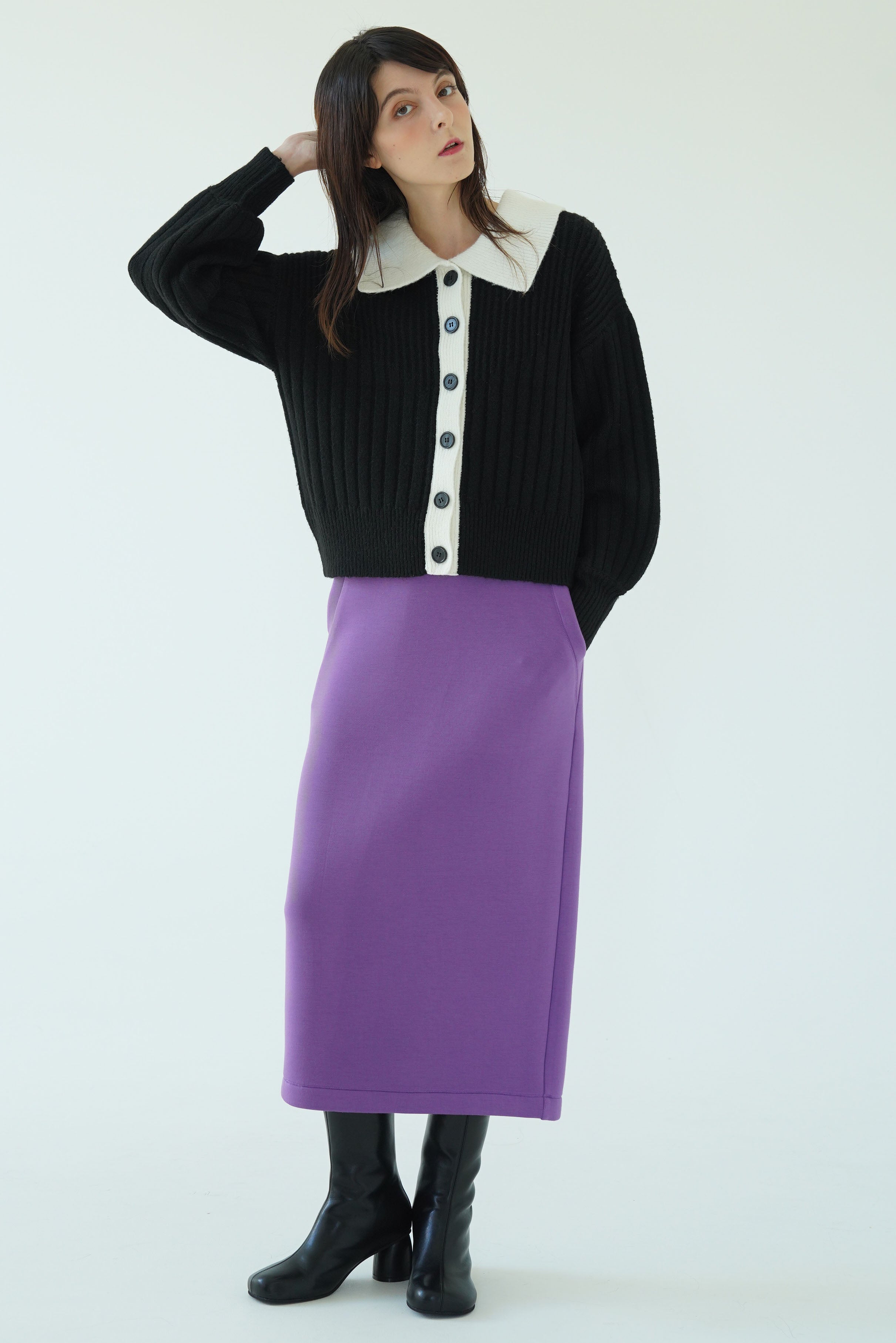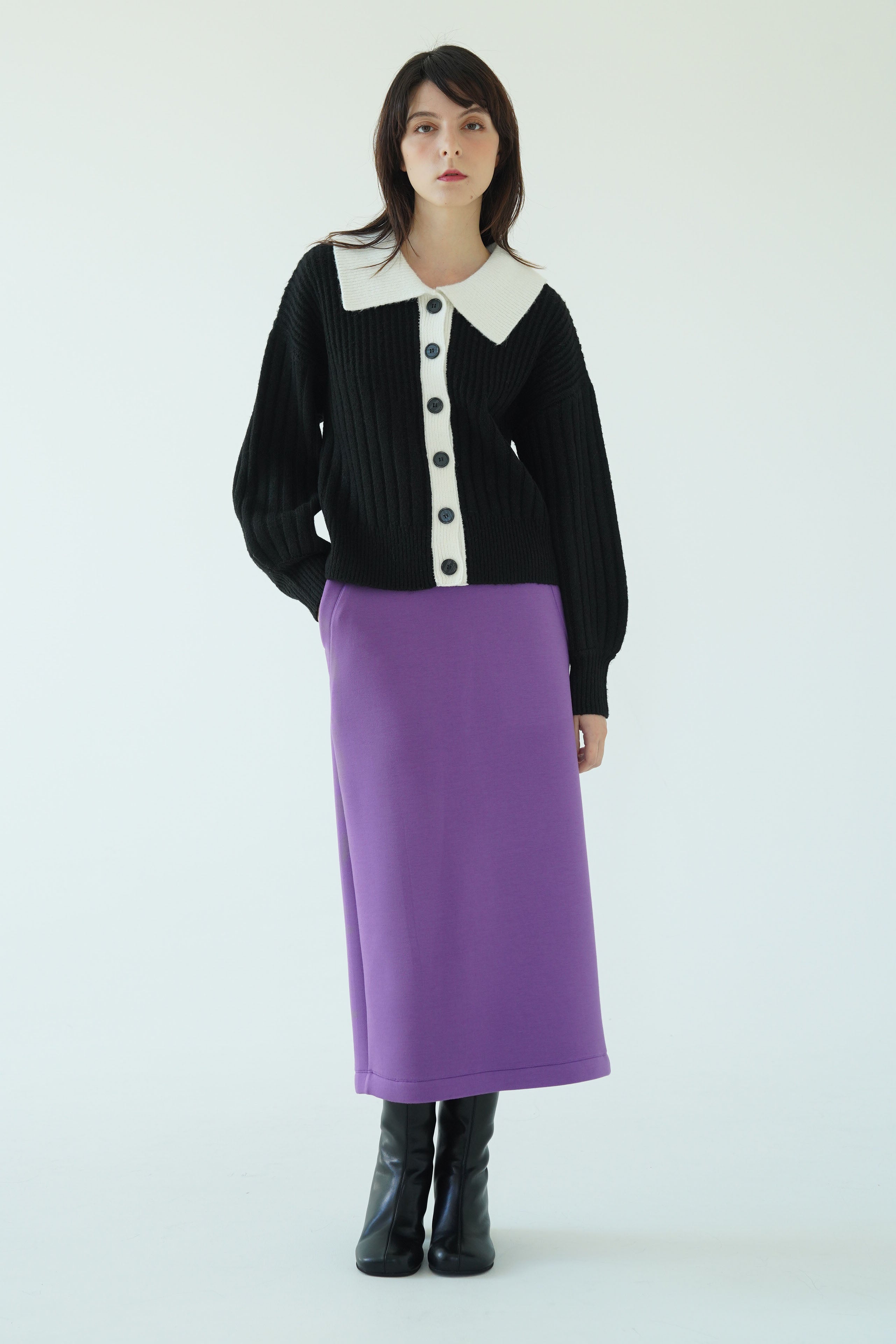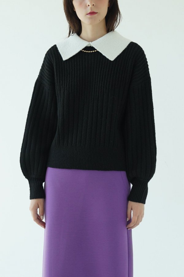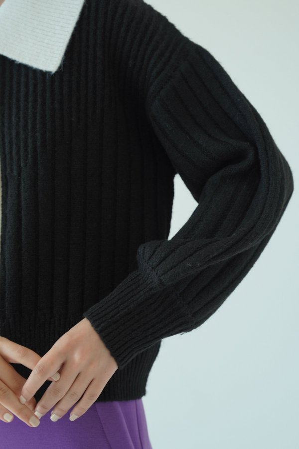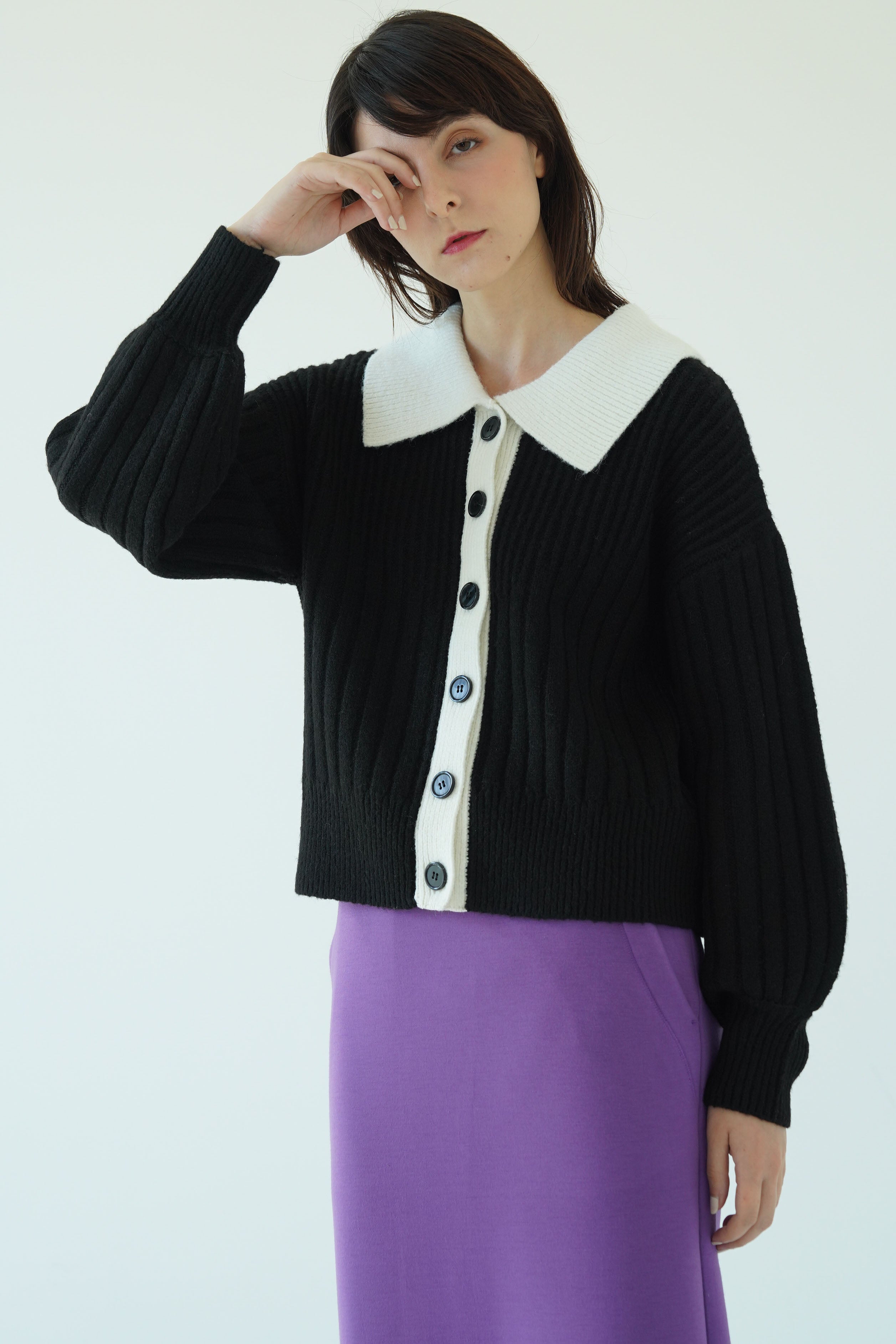 配色になった襟がレイヤード感のあるニットトップスとしても使える2WAYカーディガン。