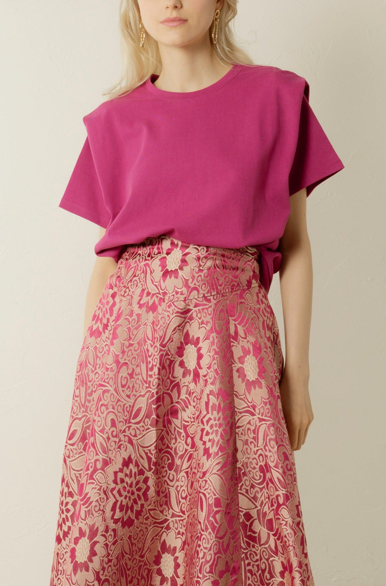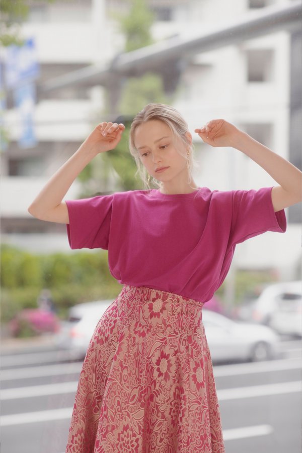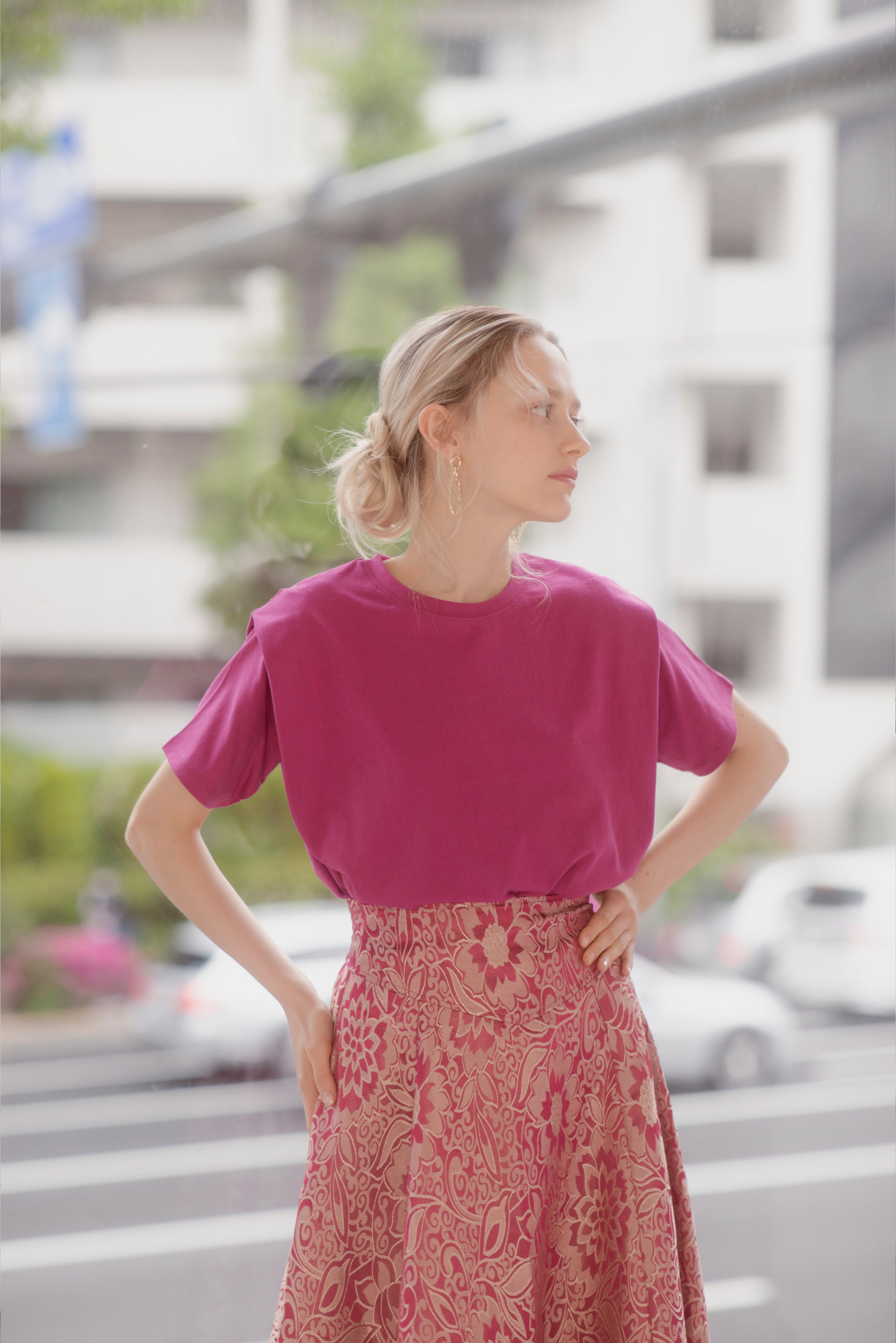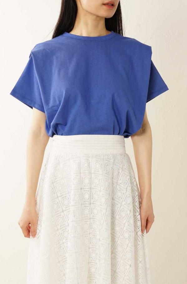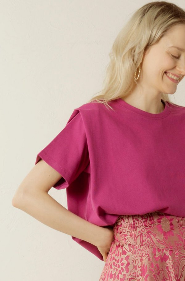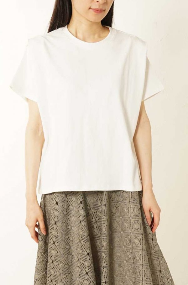 定番アイテムのTシャツはショルダーを強調するタックデザインを加えて、一味違う万能アイテムに。ボトムスを選ばず普段のコーデを格上げしてくれます。着回しの効くとっておきの1着はカラーで遊ぶのもおすすめです。