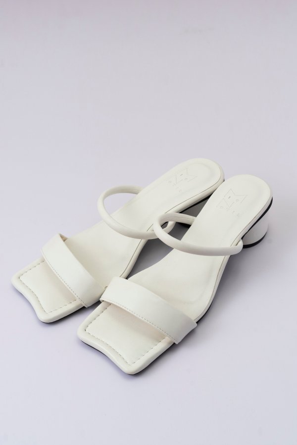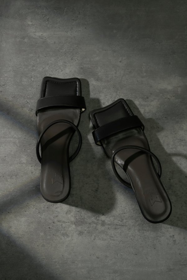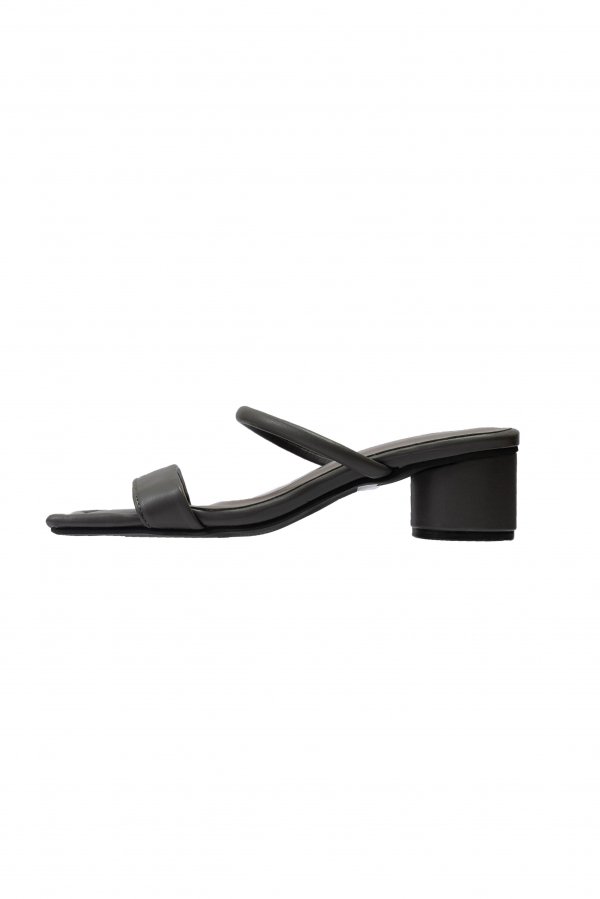 中底のつま先がウエーブ型になっており、モード感を漂わせつつもアッパーはシンプルにまとめて足もすっきり甲が見えるデザインです。安定感のある太めのヒールとクッション感がポイントの一足です。