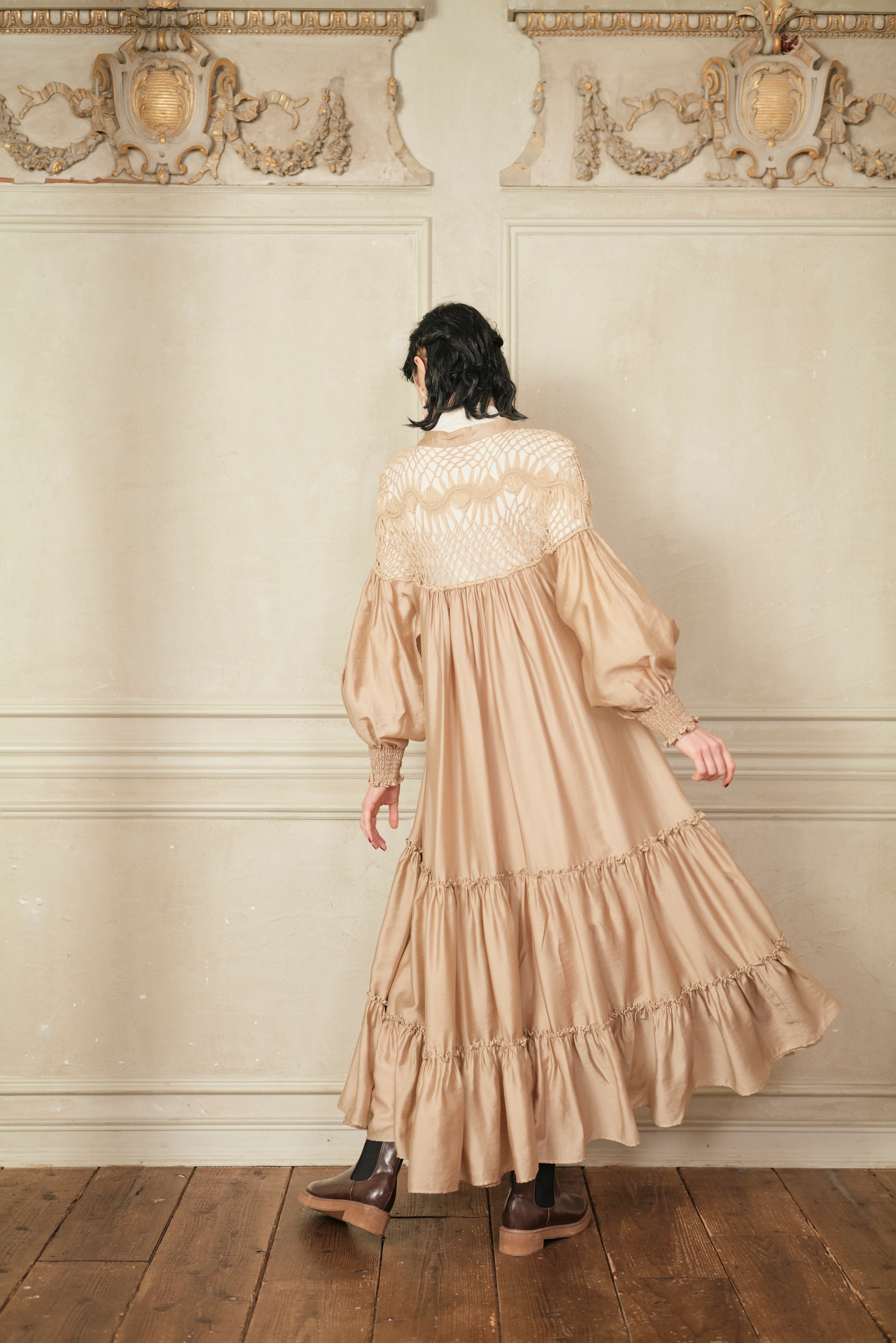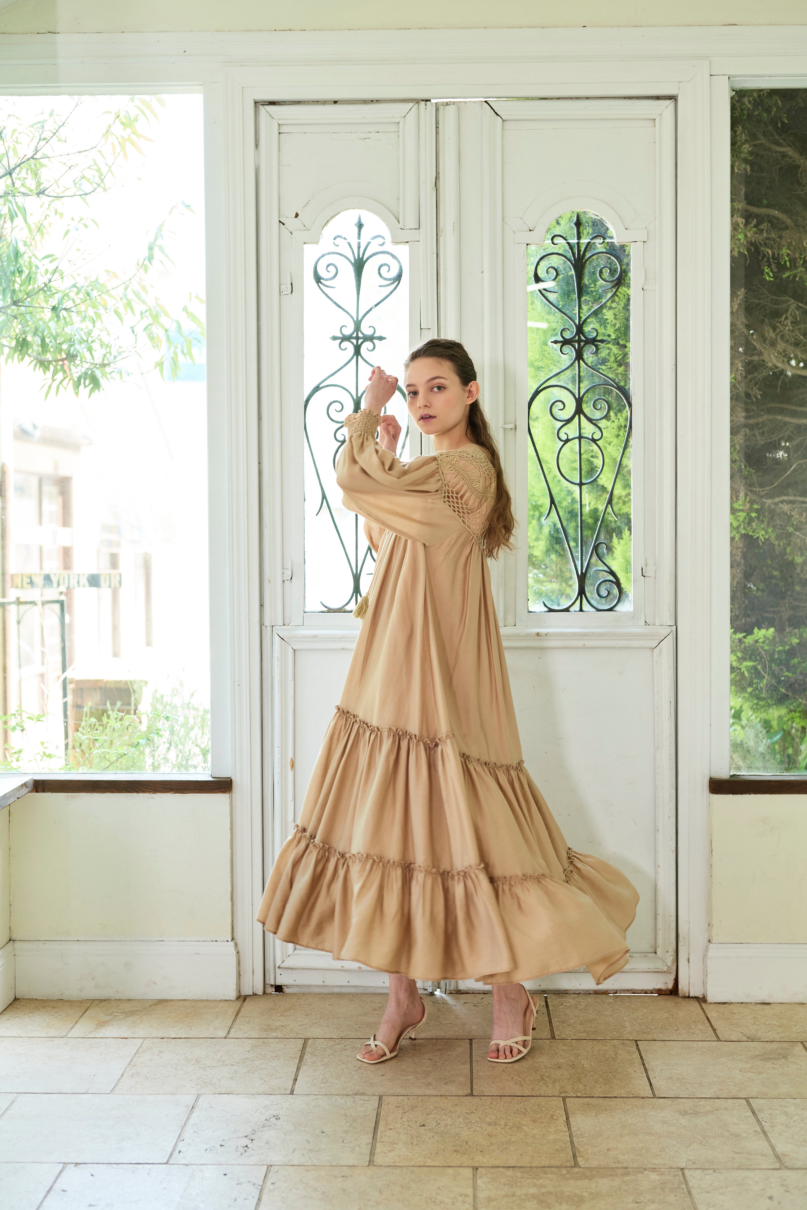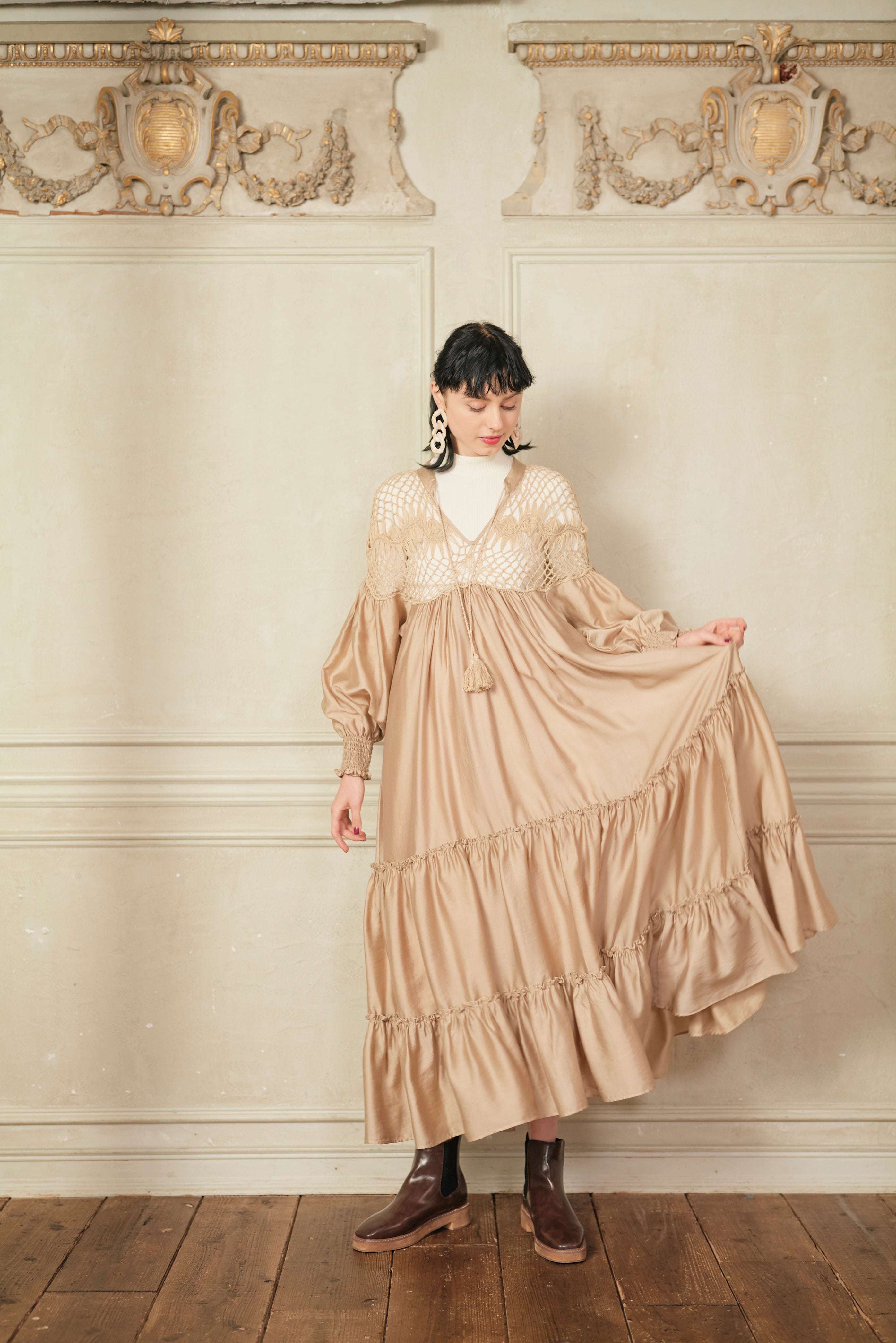 思わず回りたくなるような分量たっぷりのワンピースで、