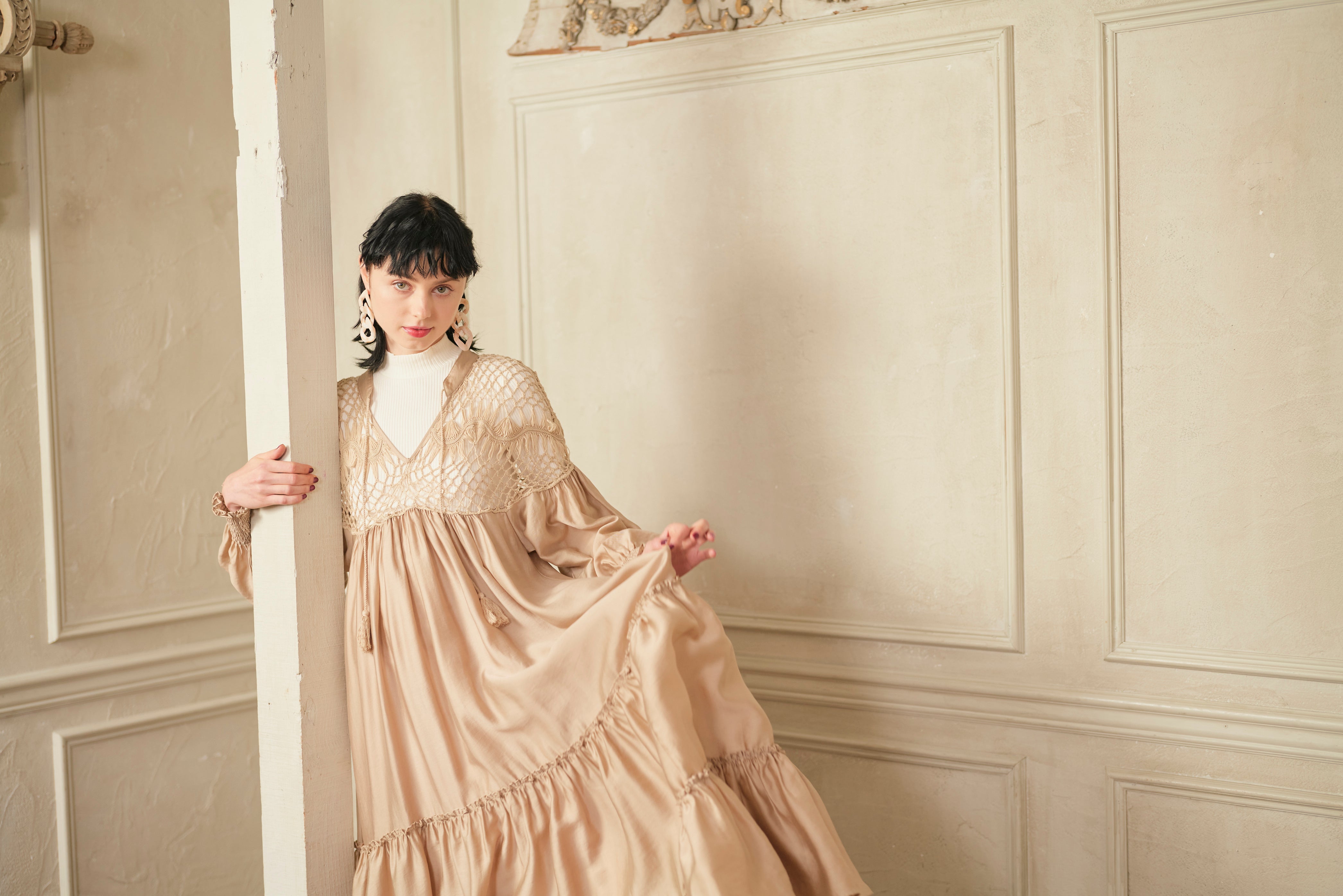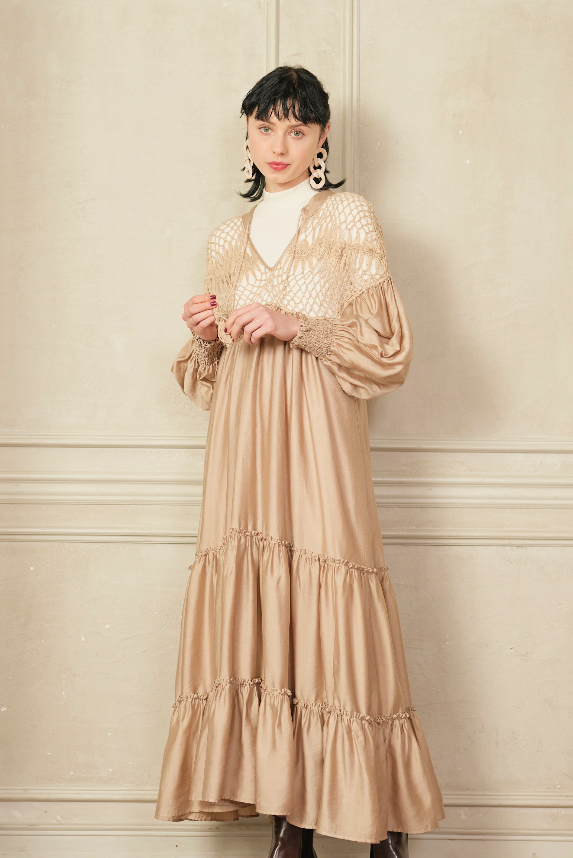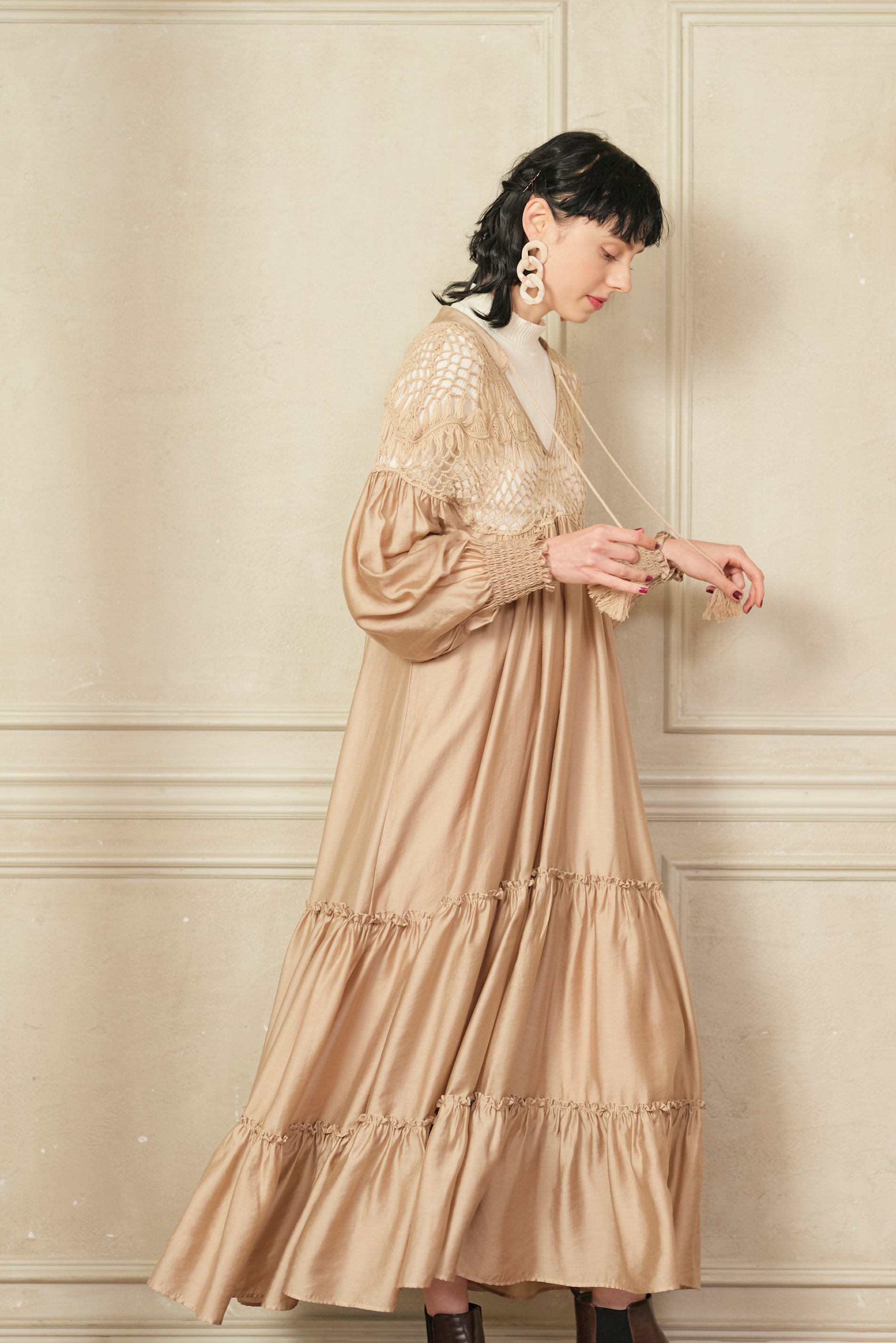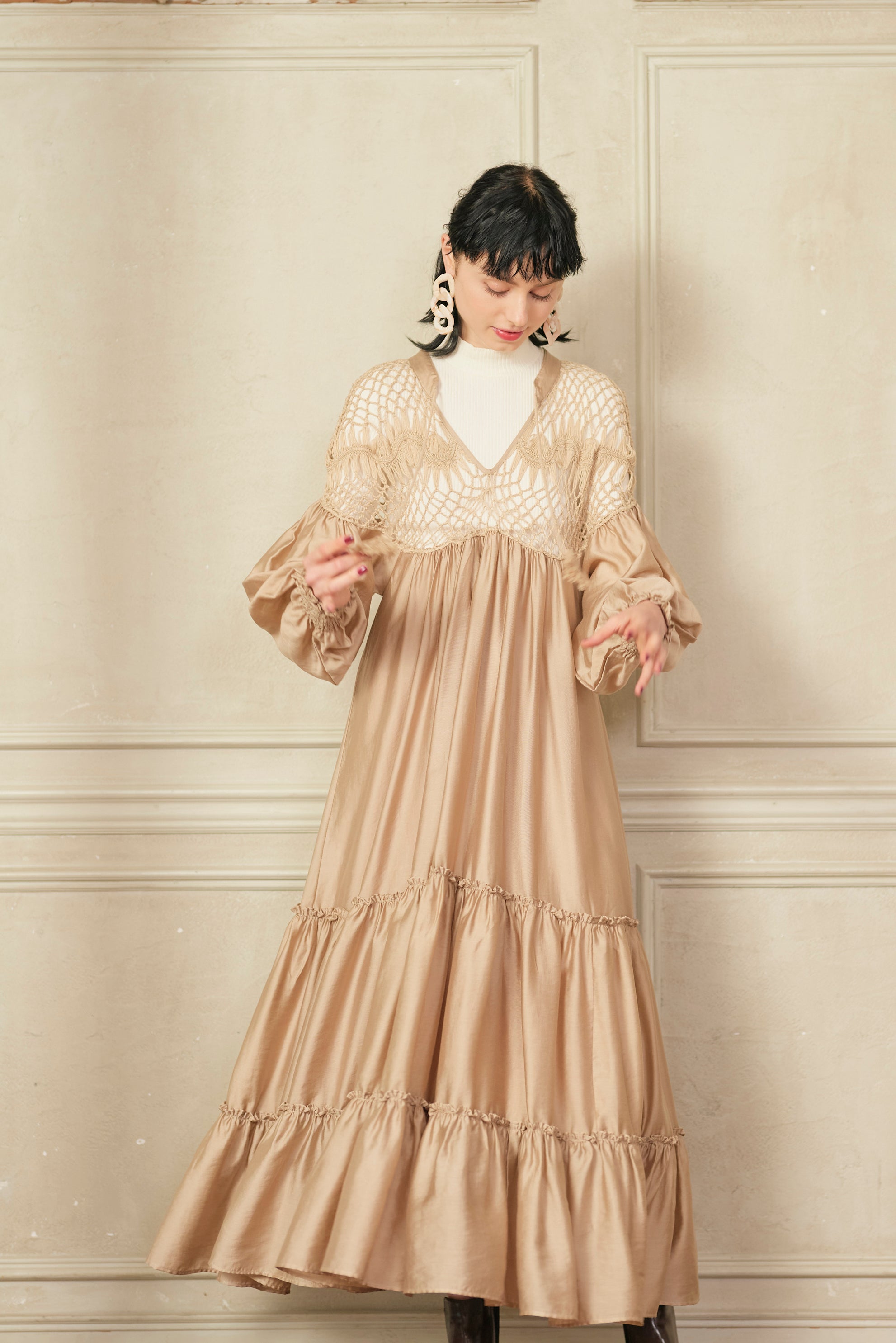 思わず回りたくなるような分量たっぷりのワンピースで、