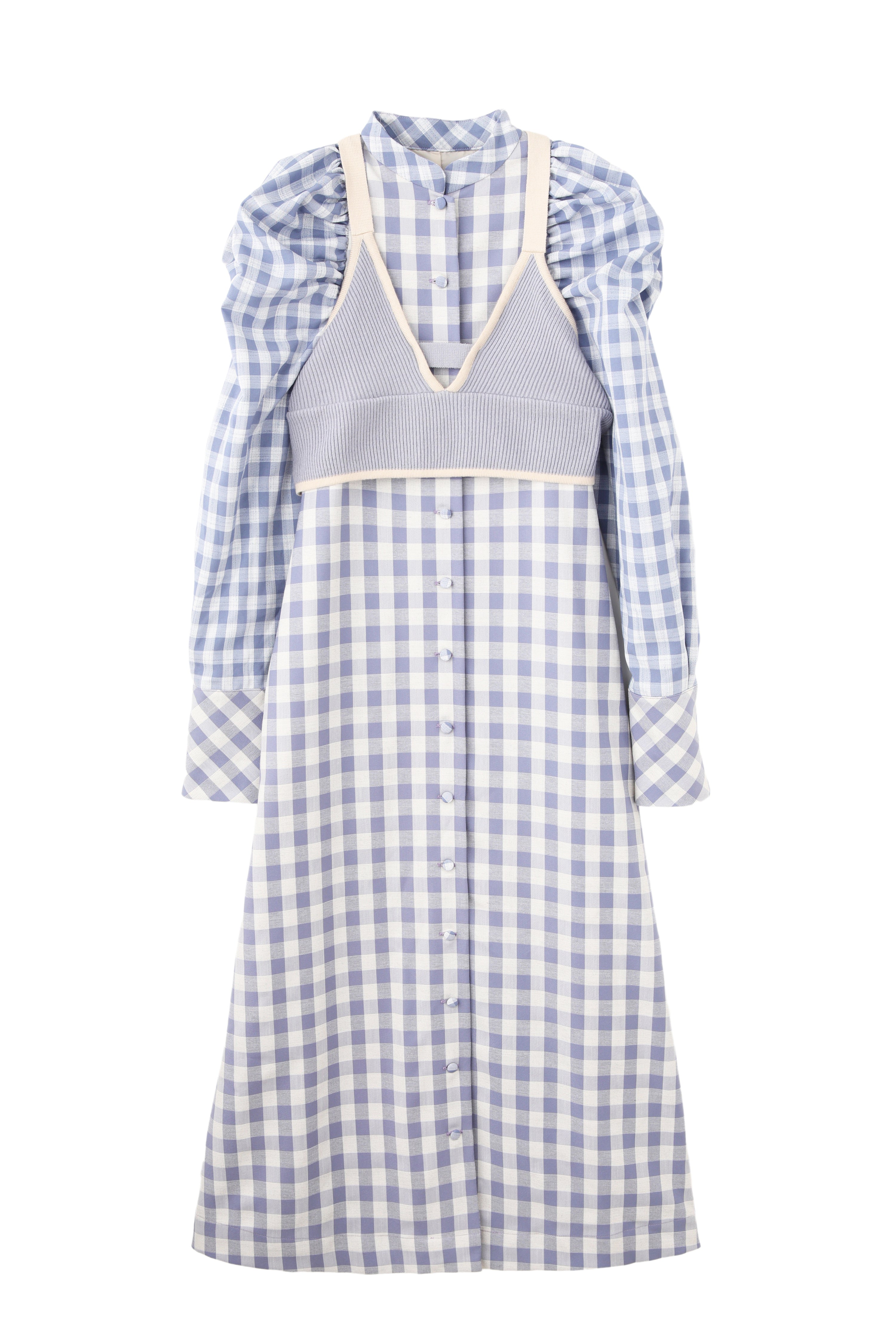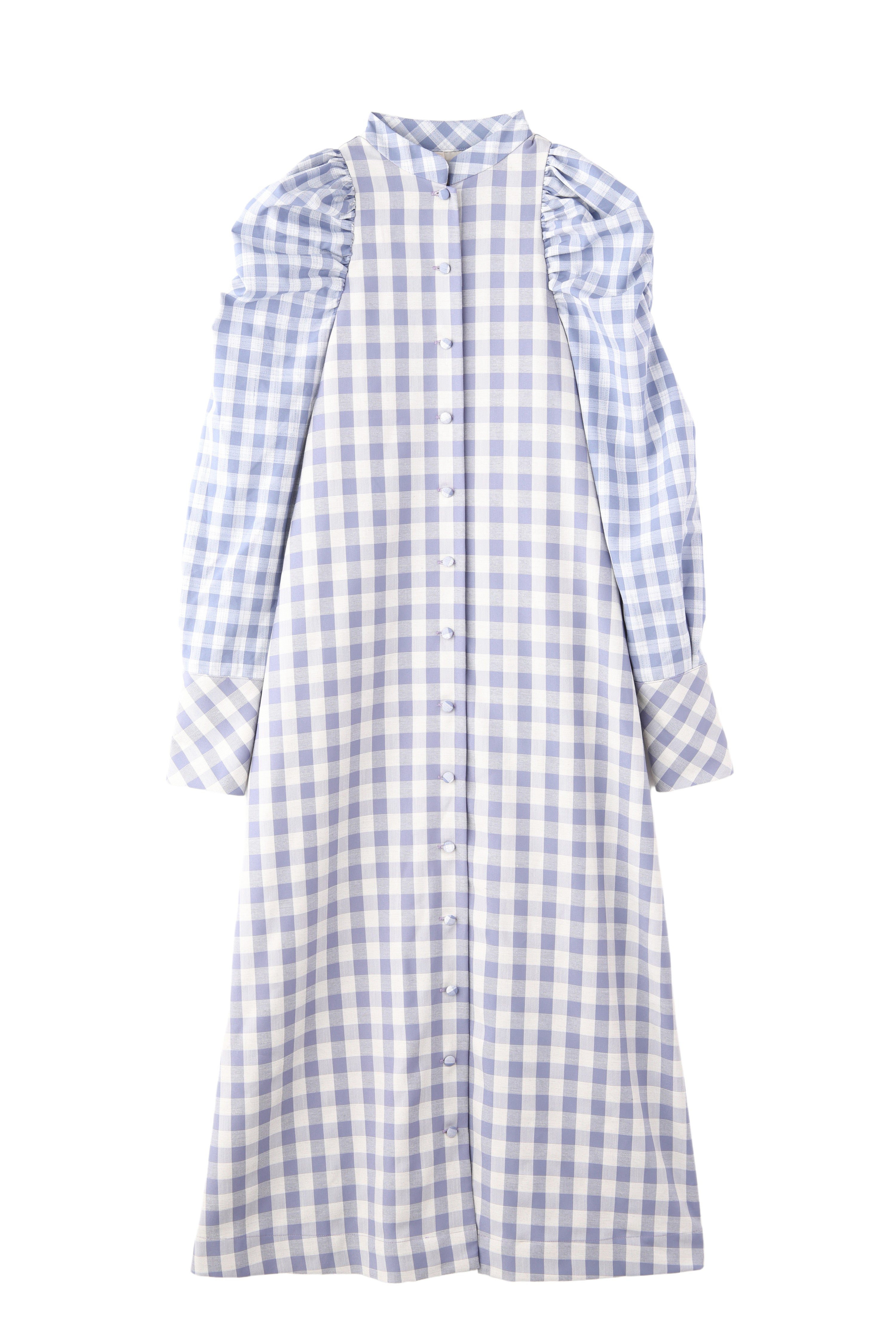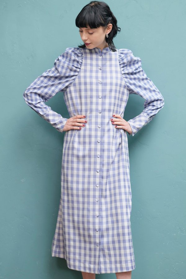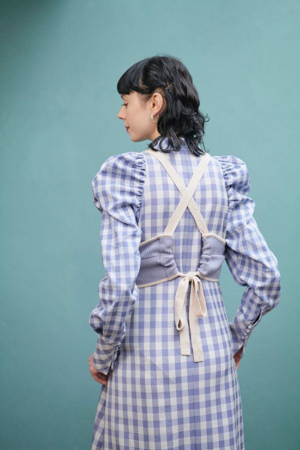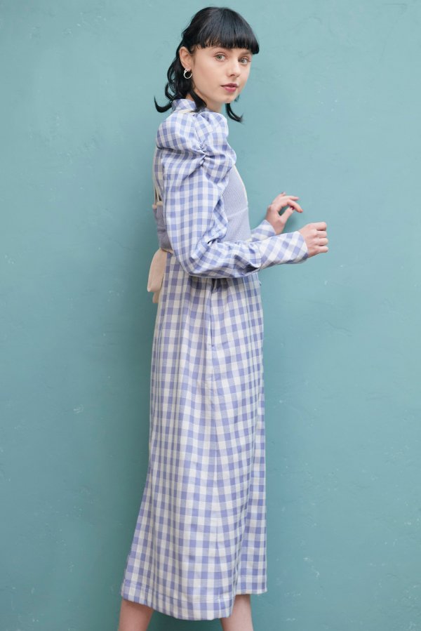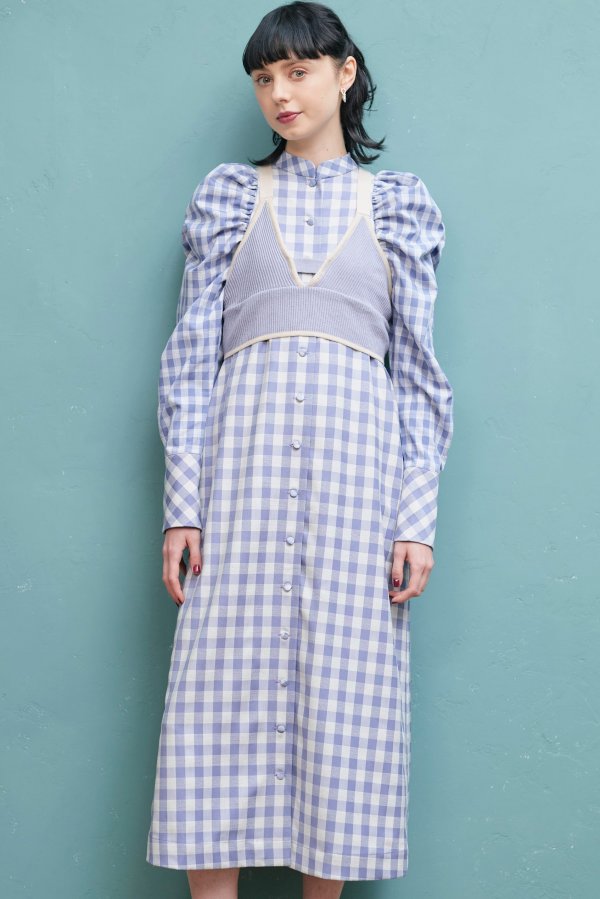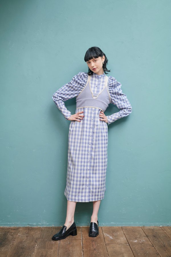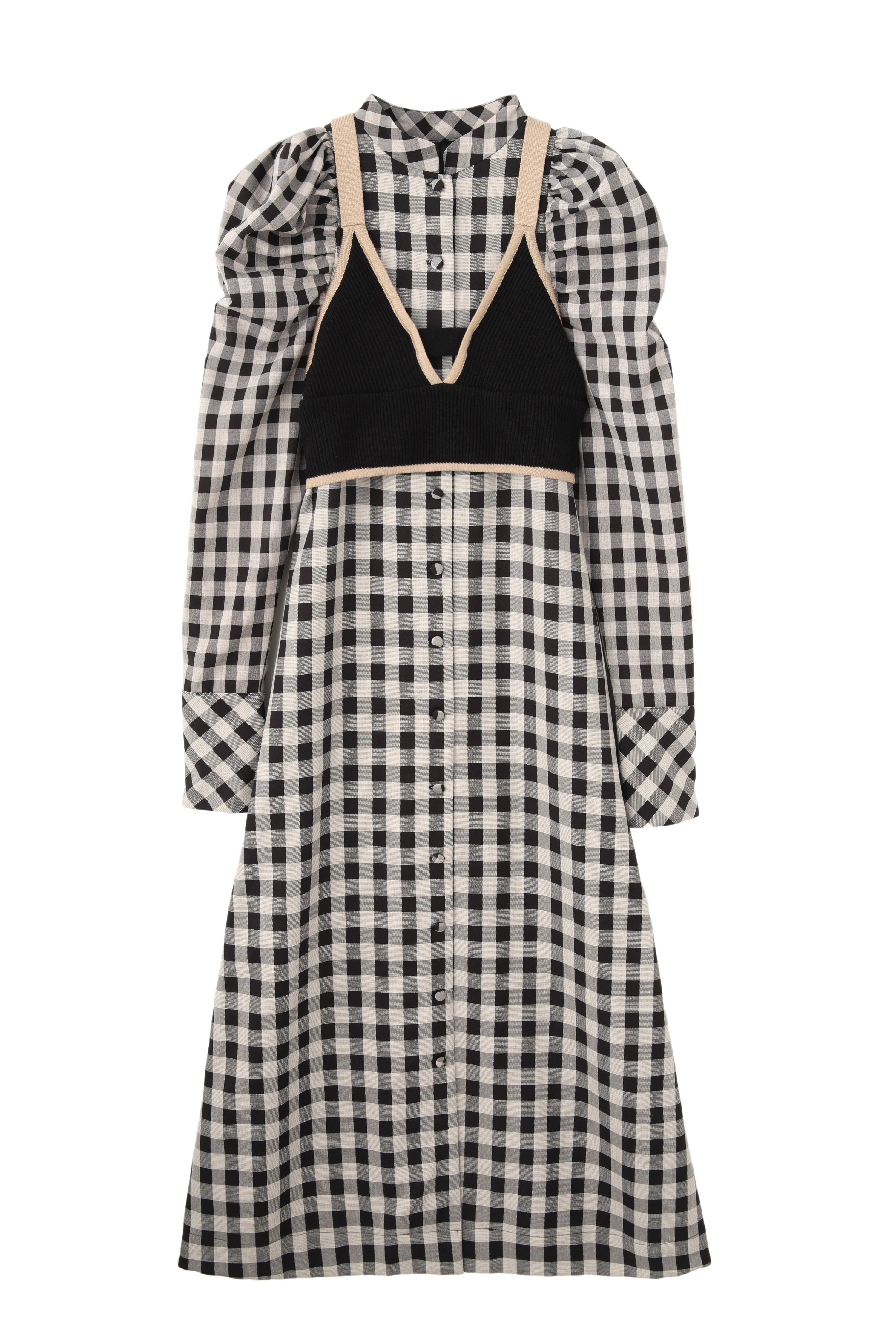 大きいさの違う2種類のギンガムチェックを使用したワンピース。