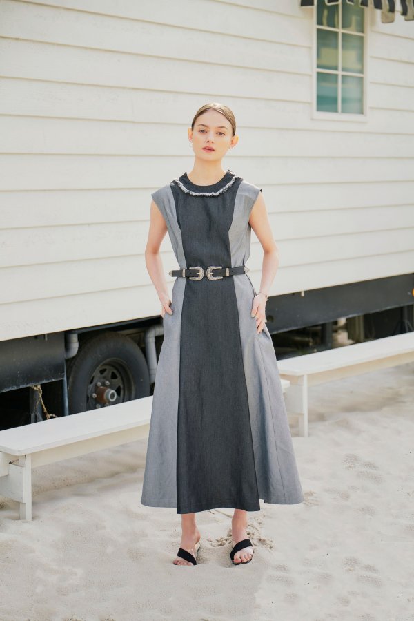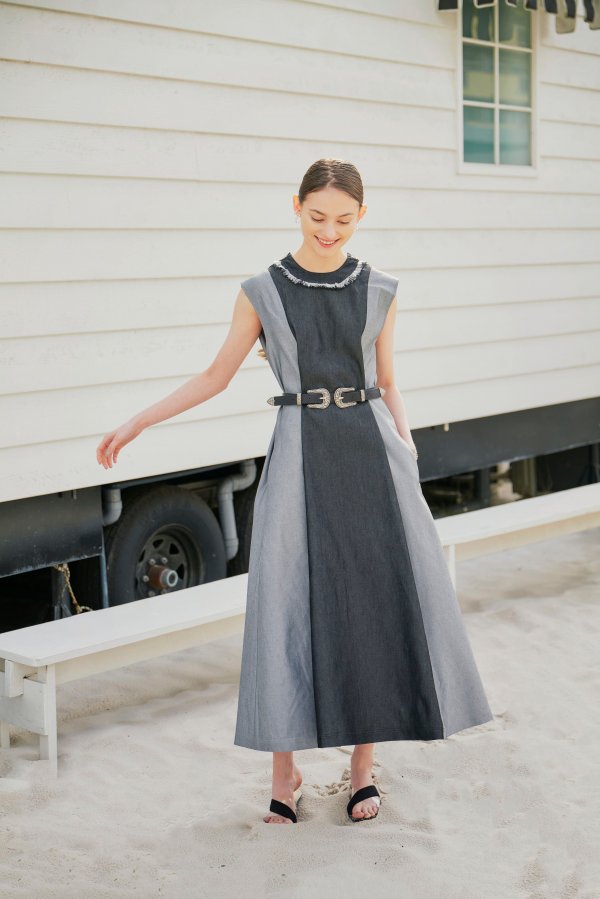 ウエスタンベルトをアクセントにしたデニムワンピース。