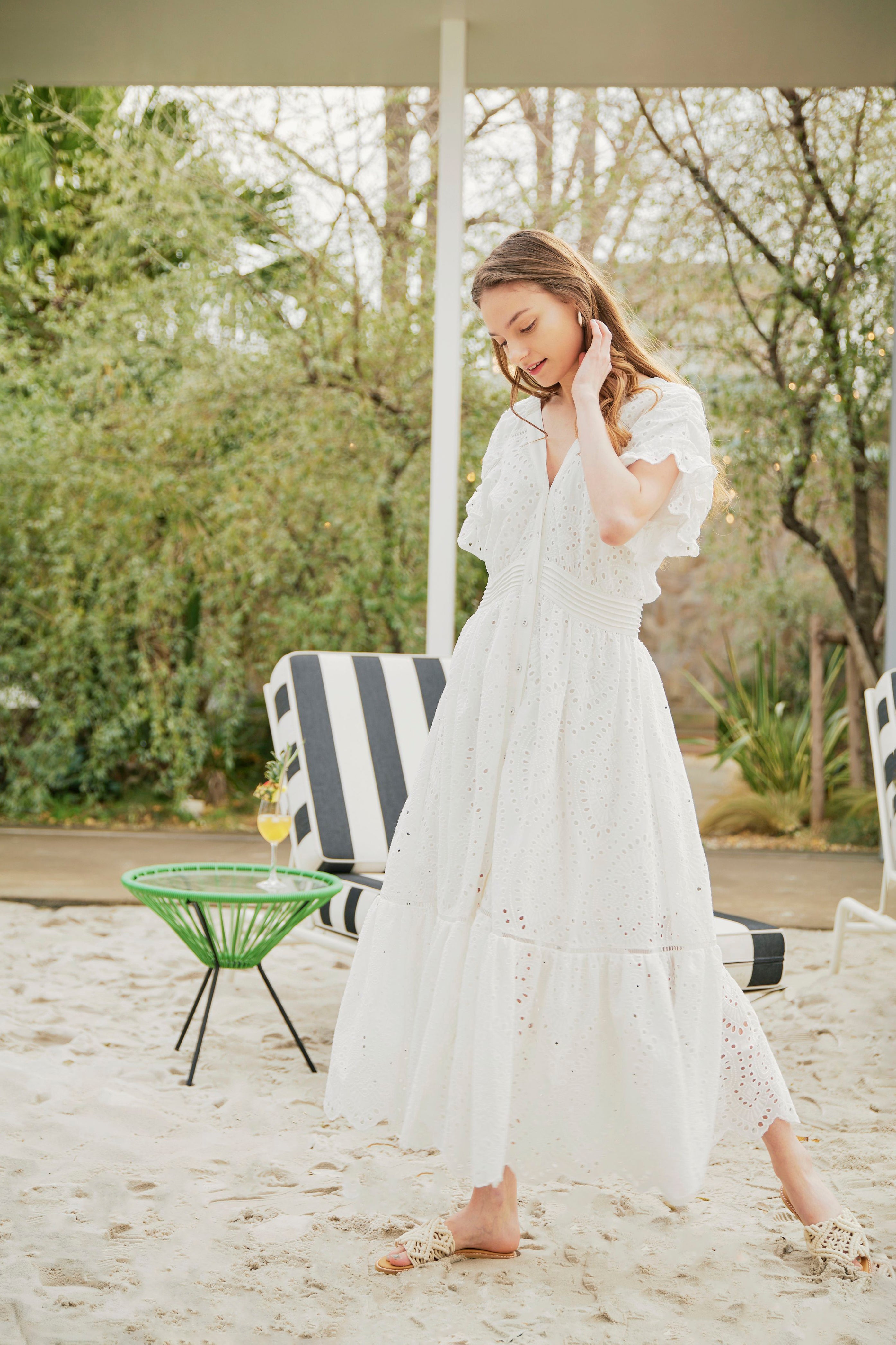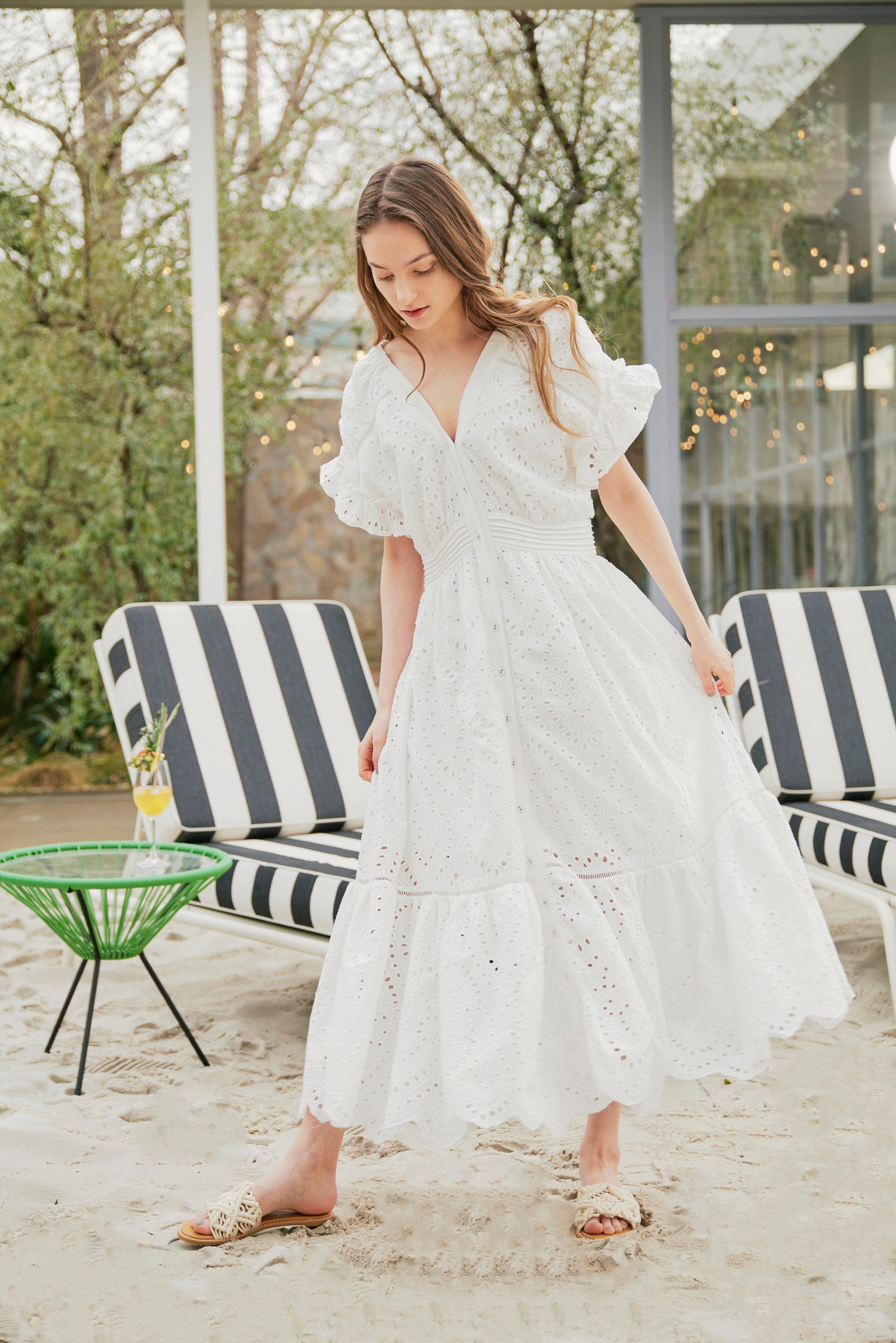 3wayでお使いいただけるカットワークレースワンピース。