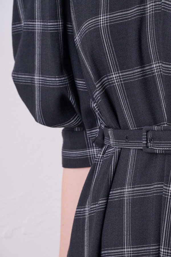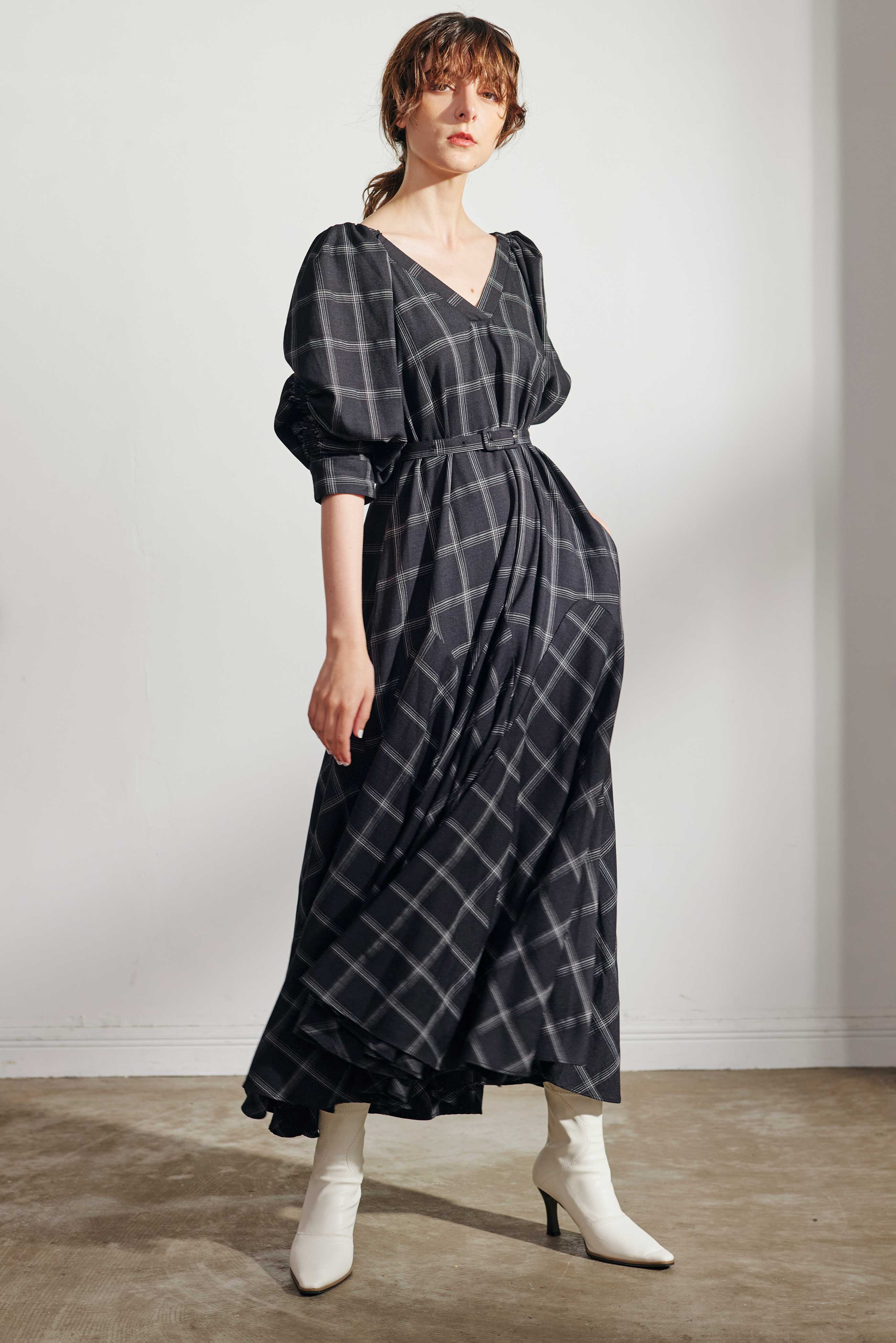 共布のベルトが付属しているのでお好みよってフィットアンドフレアのメリハリが強調するのもおすすめです。