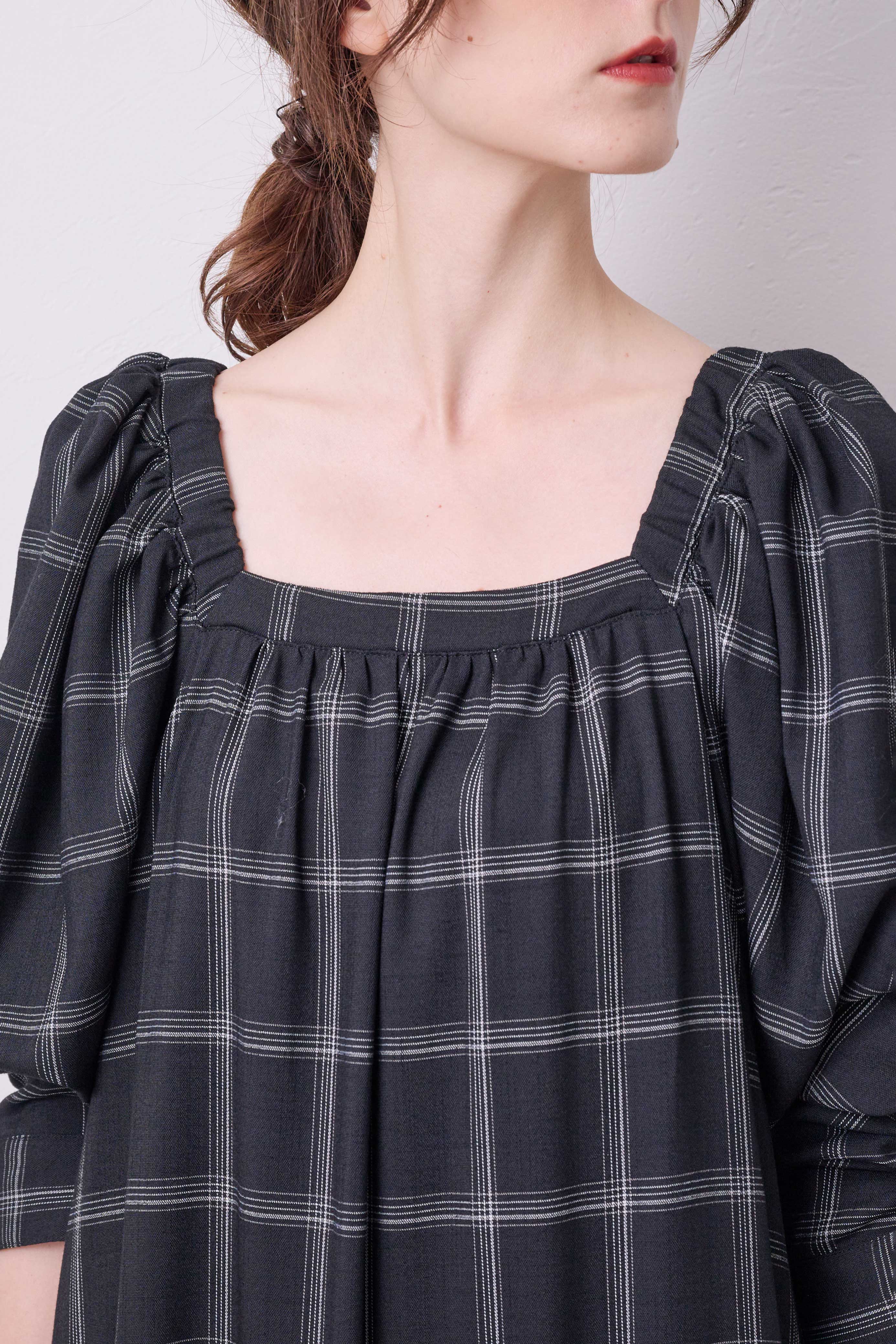 袖山にはぷっくりとギャザーのドレープがでるようにシャーリングをいれ、肩周りの細見え効果抜群な甘すぎないちょうどいいボリューム感のお袖を作りました。