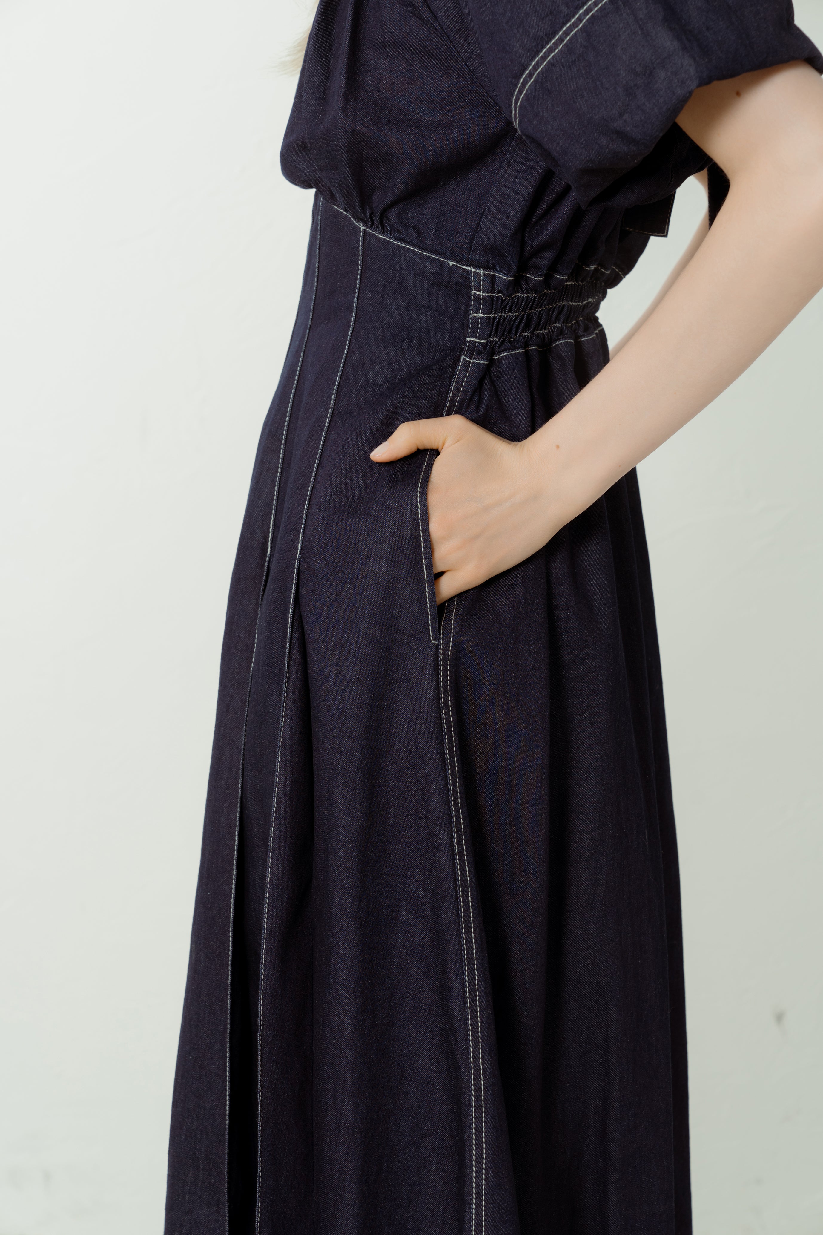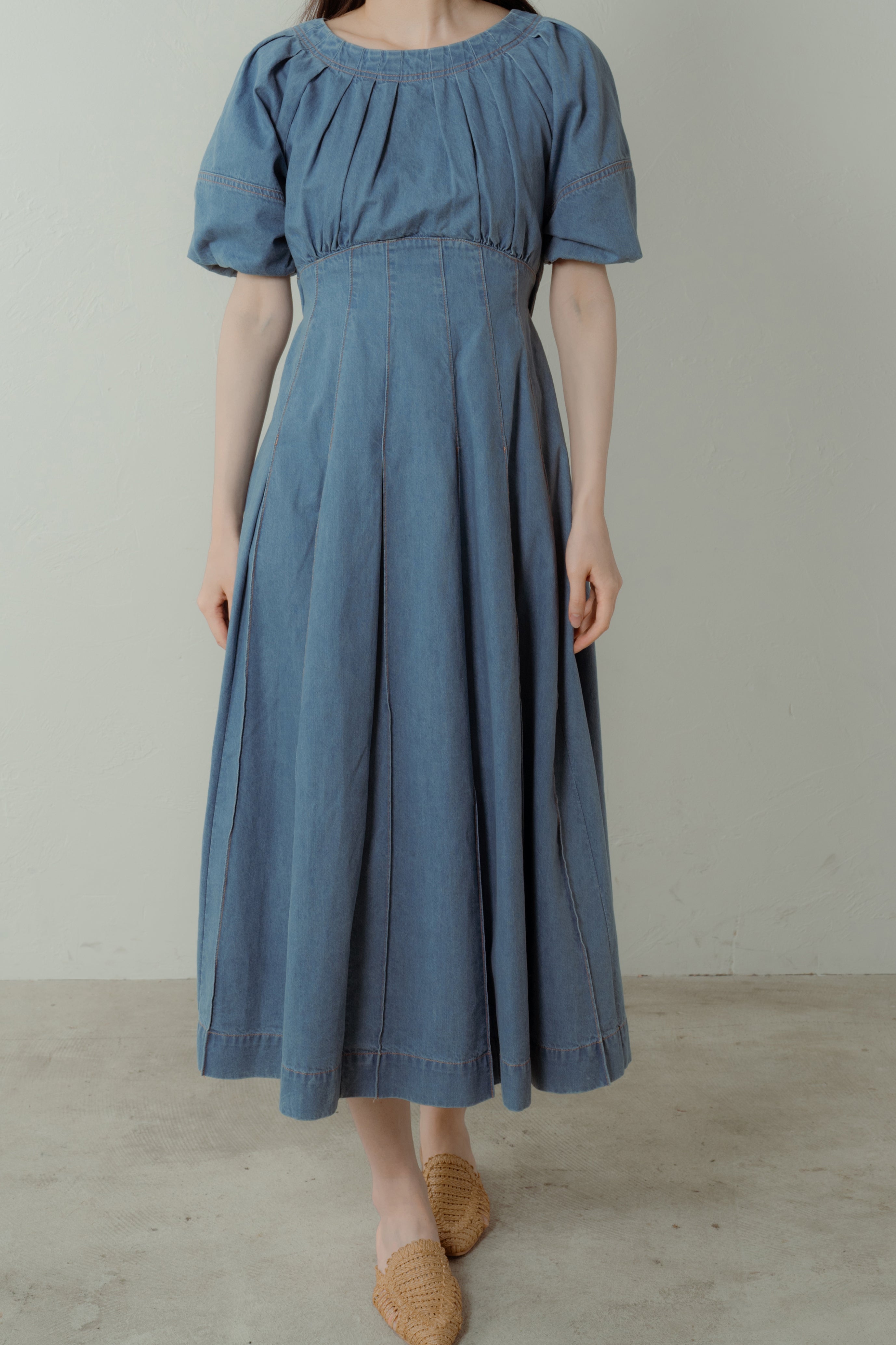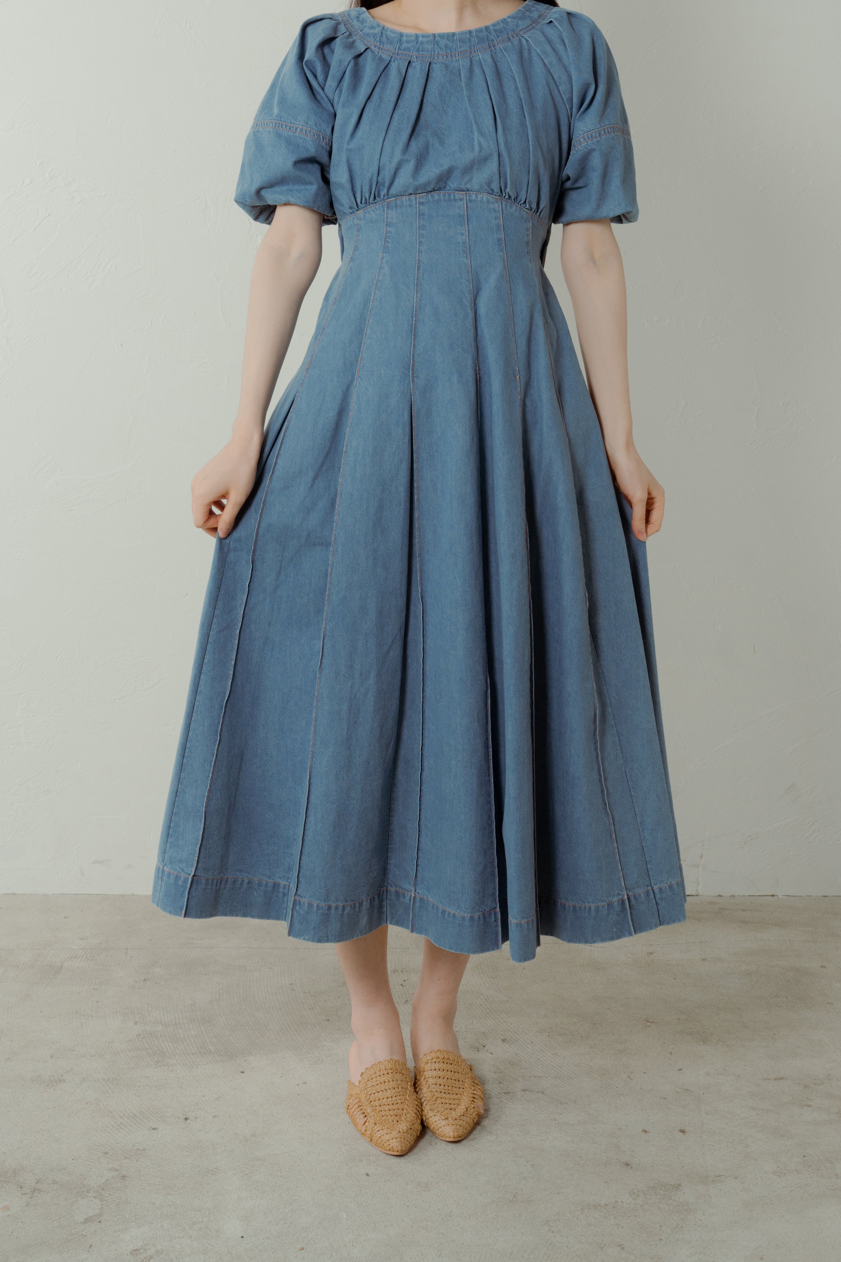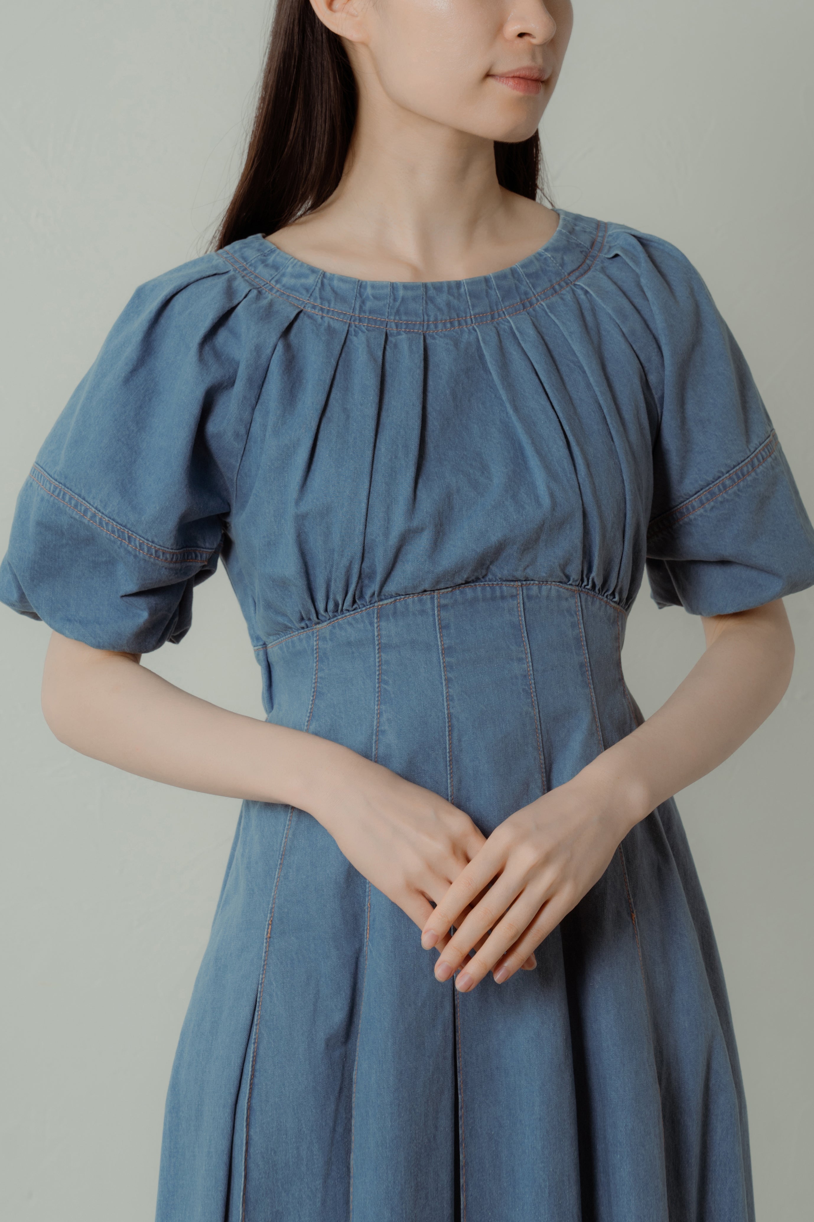 しっかりとしつつも柔らかさのあるデニムを使用した女性らしさを引き立てるデニムドレス。