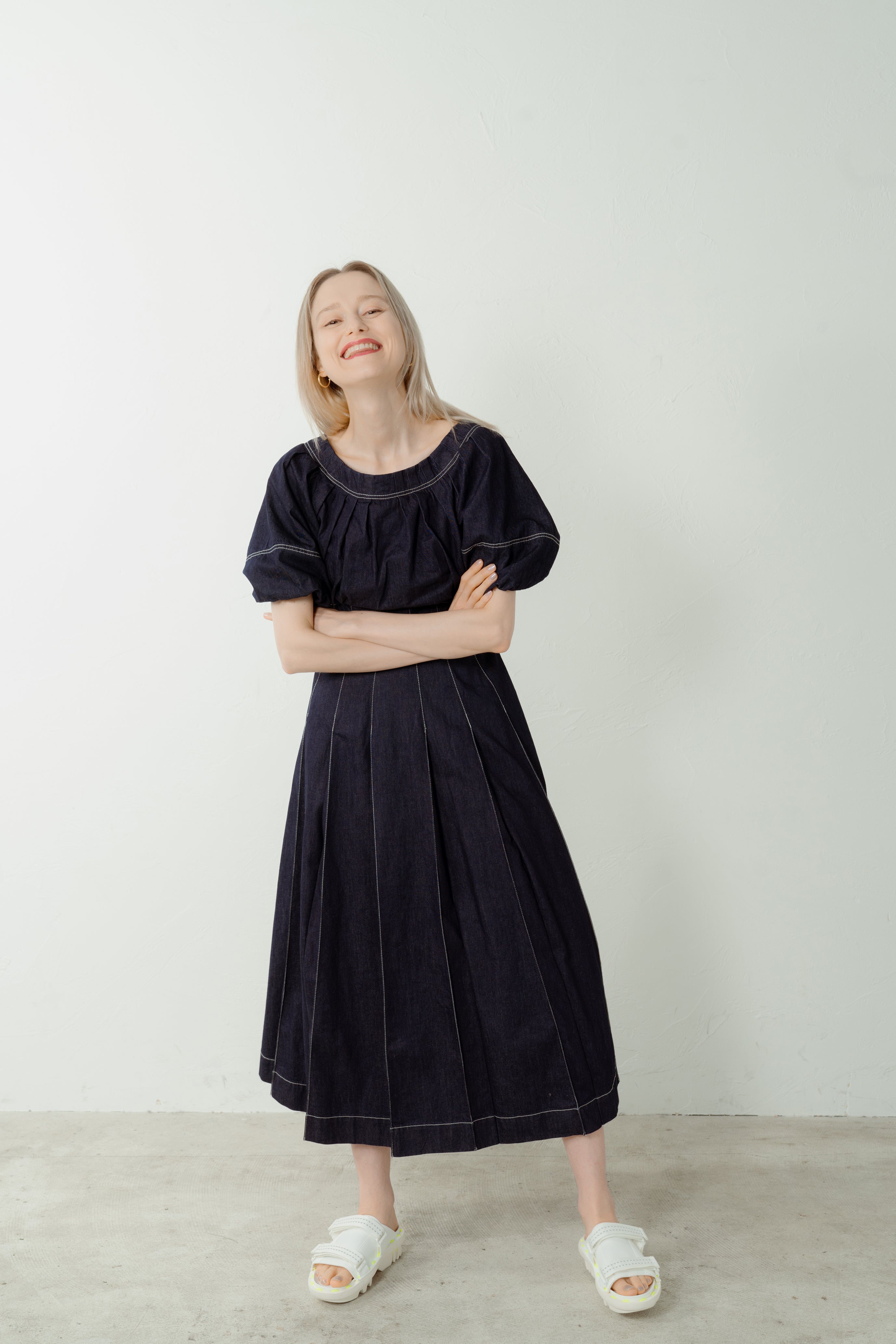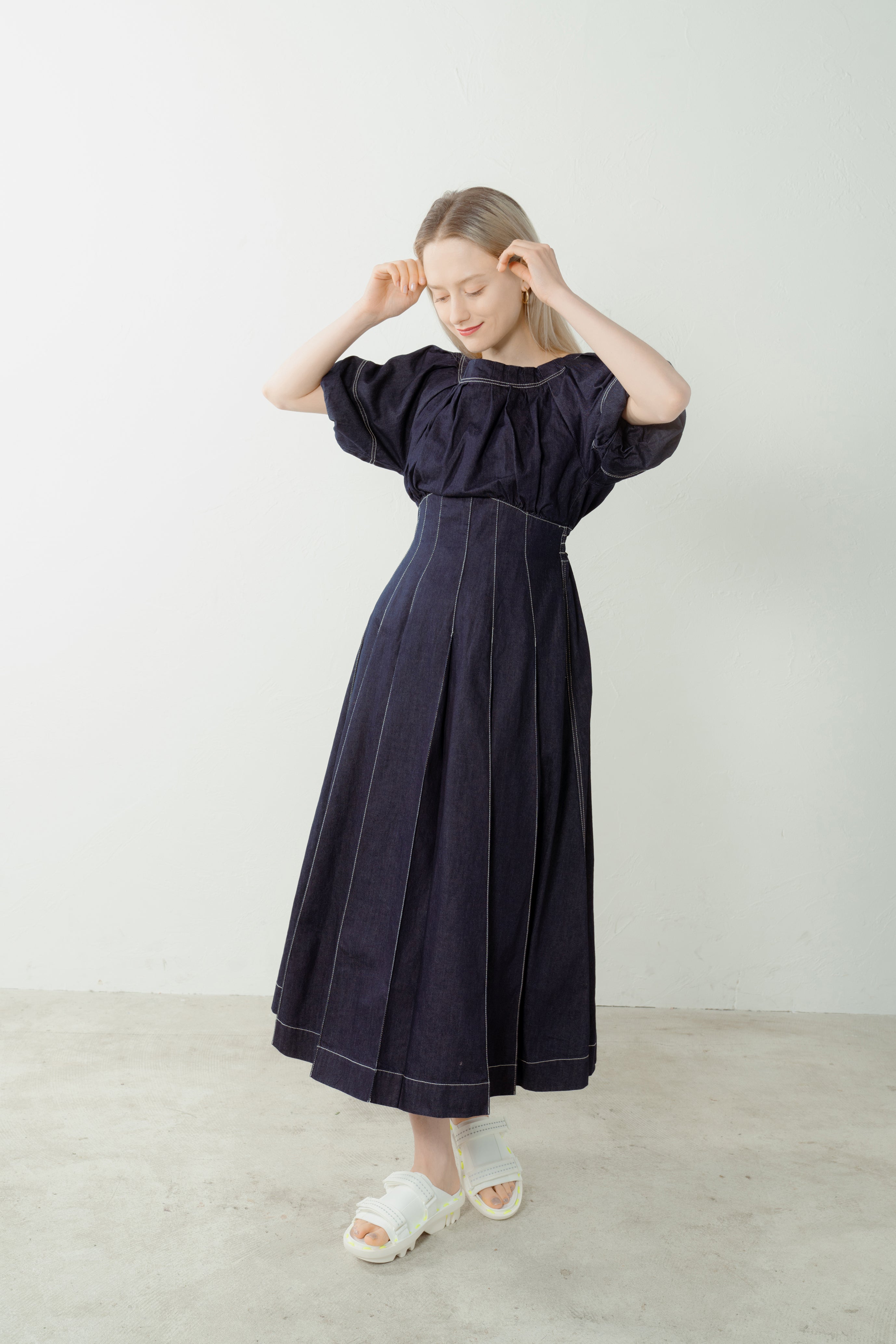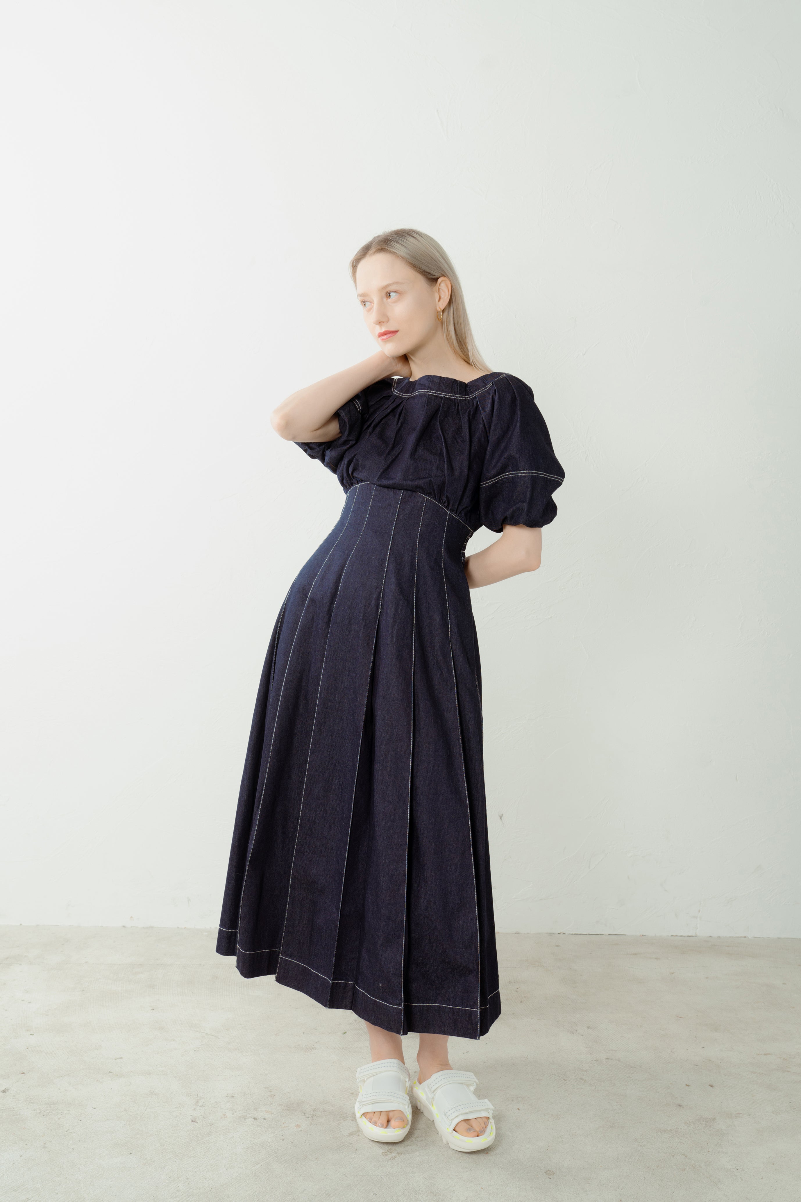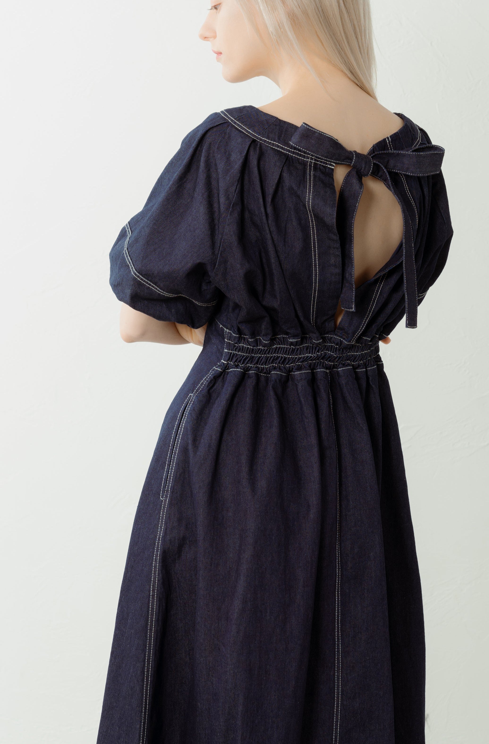 しっかりとしつつも柔らかさのあるデニムを使用した女性らしさを引き立てるデニムドレス。