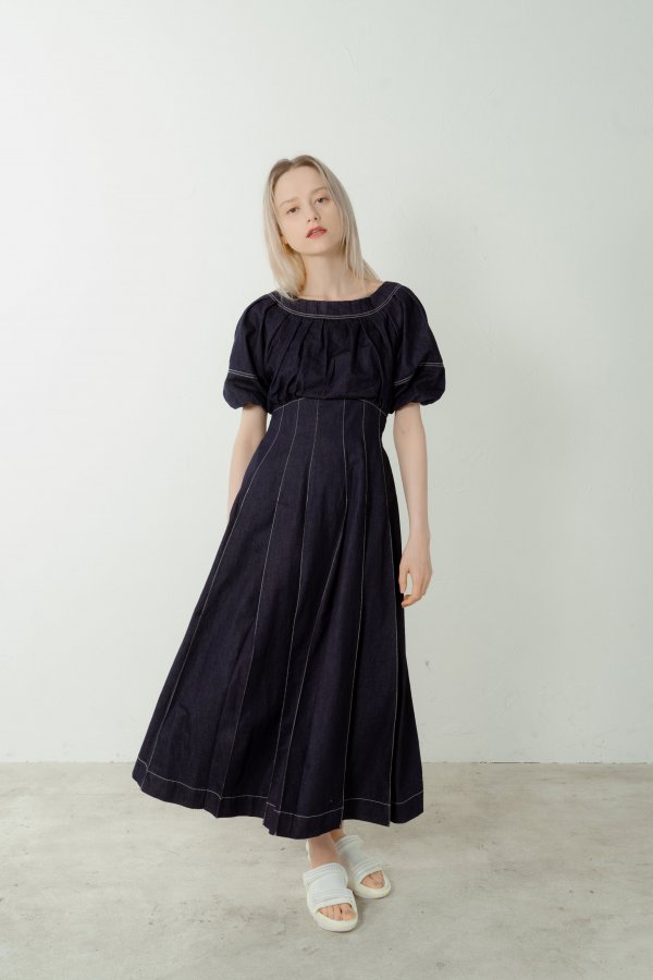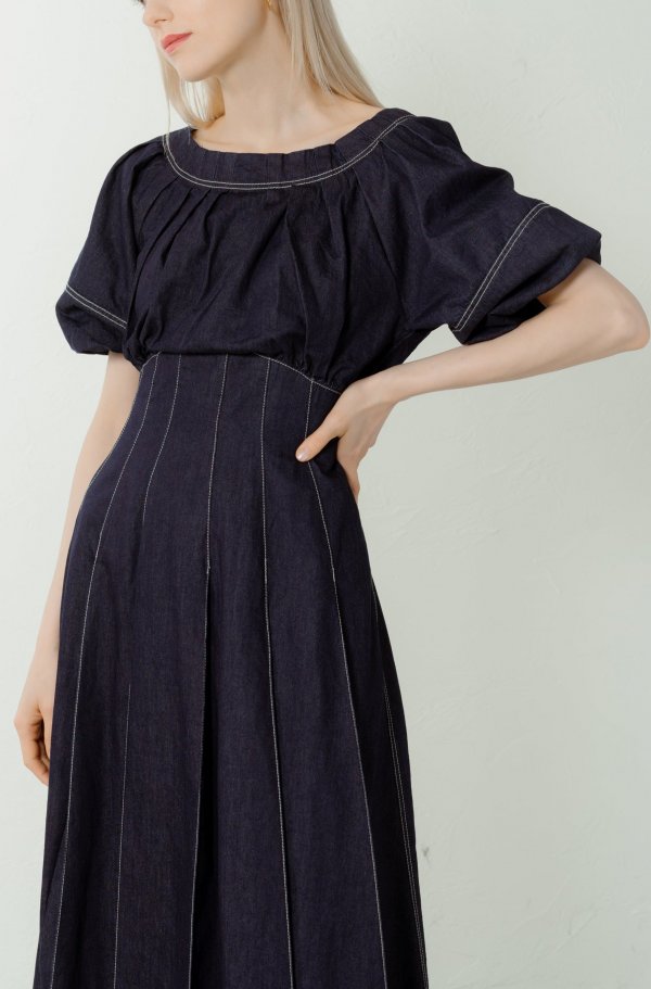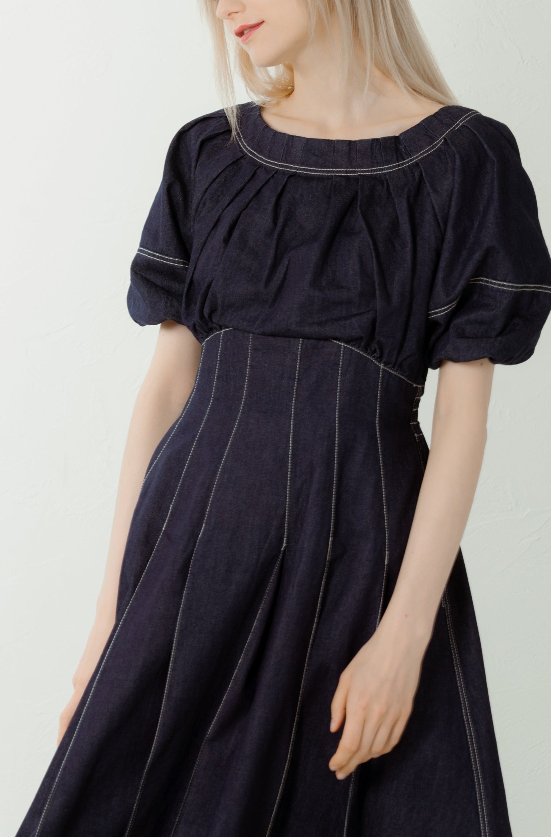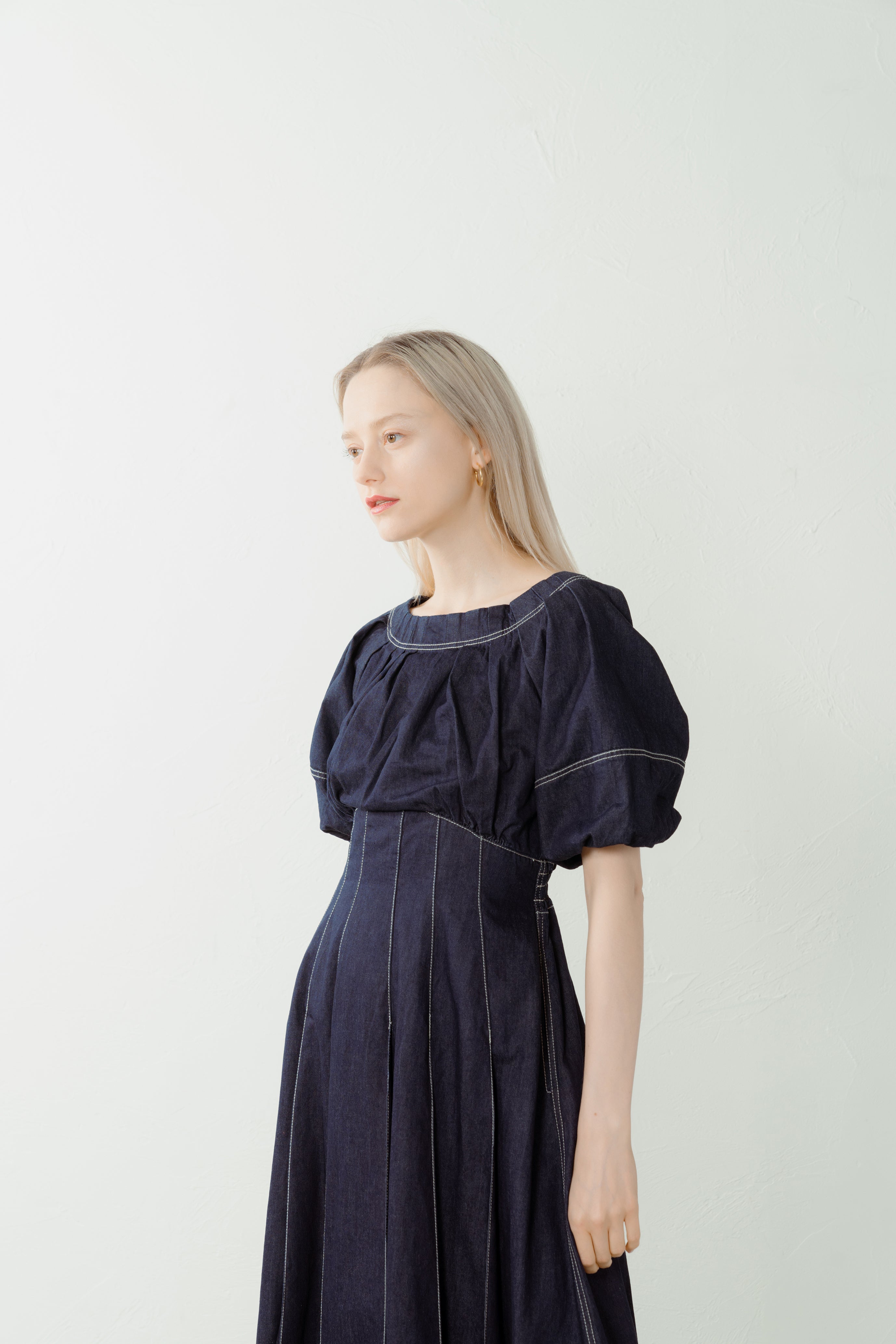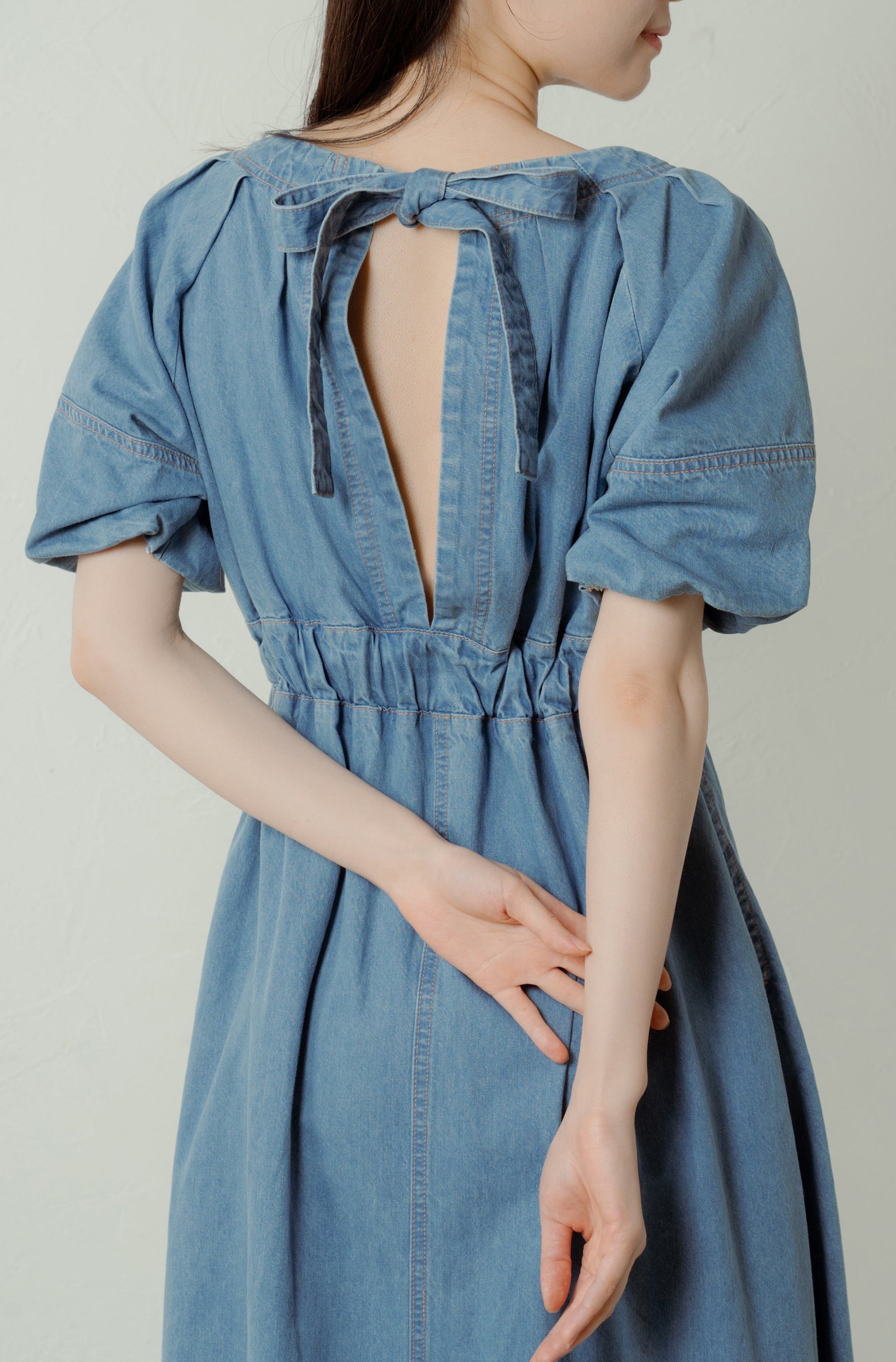 しっかりとしつつも柔らかさのあるデニムを使用した女性らしさを引き立てるデニムドレス。