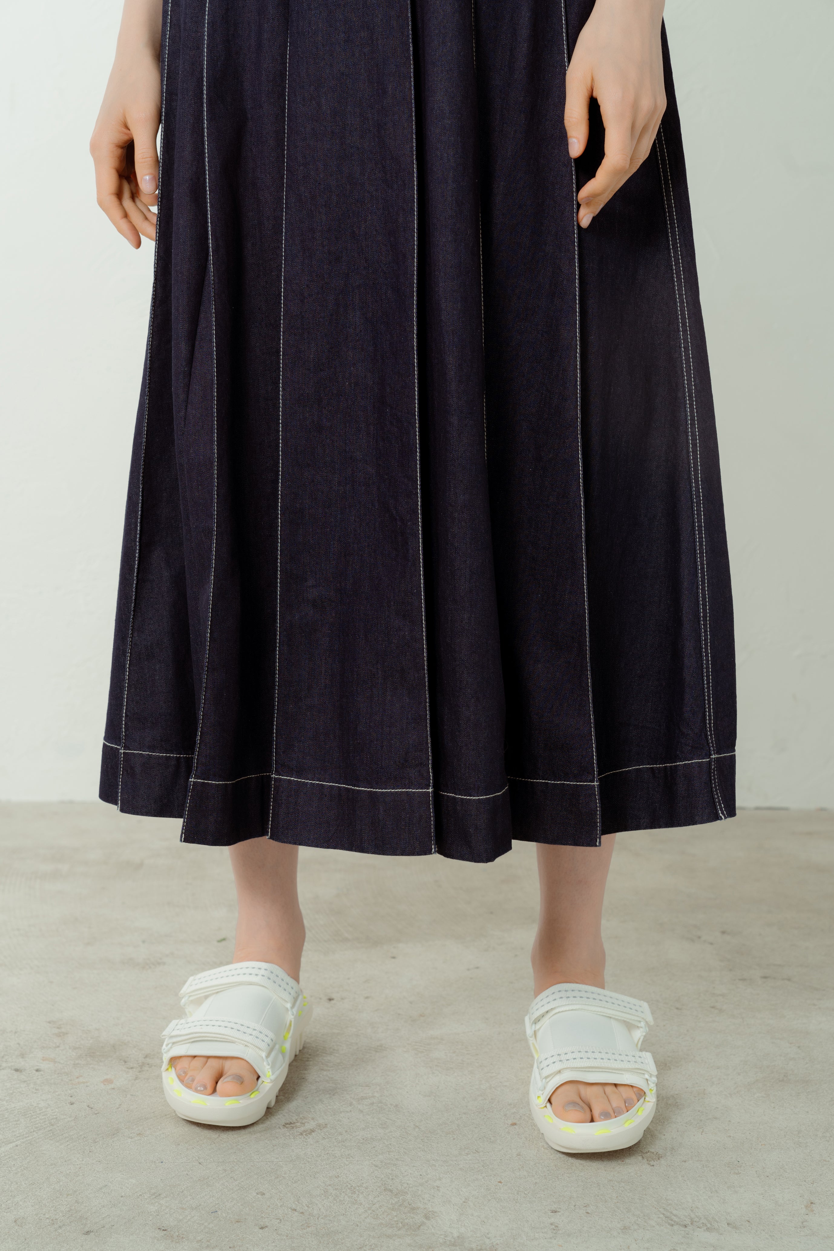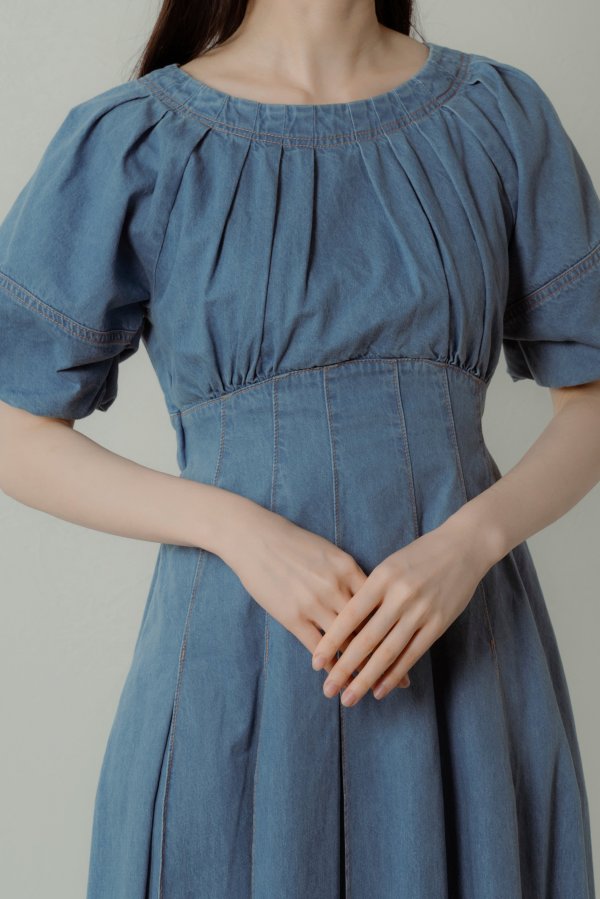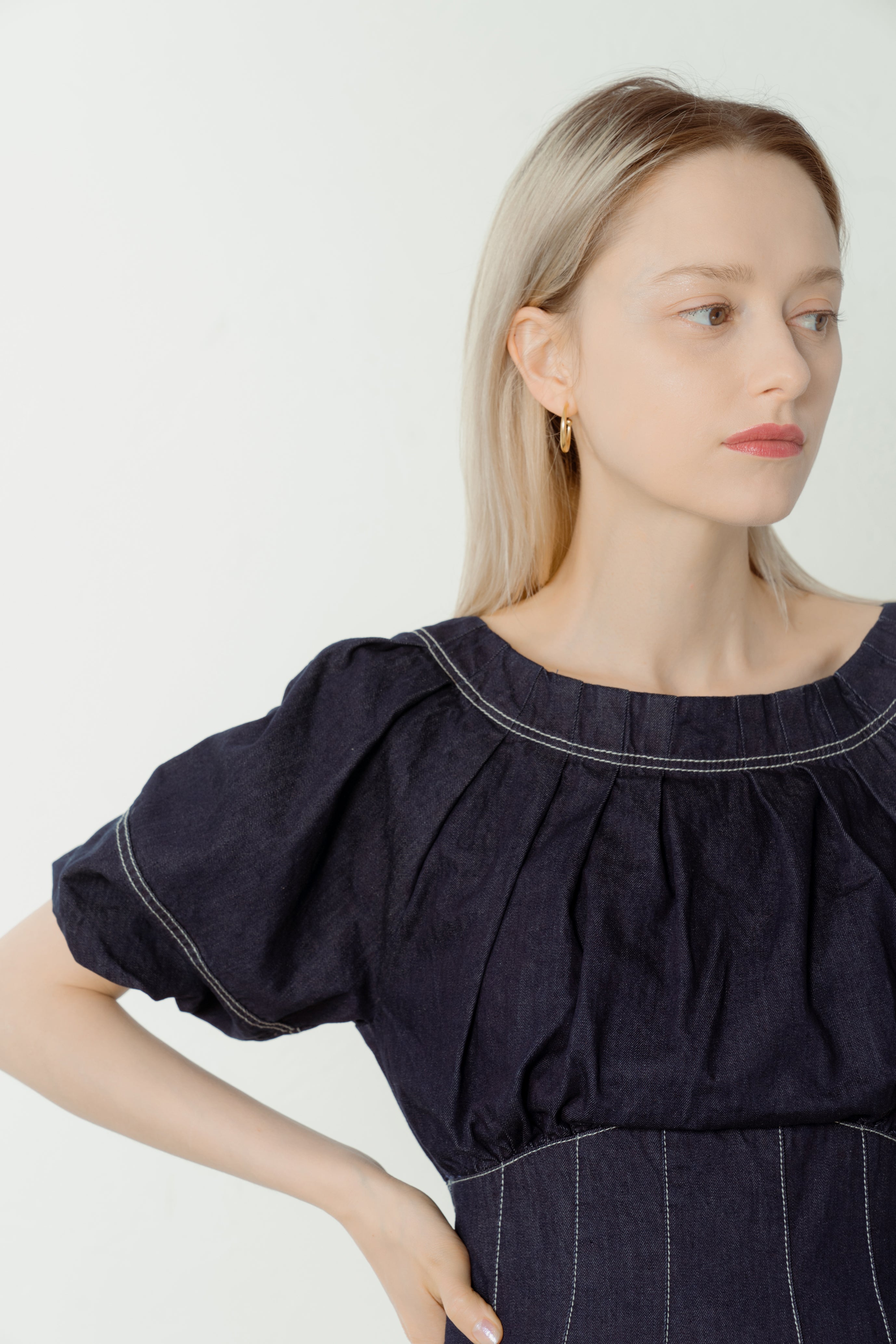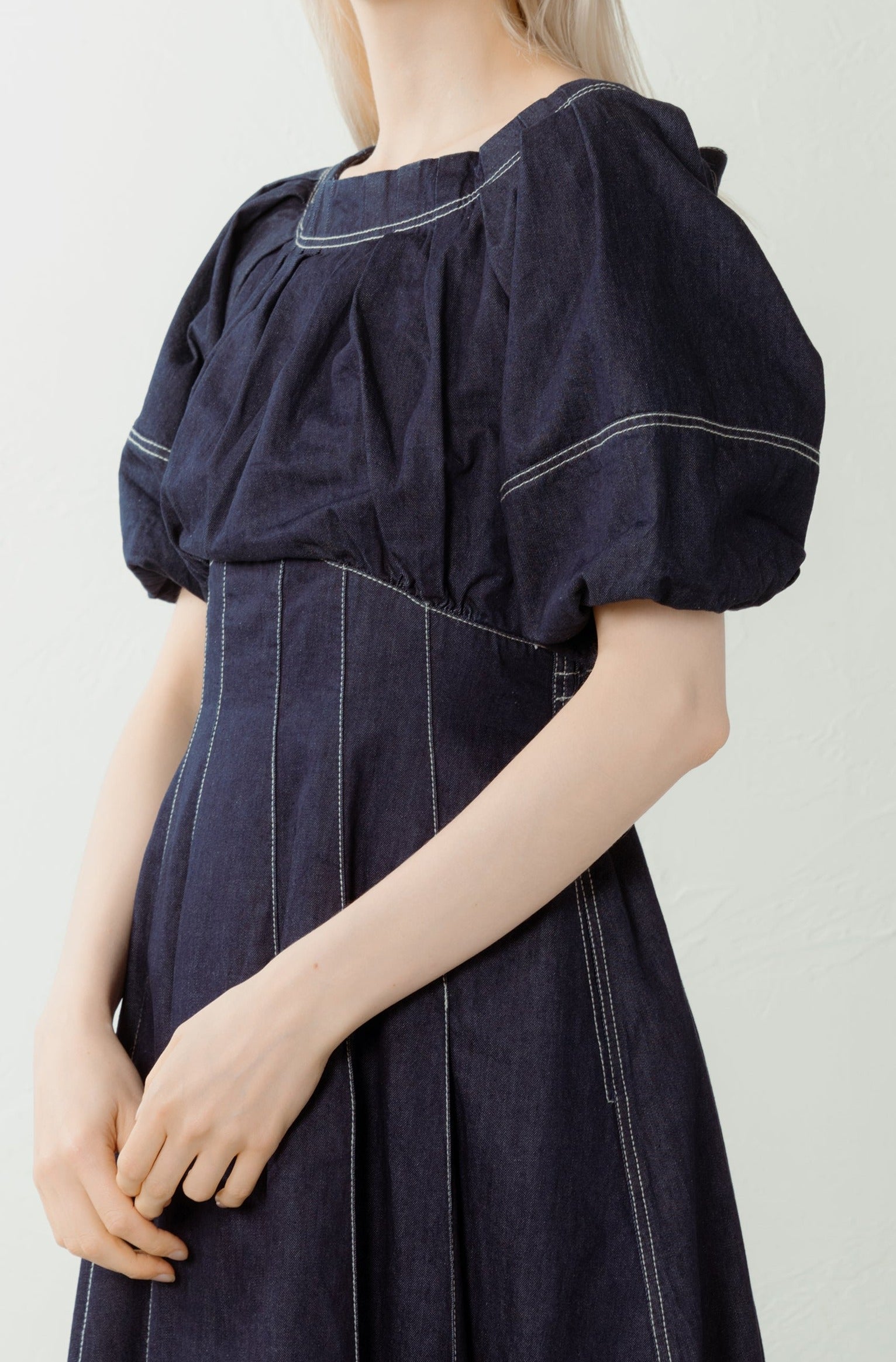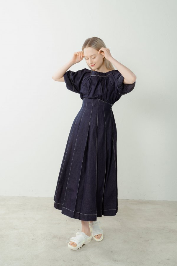 しっかりとしつつも柔らかさのあるデニムを使用した女性らしさを引き立てるデニムドレス。