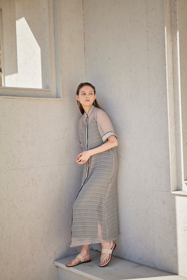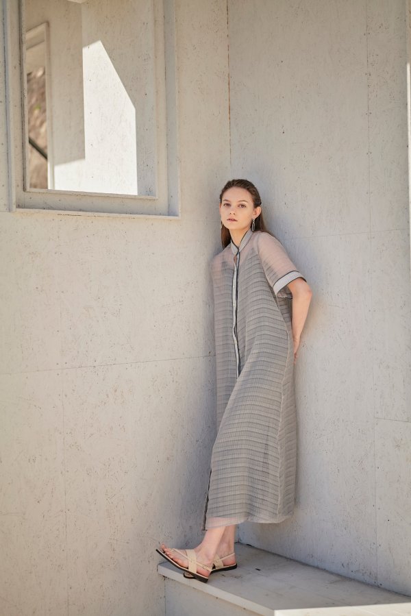 透け感がおしゃれなちょっと変わった生地のワンピース。