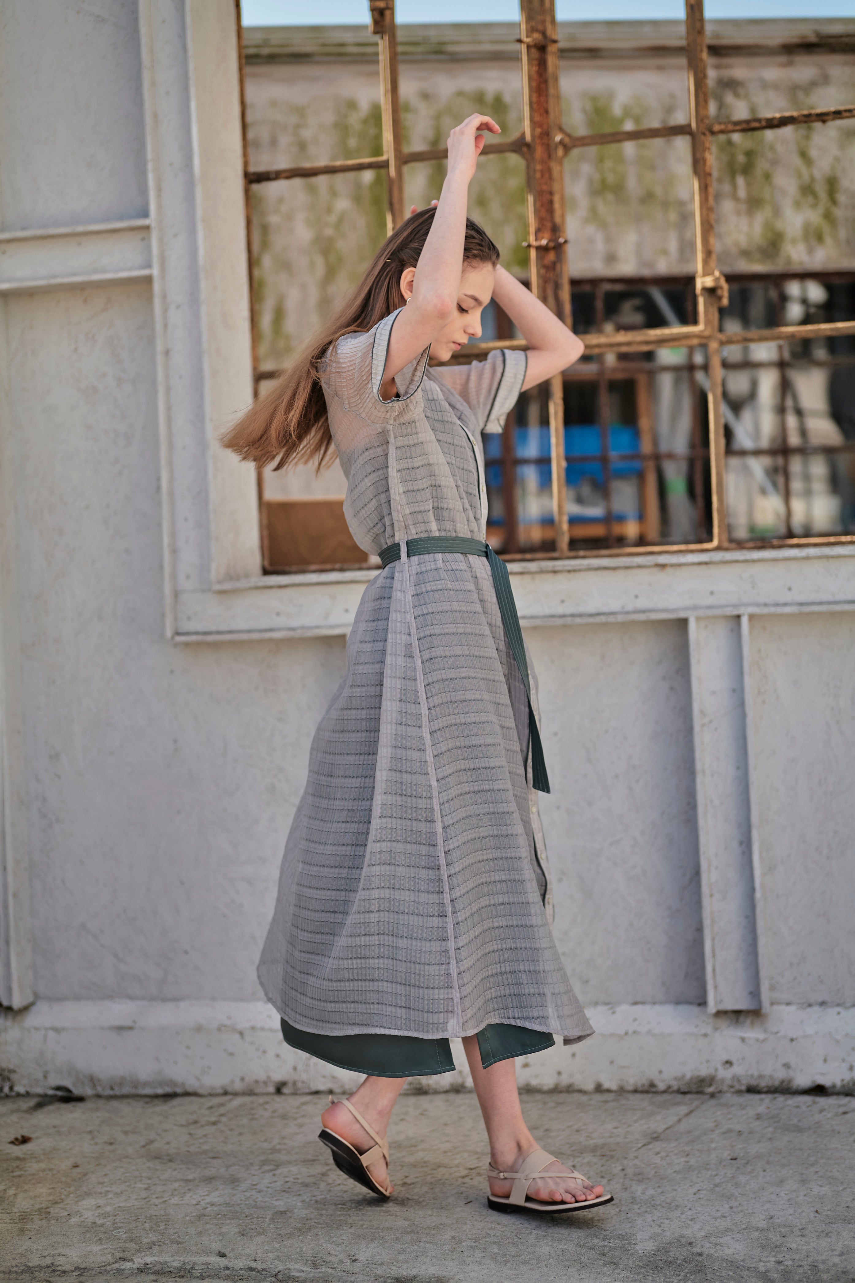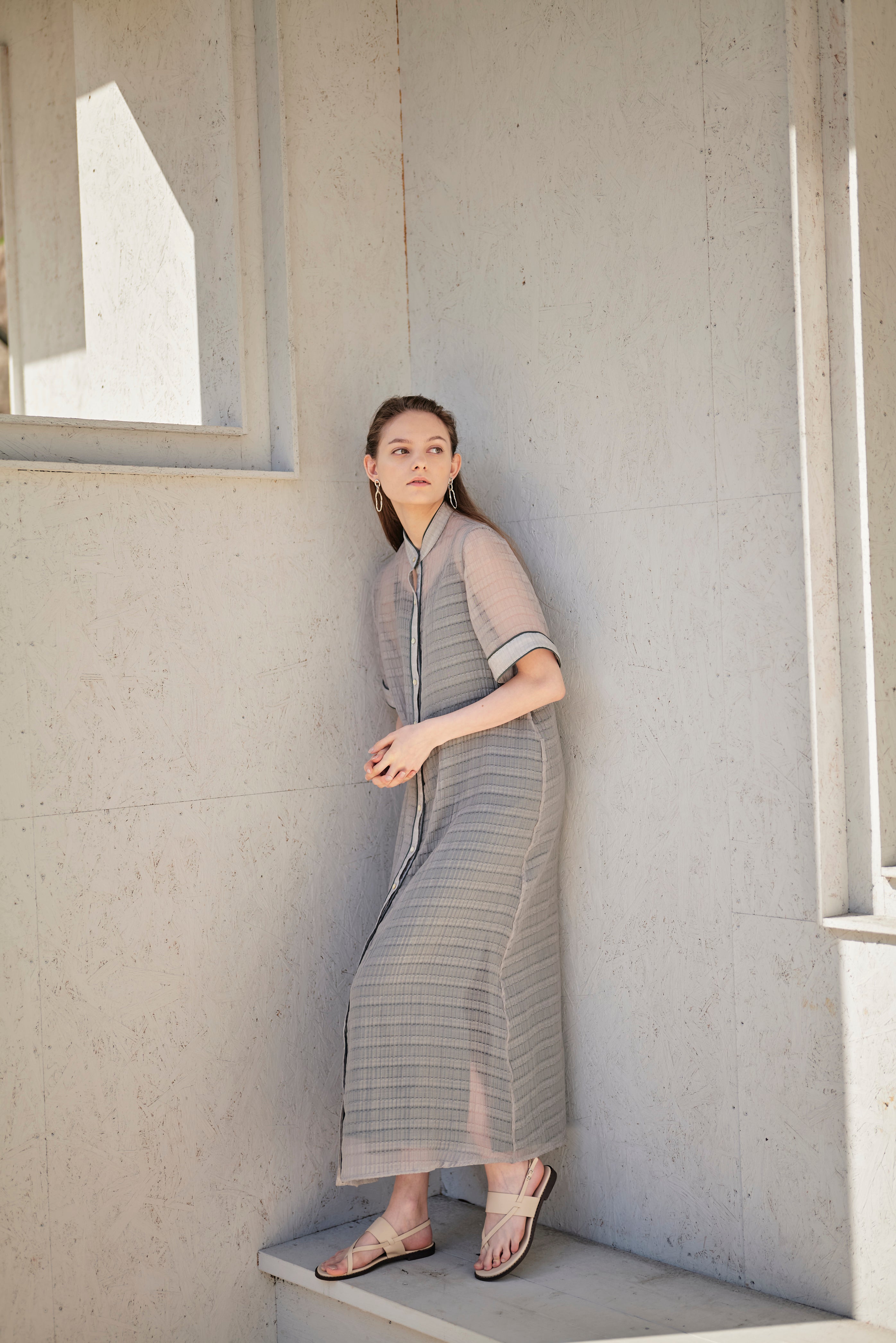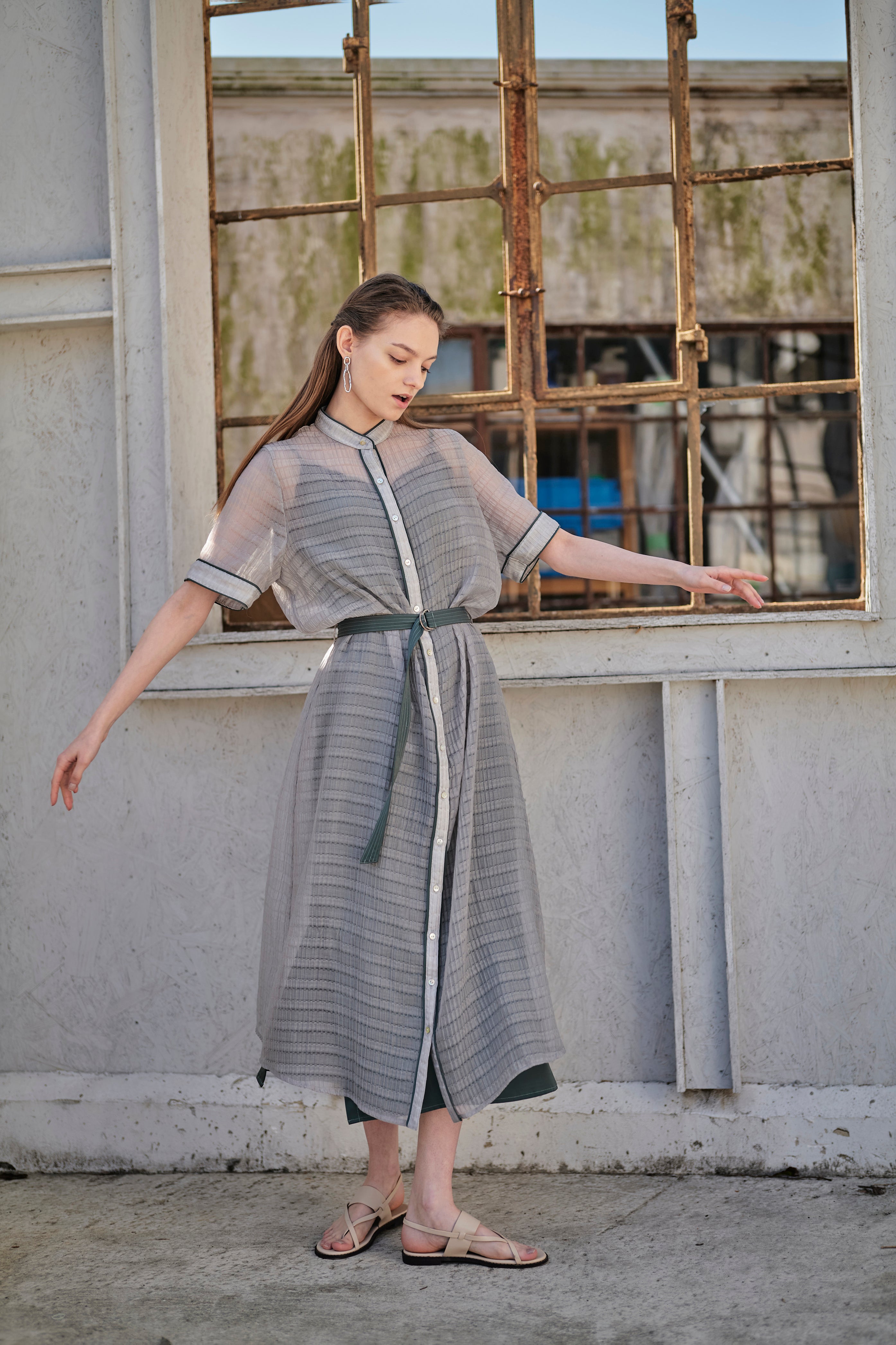 - ATTACHED COLLAR SHIRT DRESS