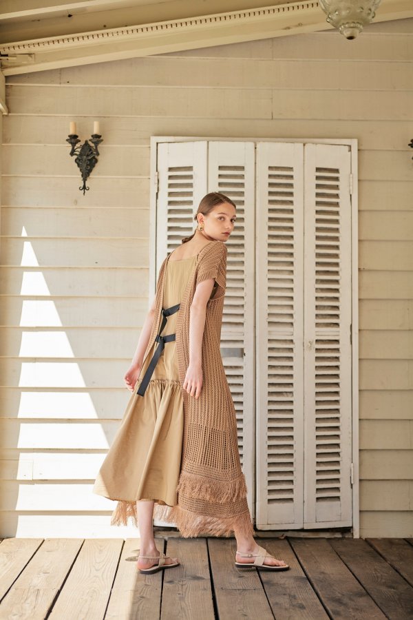 Dカンを背面にしてインナーワンピと合わせて着ていただければ、