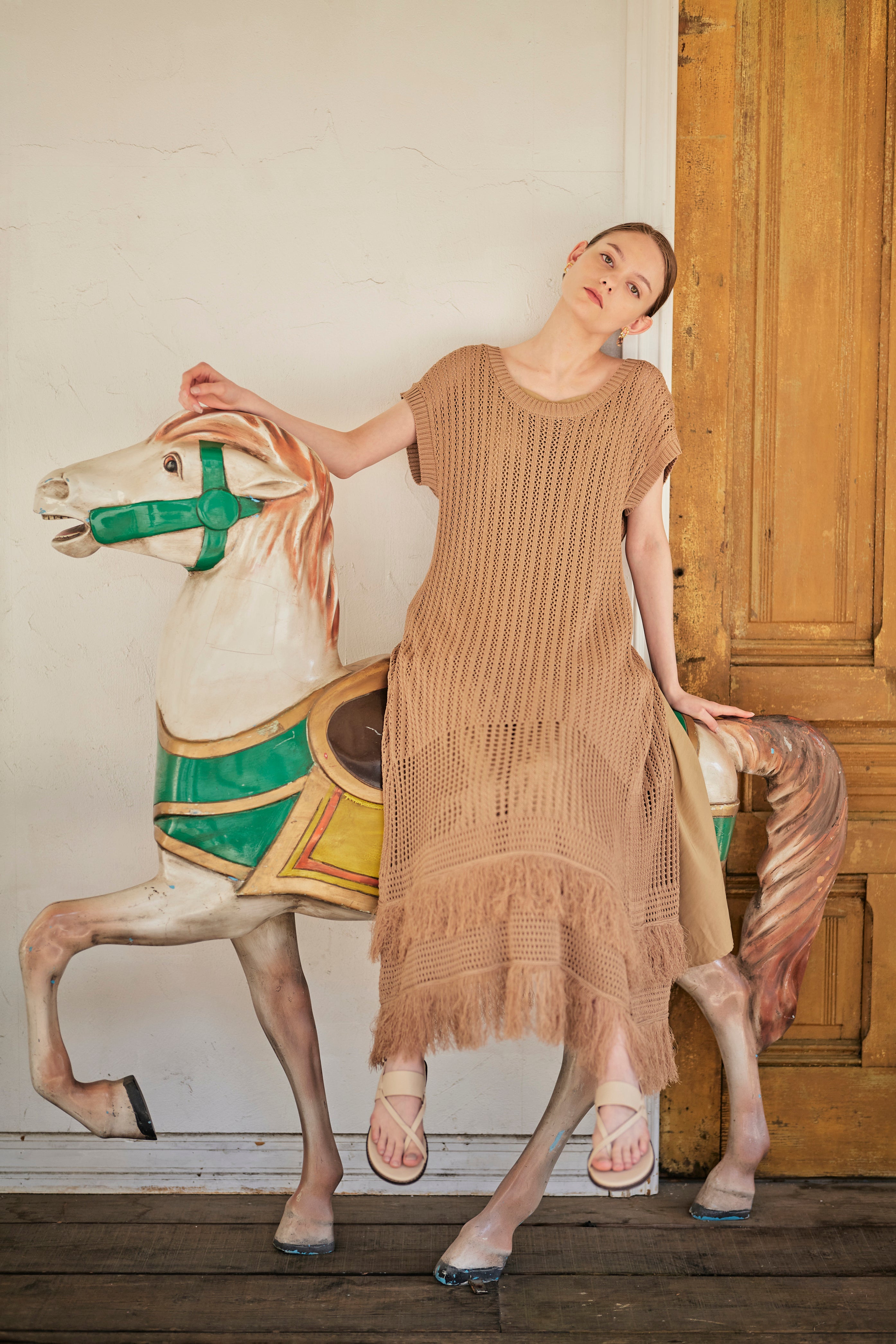 ざっくりとしたニットロングワンピースとして着ていただけます。