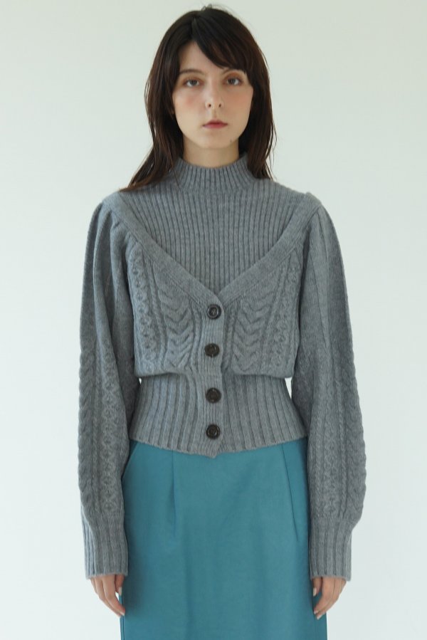 アンサンブルを重ねて着ているように見えるドッキングニットトップス。