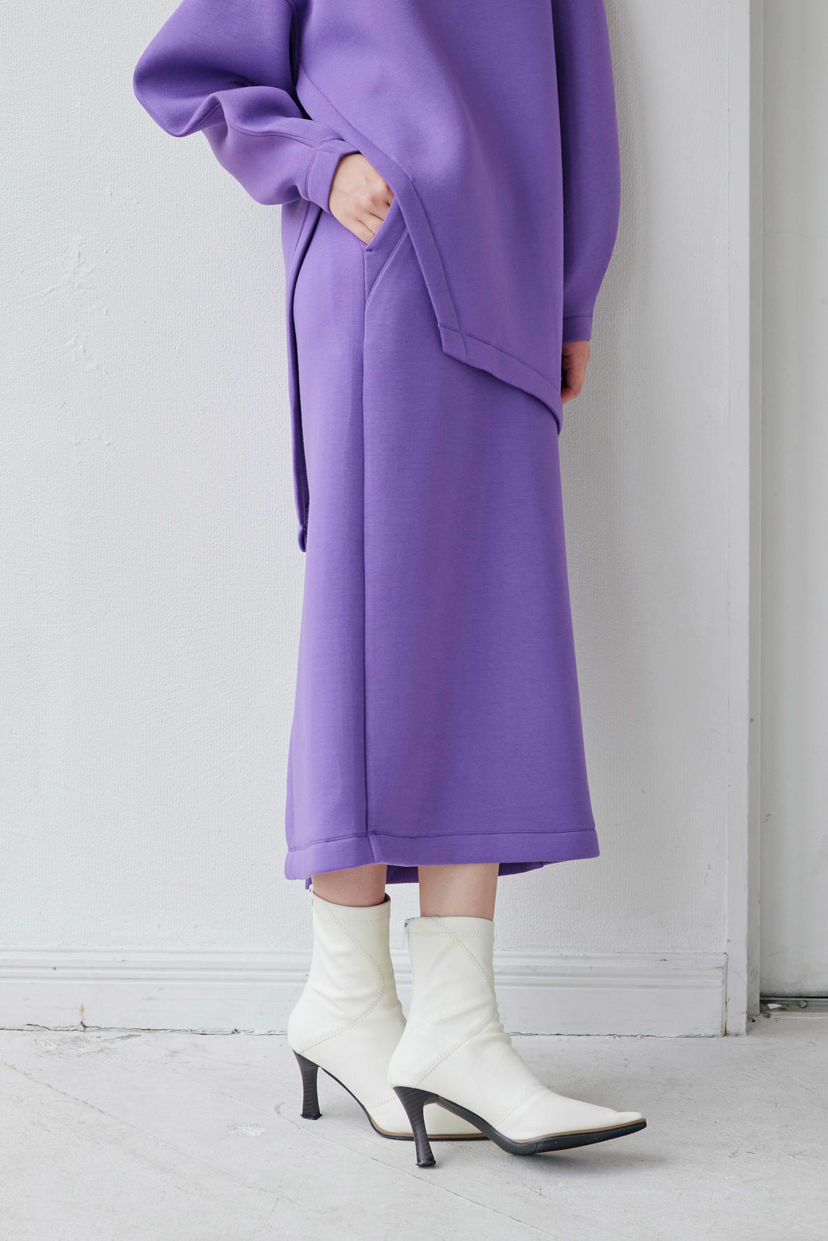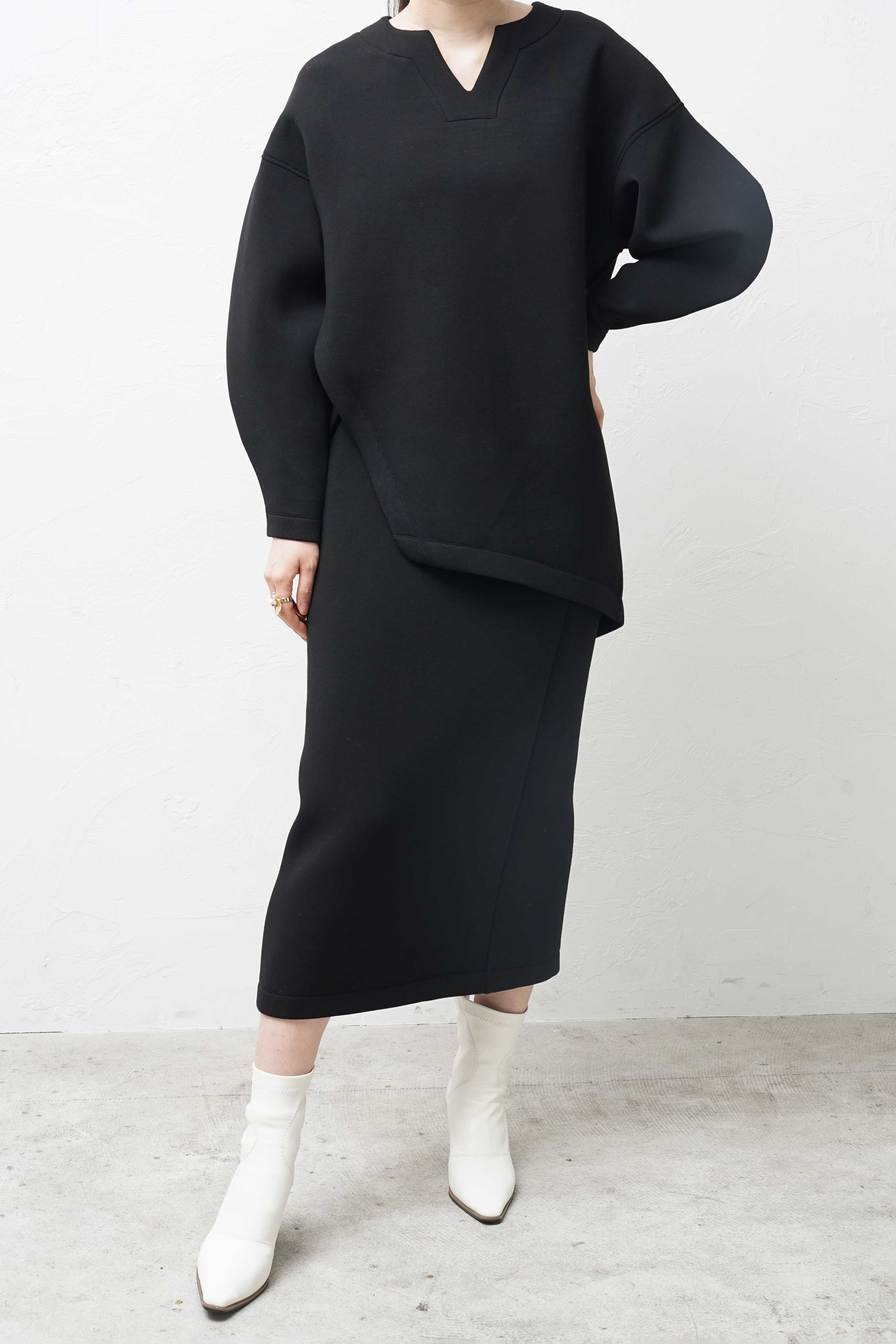 シンプルなだけにシルエットには特にこだわり、タイトながらも体のラインを拾うことがなく、着回し力抜群アイテムです。