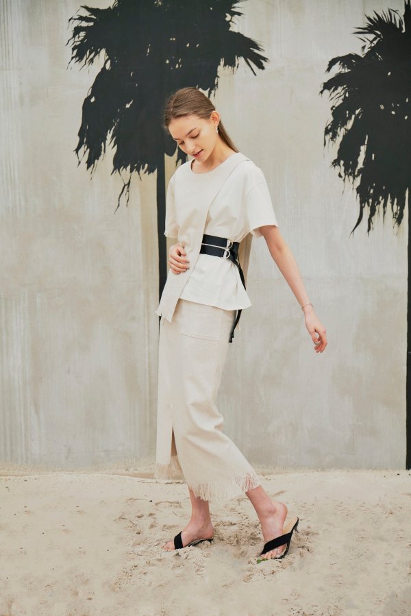 また、LINEN LIKE SKIRTとセットアップで着ていただくと