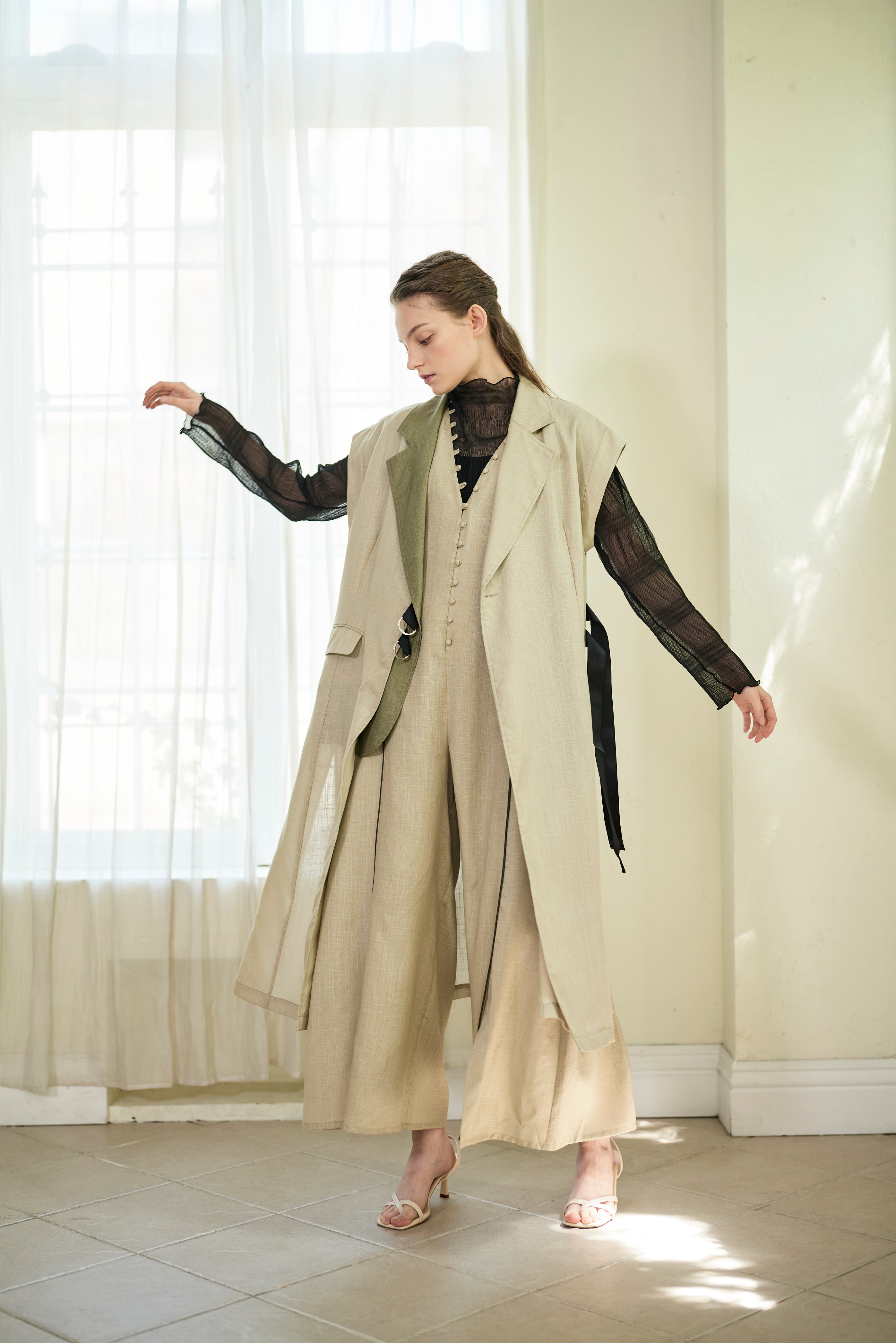 KOH.styleでは同素材のLINEN LIKE JUMPSUITと合わせて着るのがおすすめ。