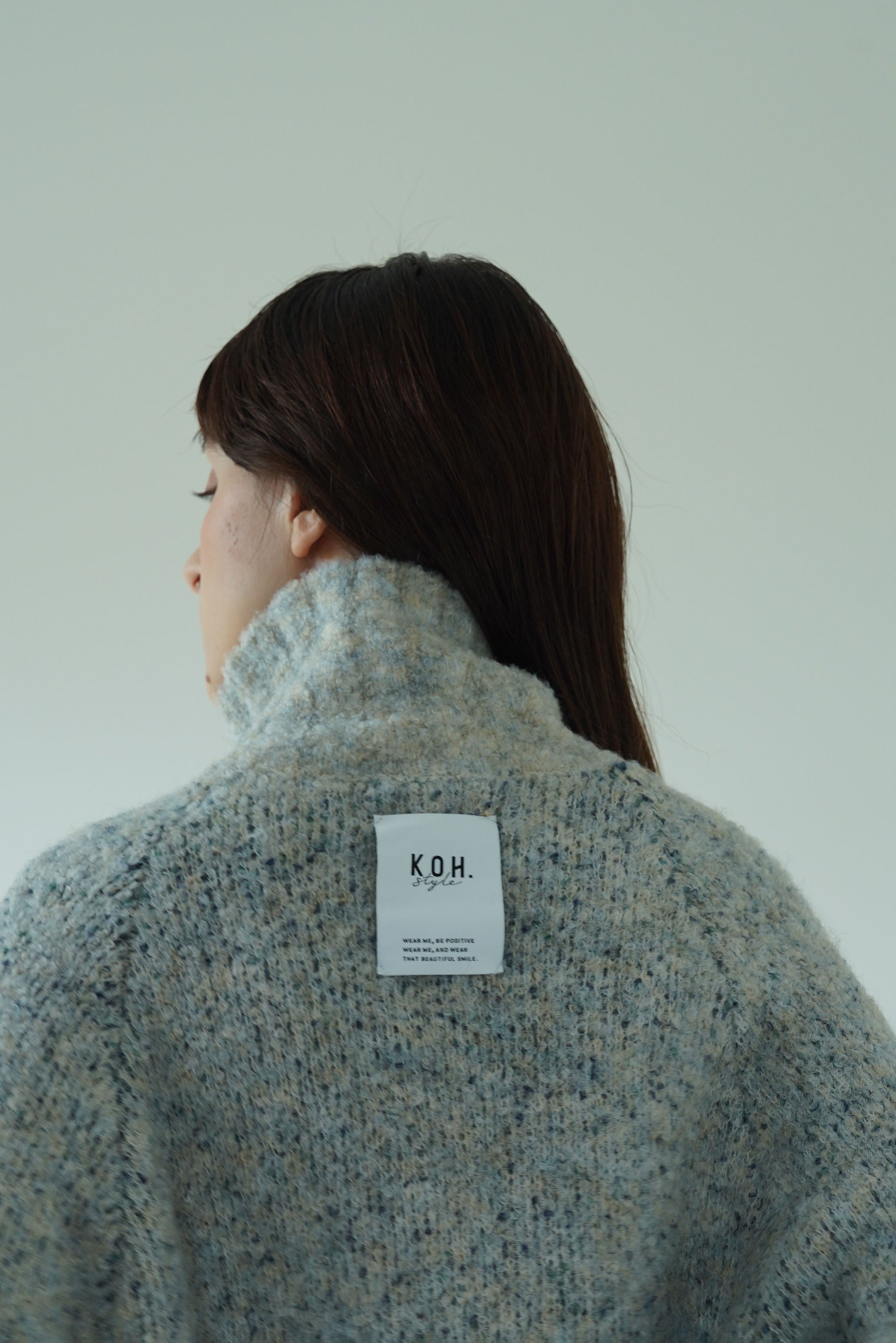 形はシンプルなハイネックニットなだけに、広すぎず詰まりすぎず、フェイスラインに沿うような絶妙な筒周りを追求しました。