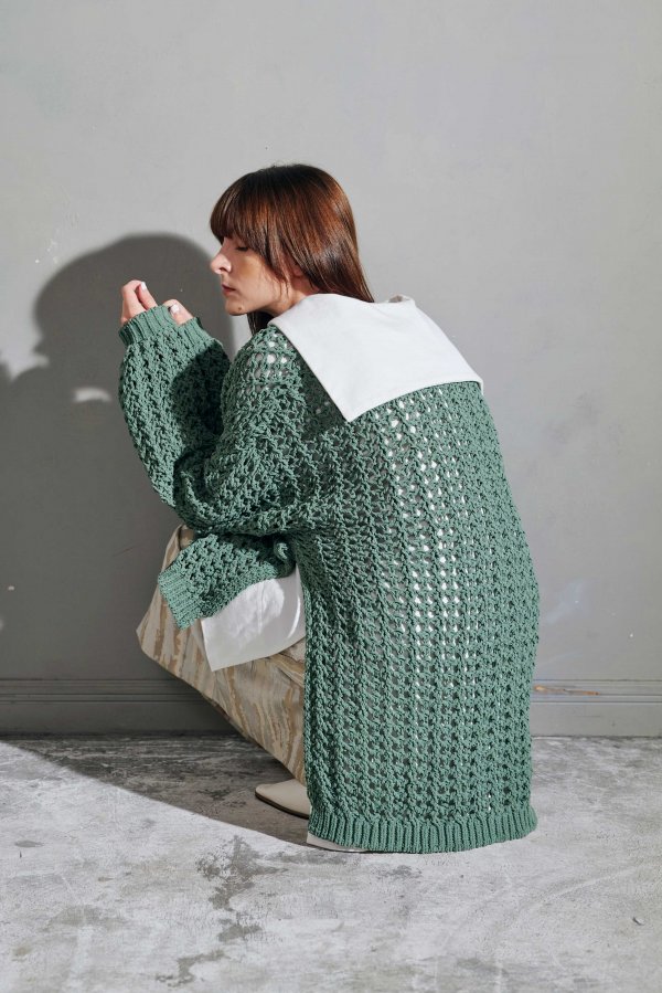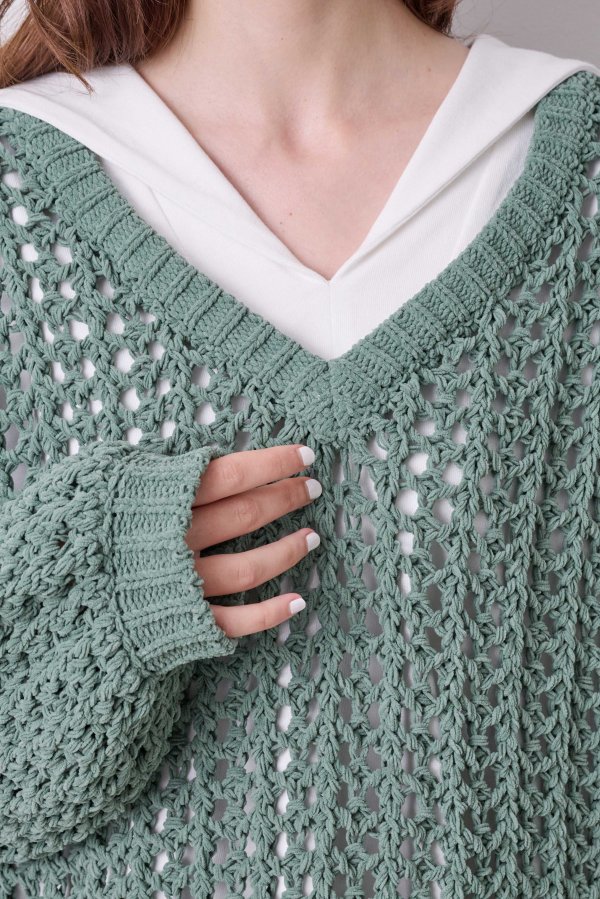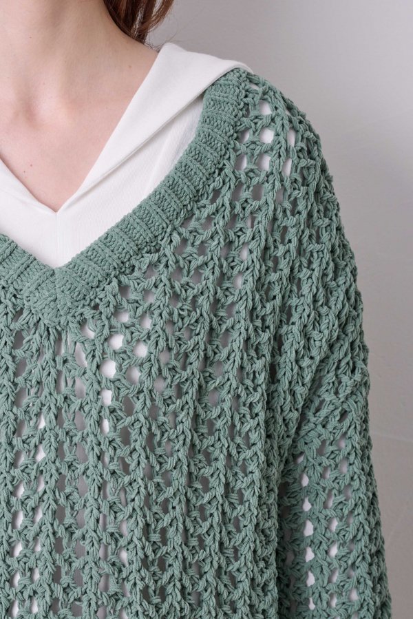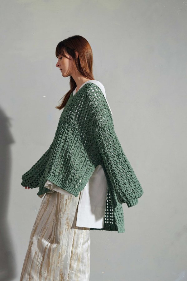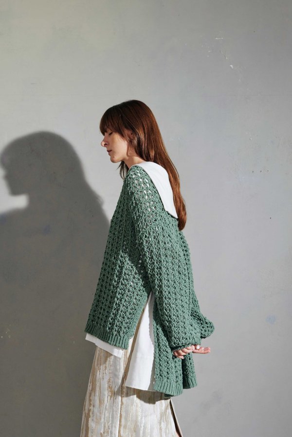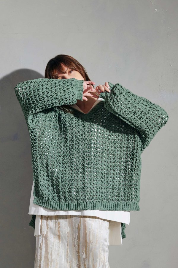 ループヤーンのメッシュ編みのゆったりニット。