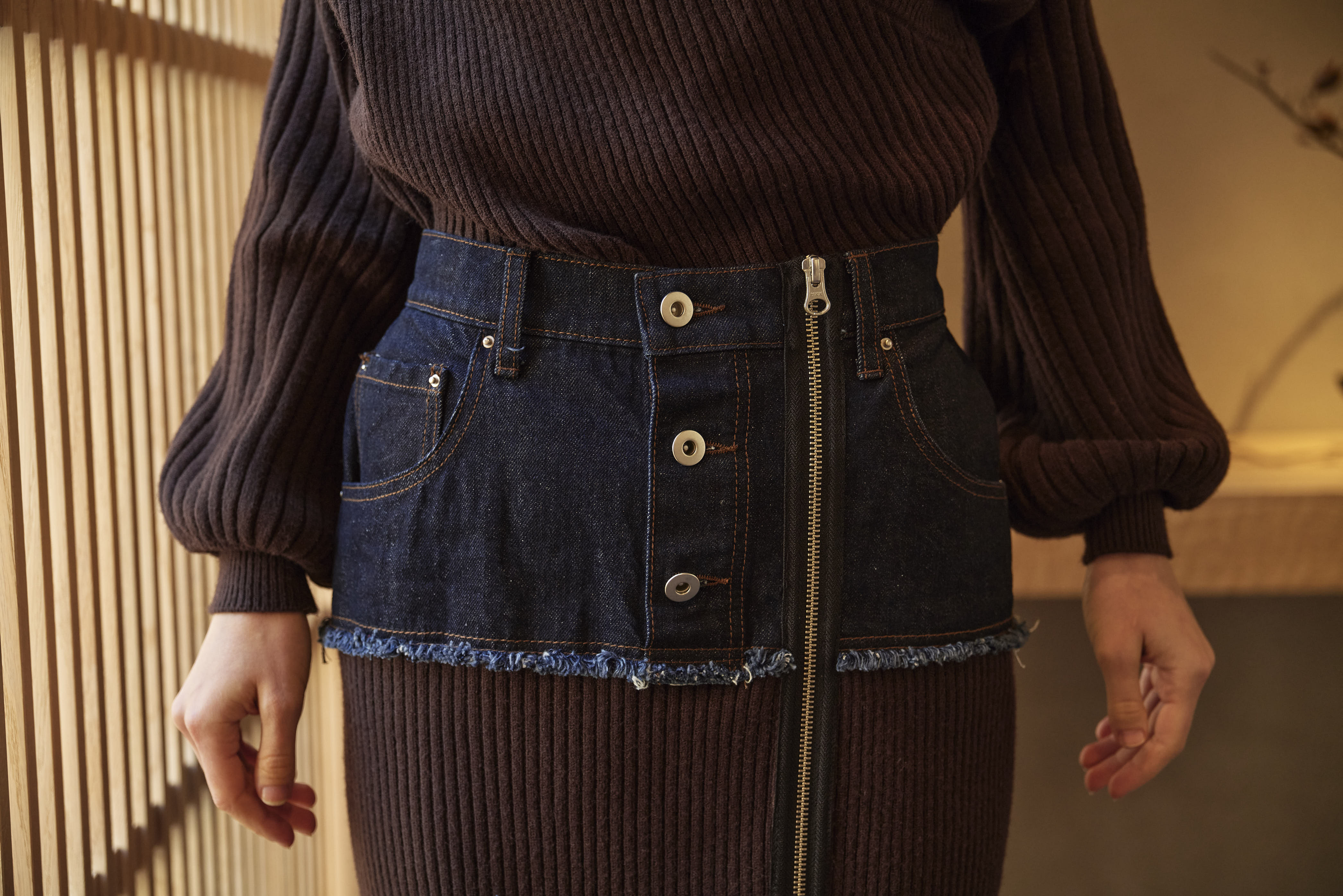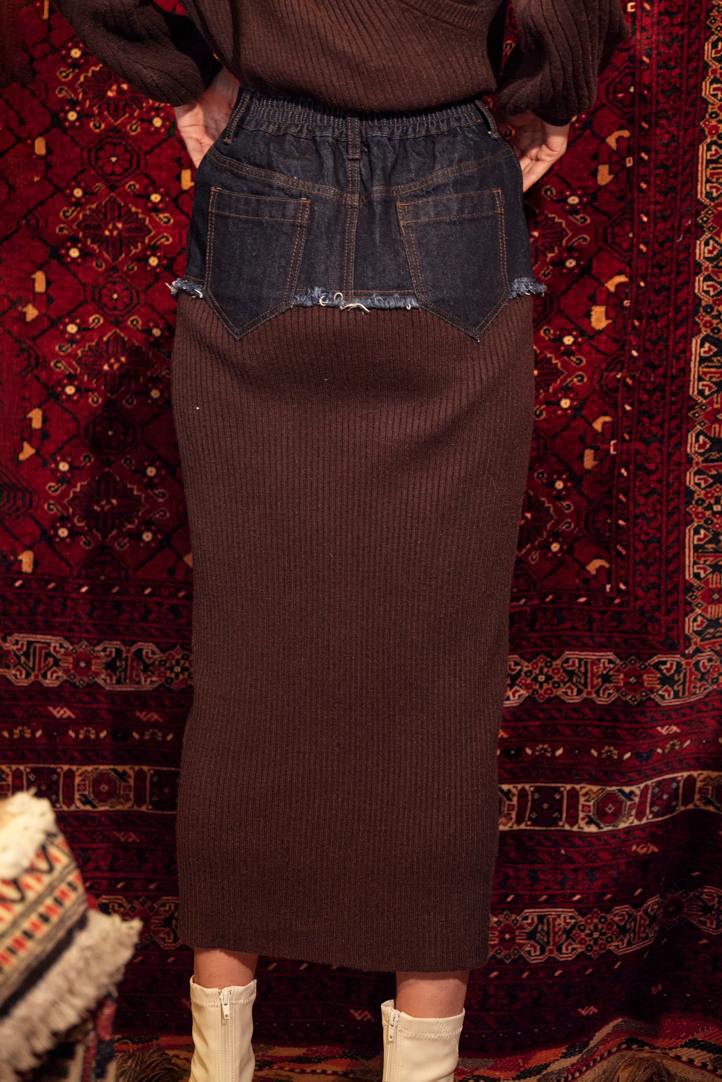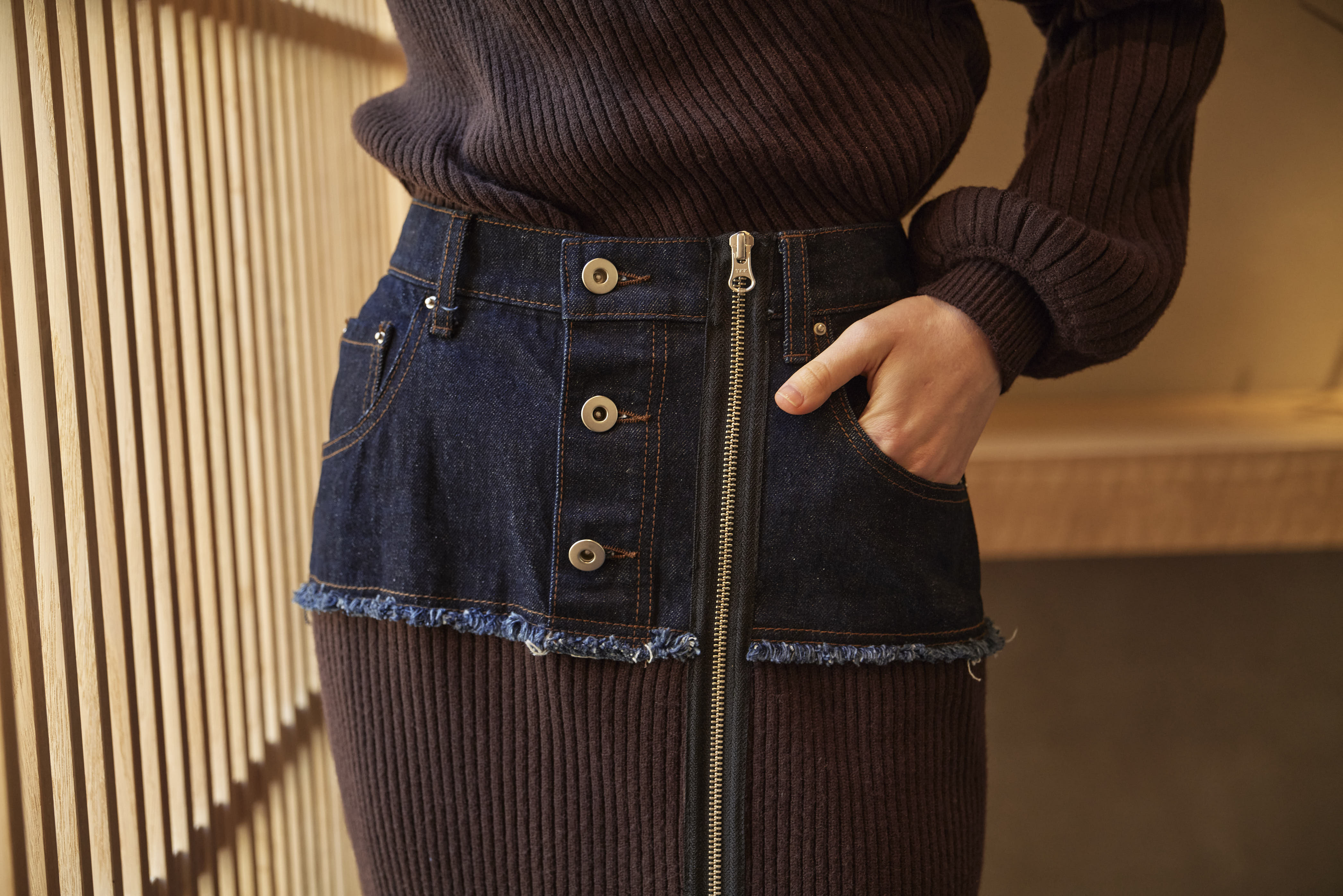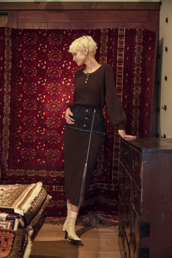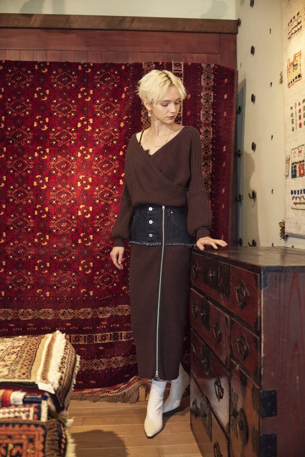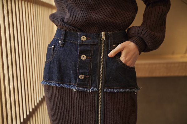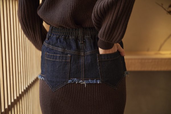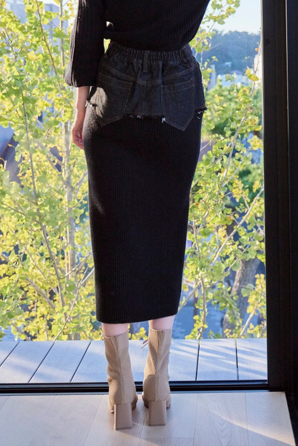 - DENIM DOCKING RIB KNIT SKIRT
