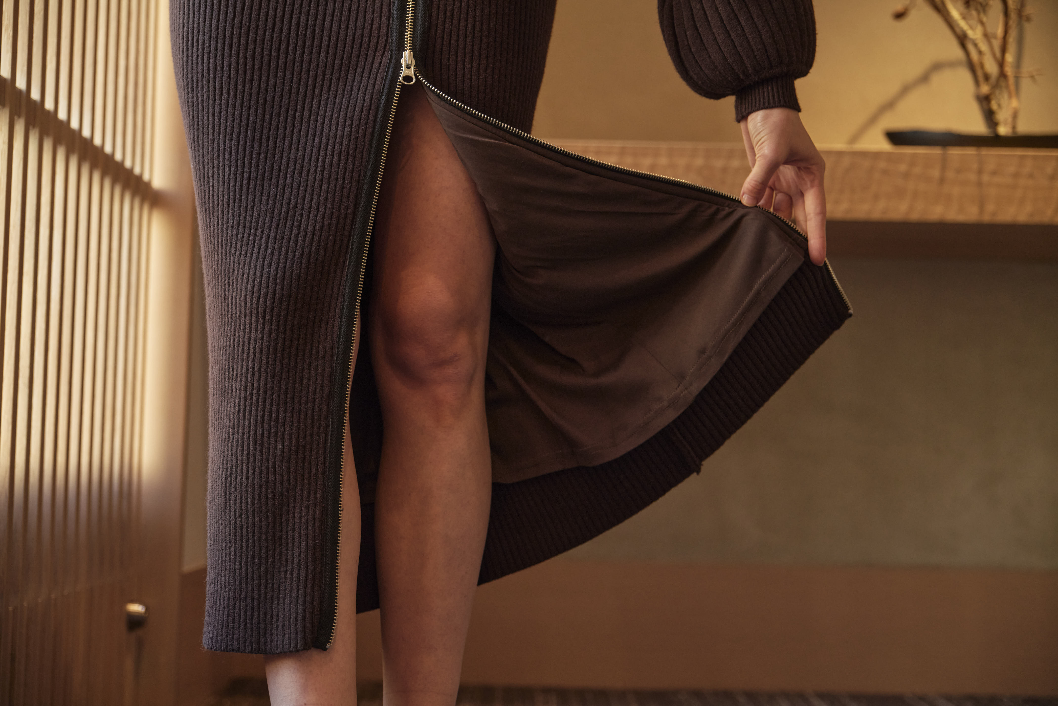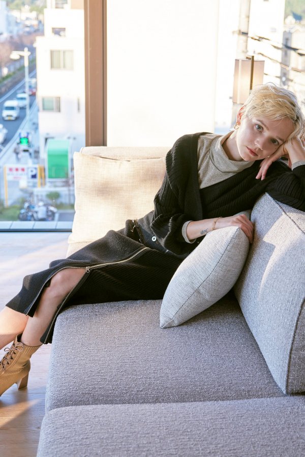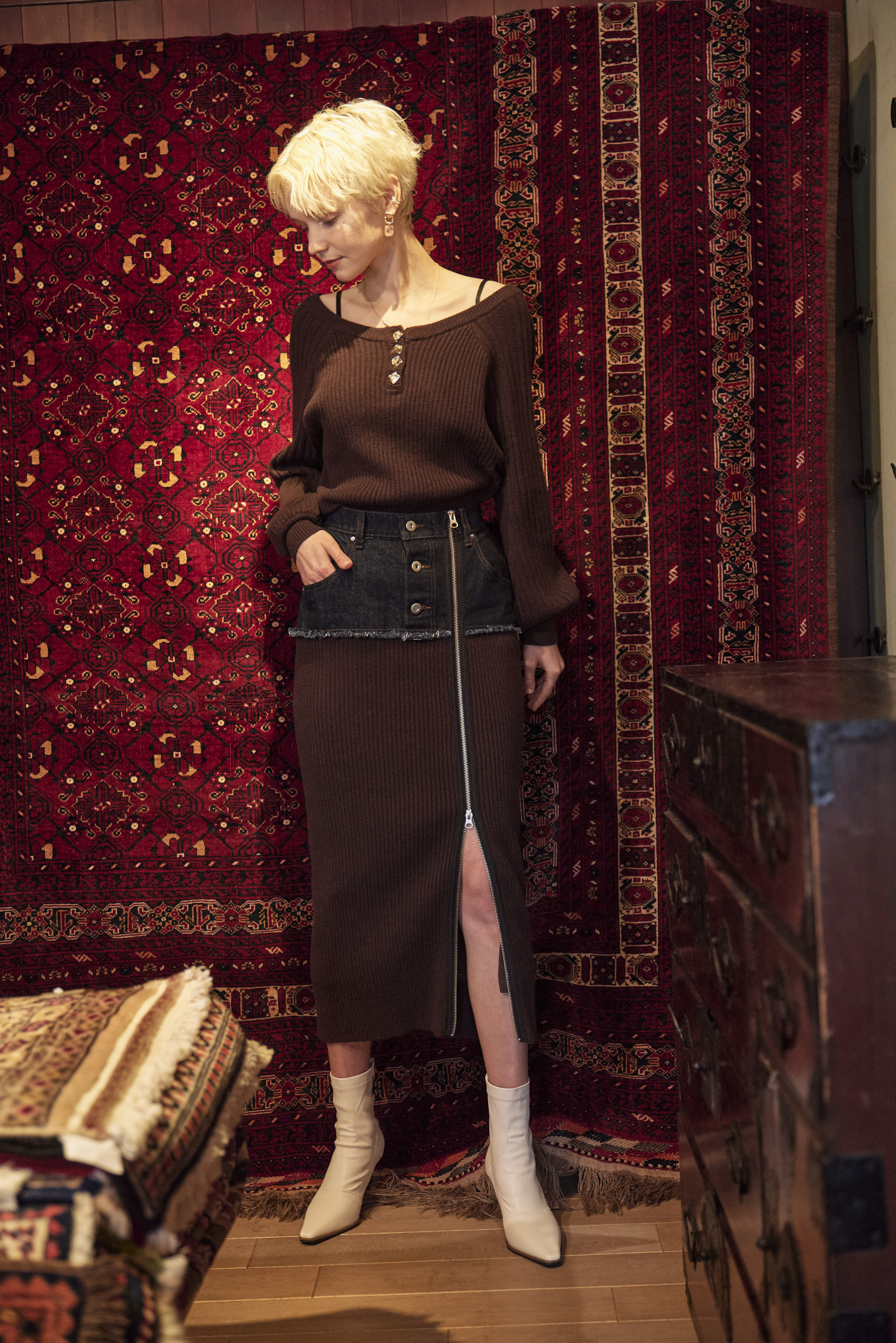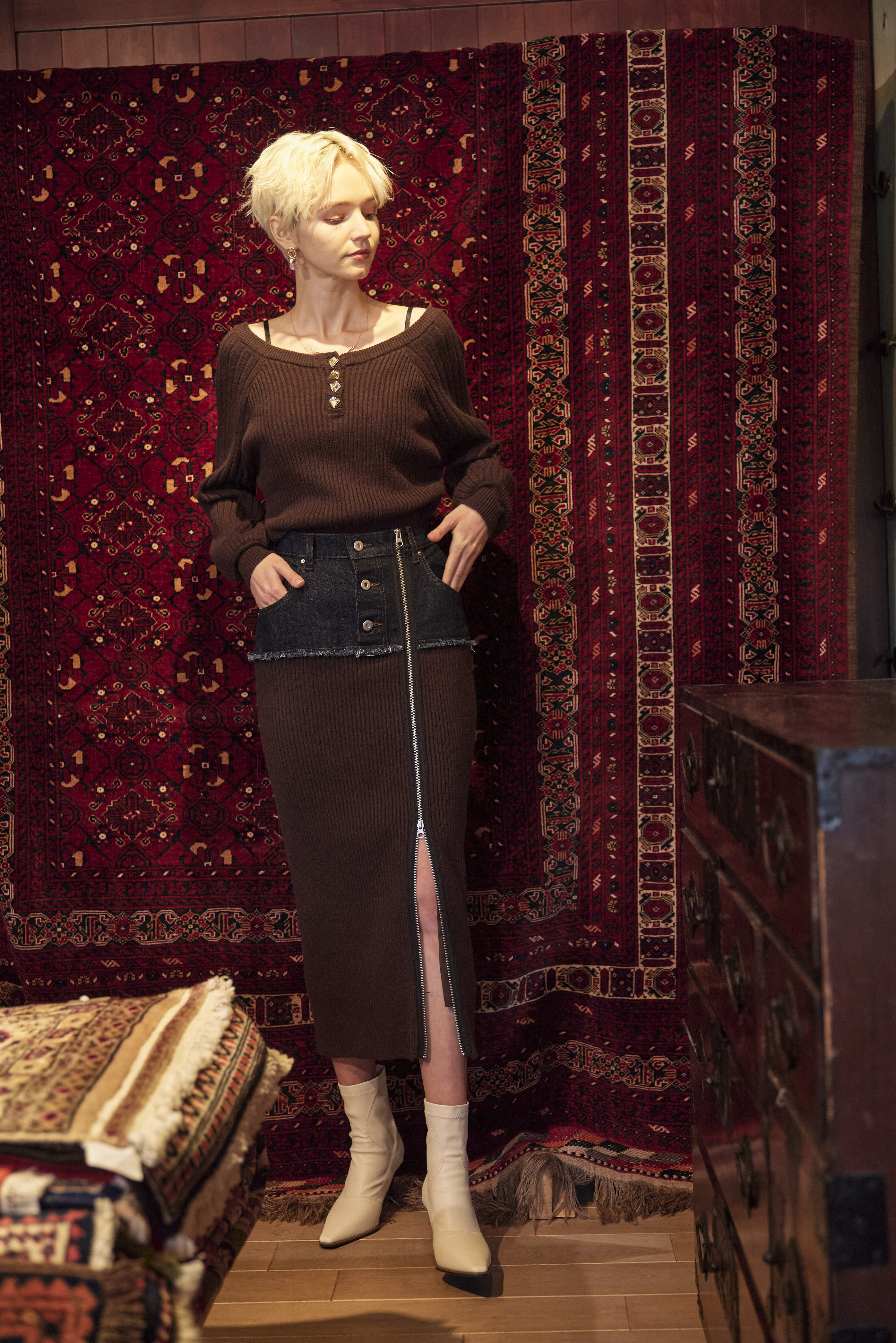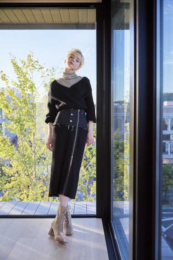- DENIM DOCKING RIB KNIT SKIRT