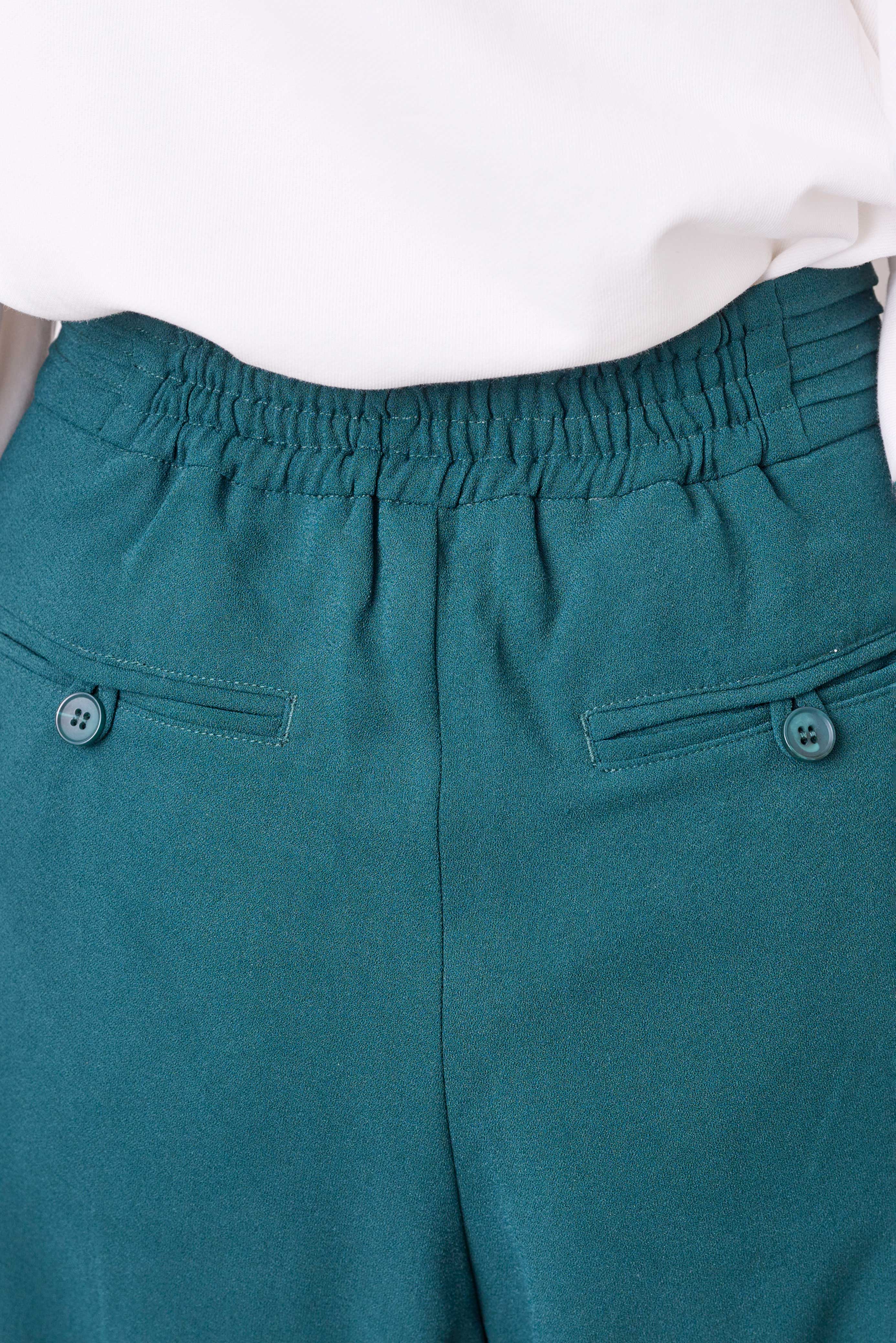 後ろは一部をウエストゴムにしていて、すっきりキレイ目に見えつつもらくちんな着心地に。