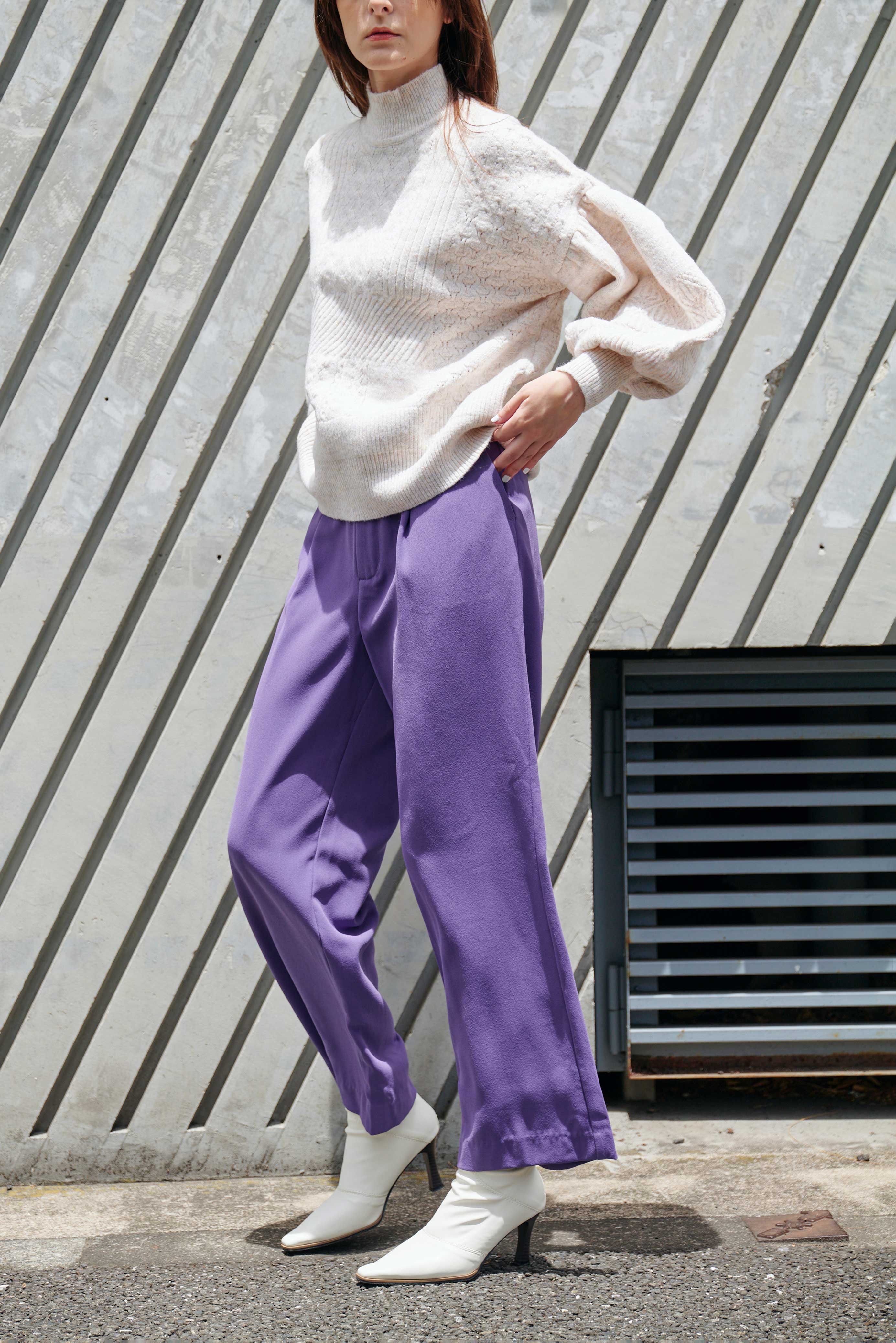 きれいめすぎず、カジュアルすぎず、ほどよいパンツのラインを追求し、カジュアルに着たいときもきれいめに見せるときにも万能シルエット。
