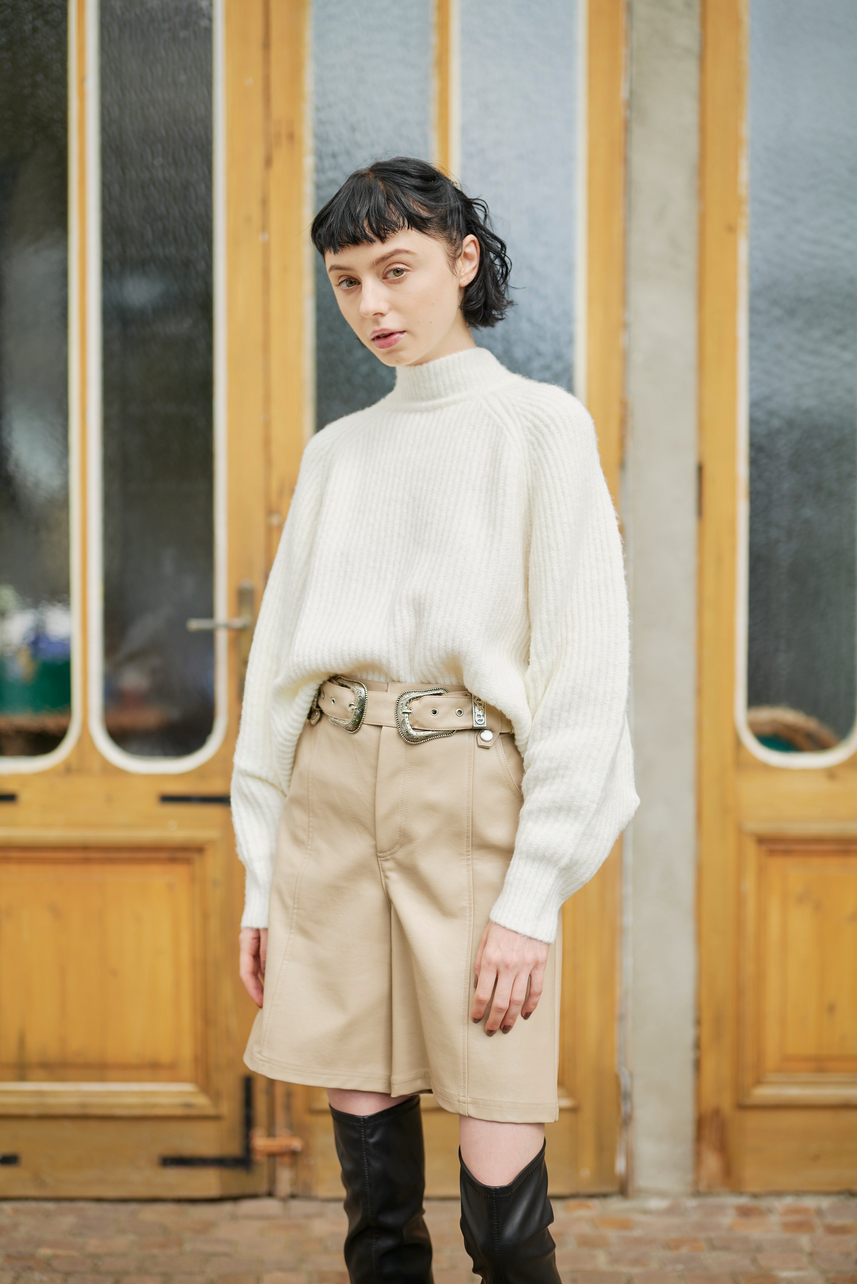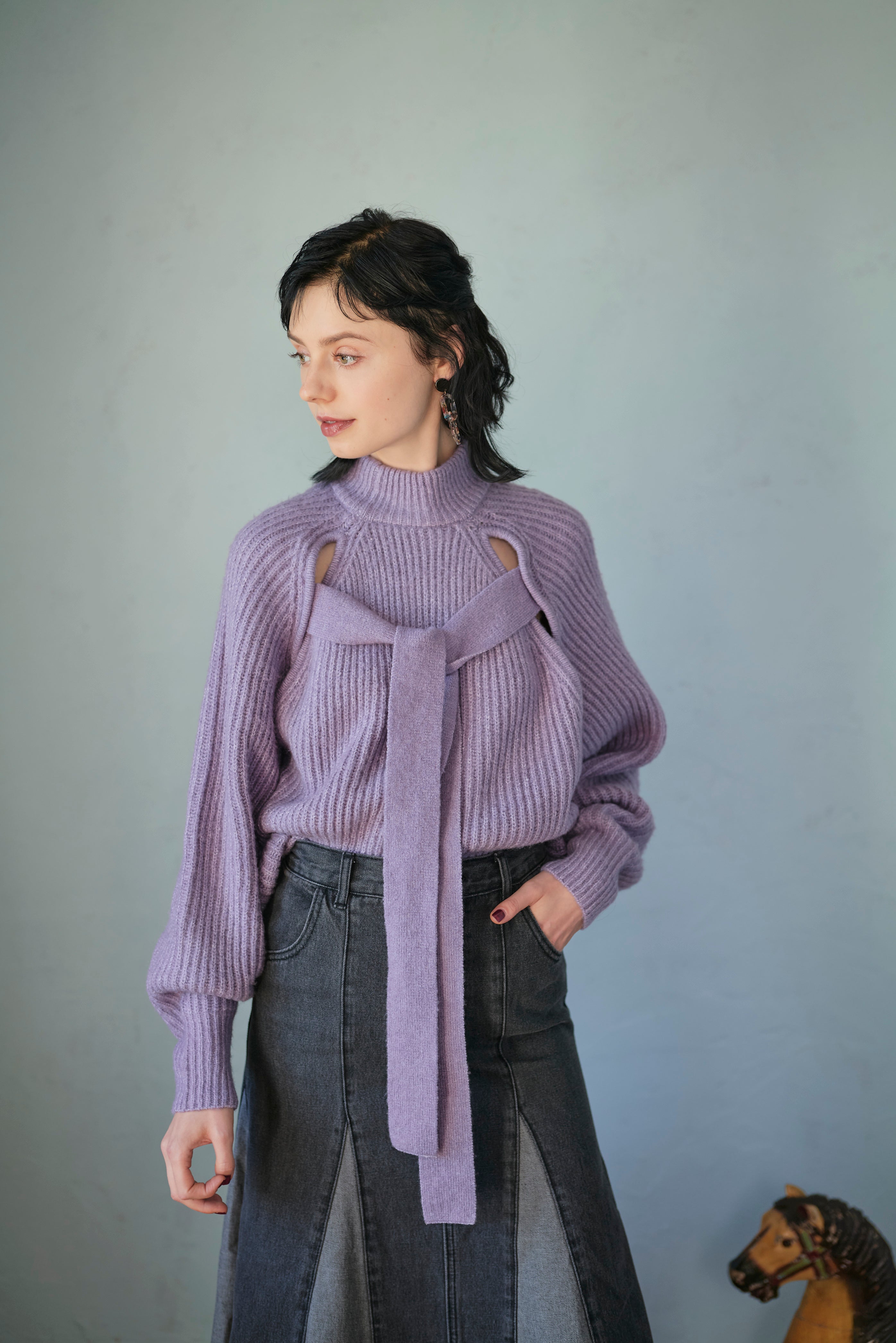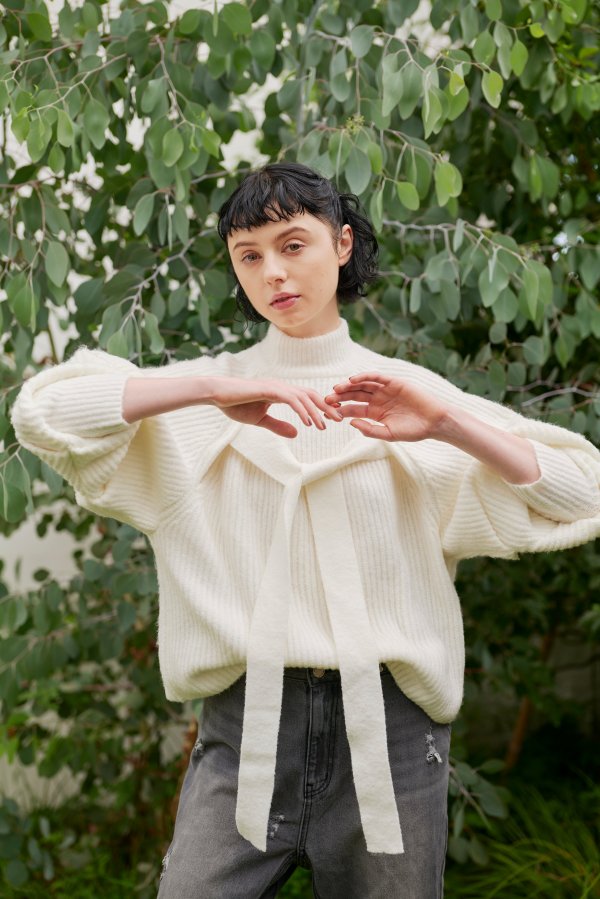 • VOLUME SLEEVE 2WAY KNIT TOP
